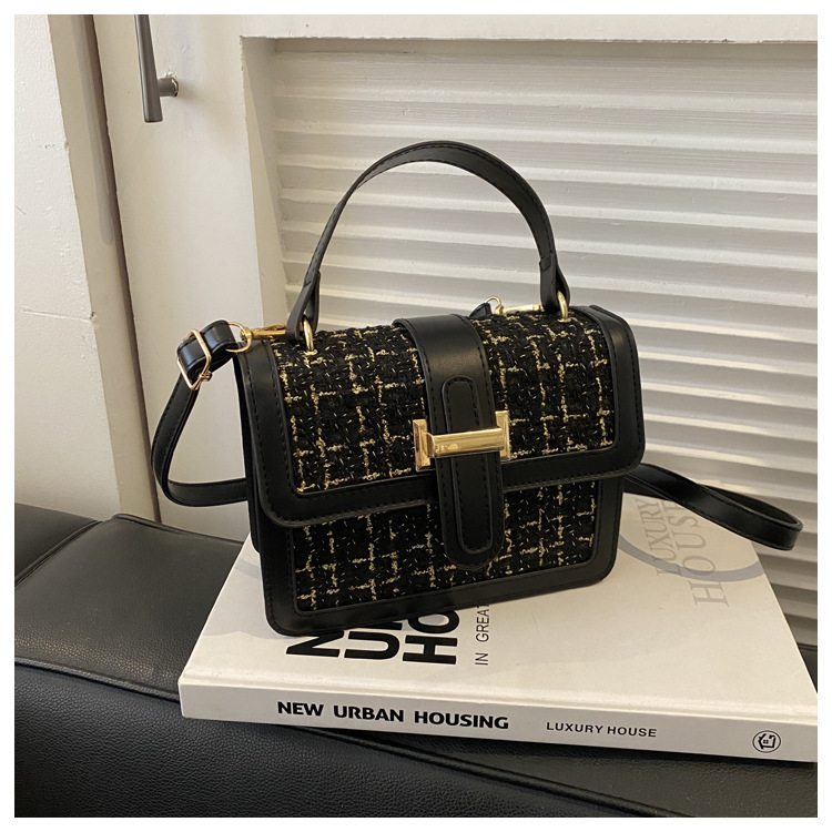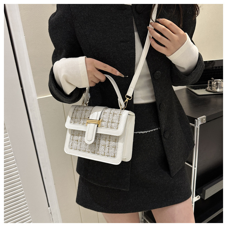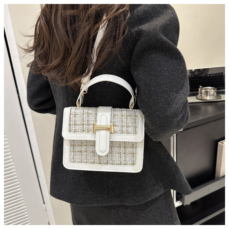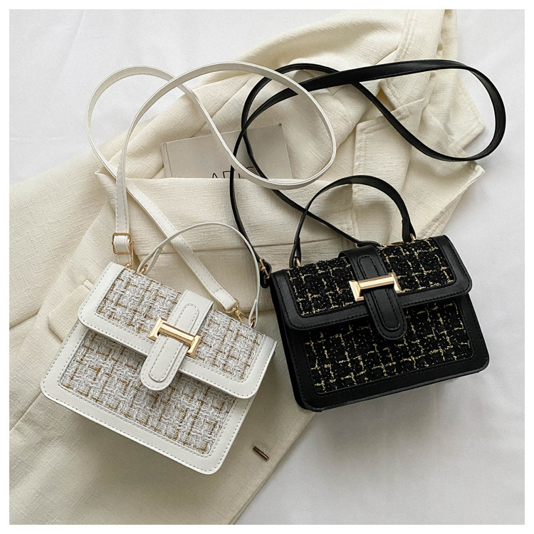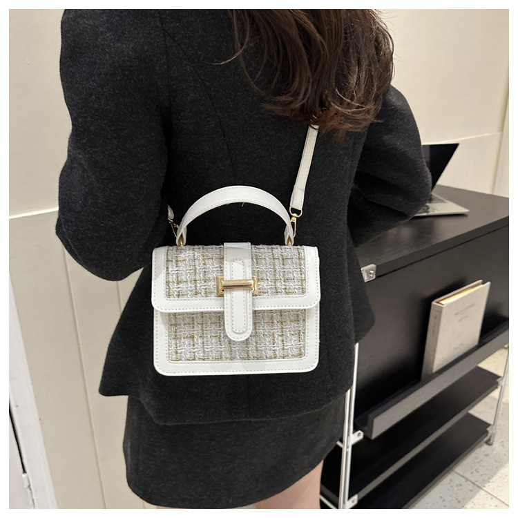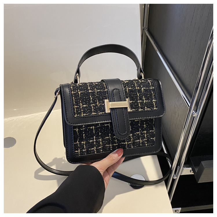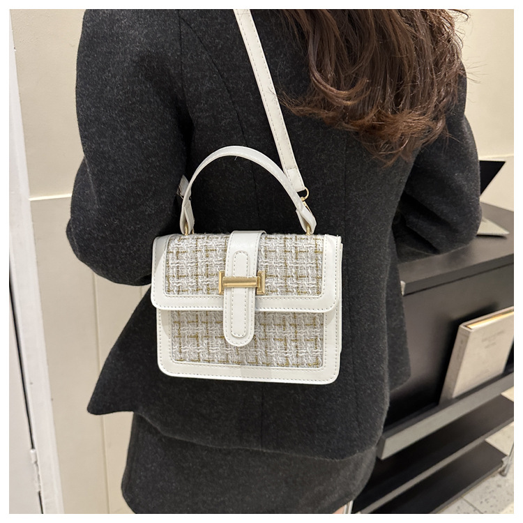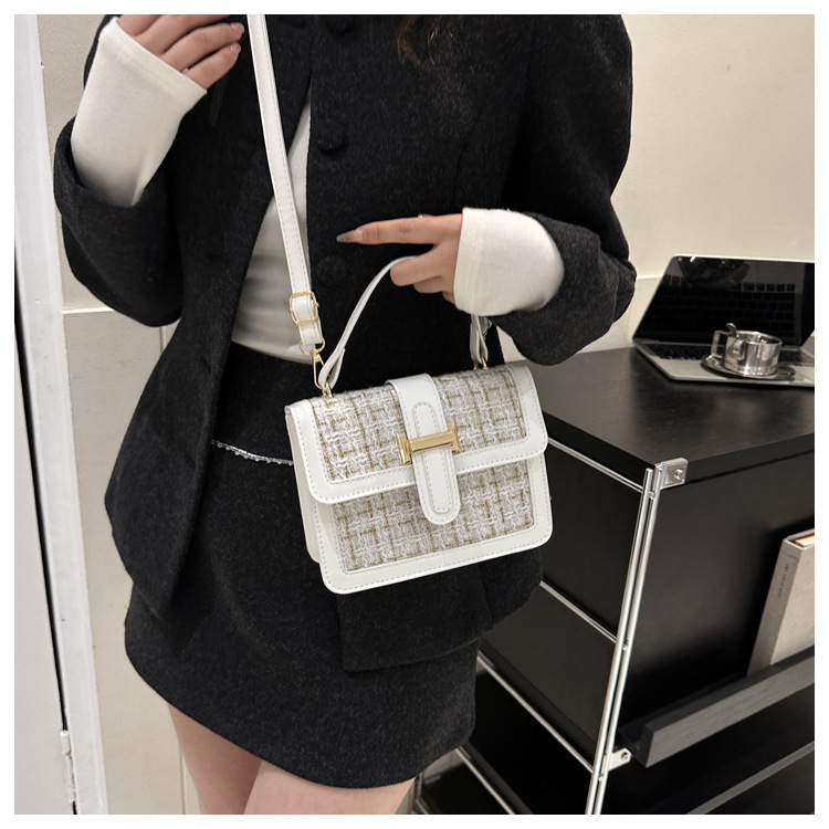 Bolsa tejida estilo Chanel 2024 Nueva Bolsa cuadrada pequeña bolsa de mensajero de nicho de Invierno para mujer