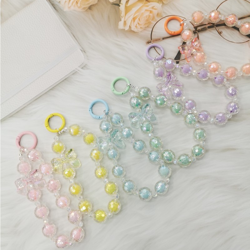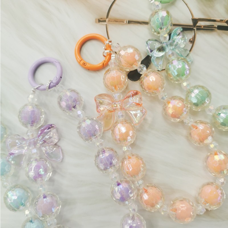 Fresco colorido bowknot llavero colgante DIY teléfono móvil Shell transparente pulsera de cuentas bolsa colgante de la joyería