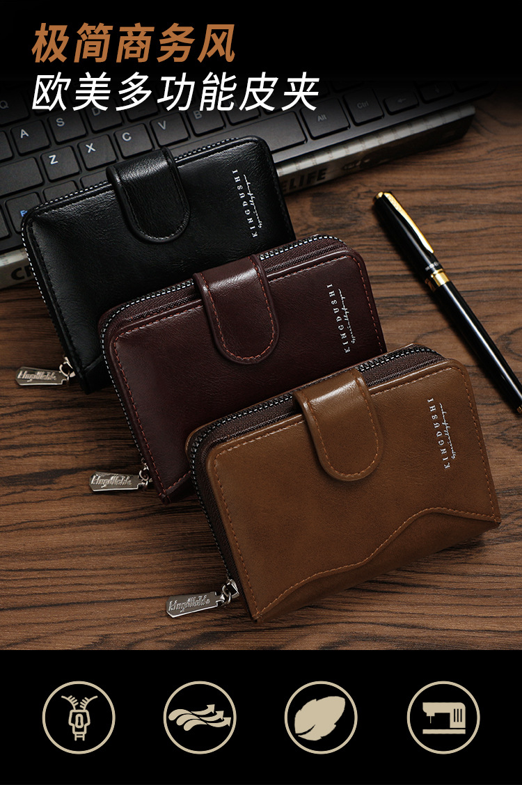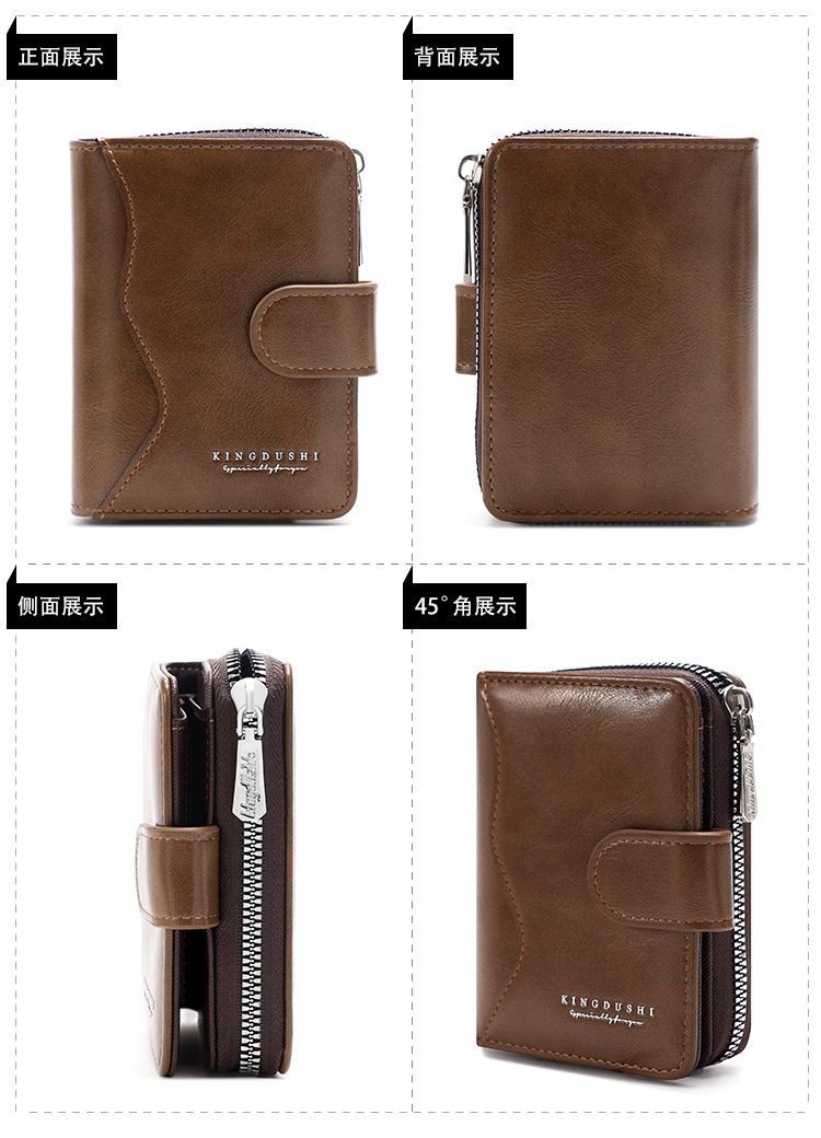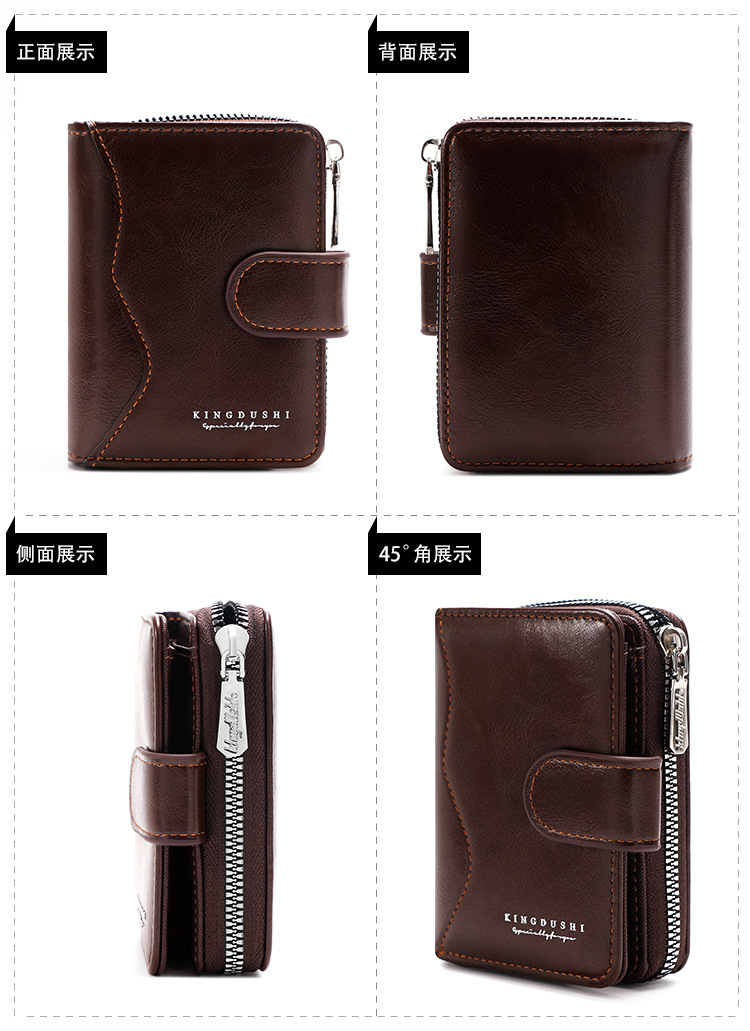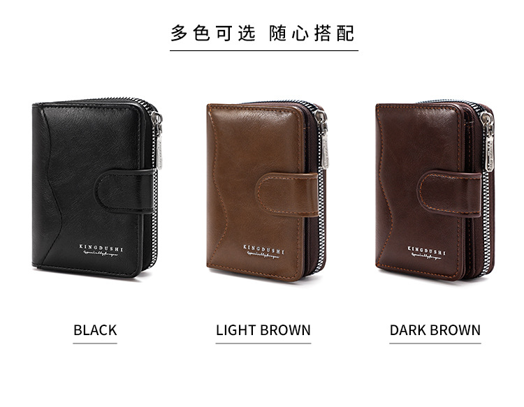 Ventas transfronterizas calientes de piel de cera de aceite para hombres billetera vertical de gran capacidad cremallera bolsa de tarjetas de cremallera bolsa de cambio multi-tarjeta cartera