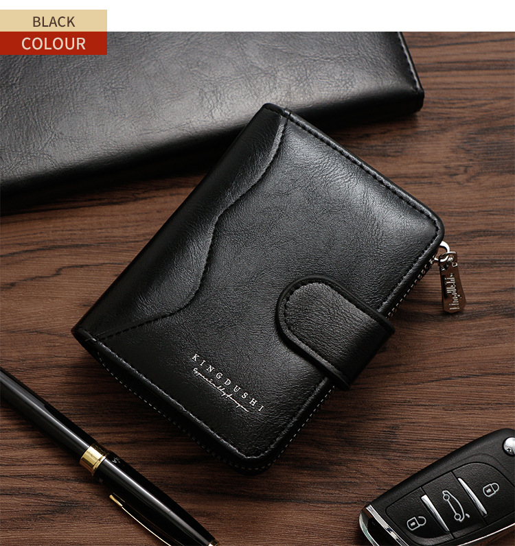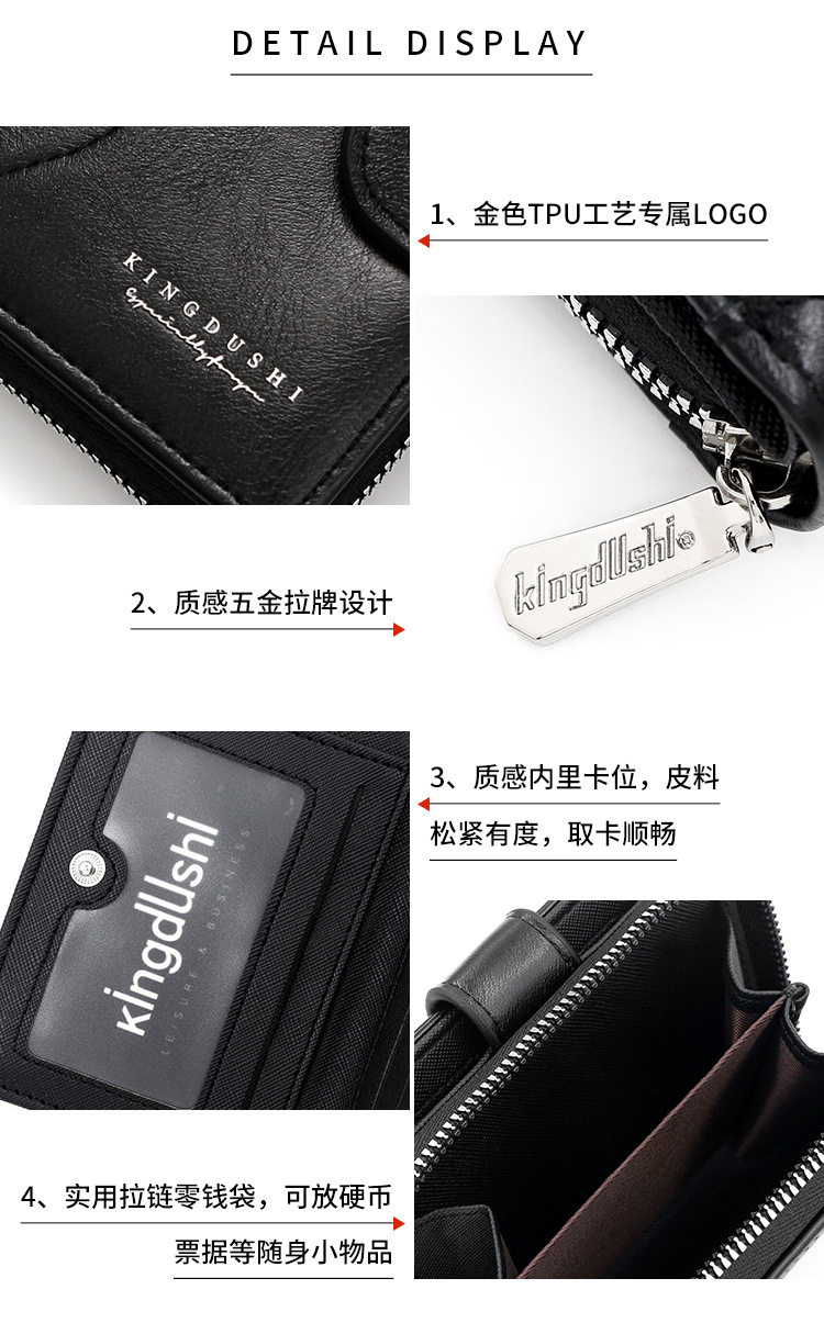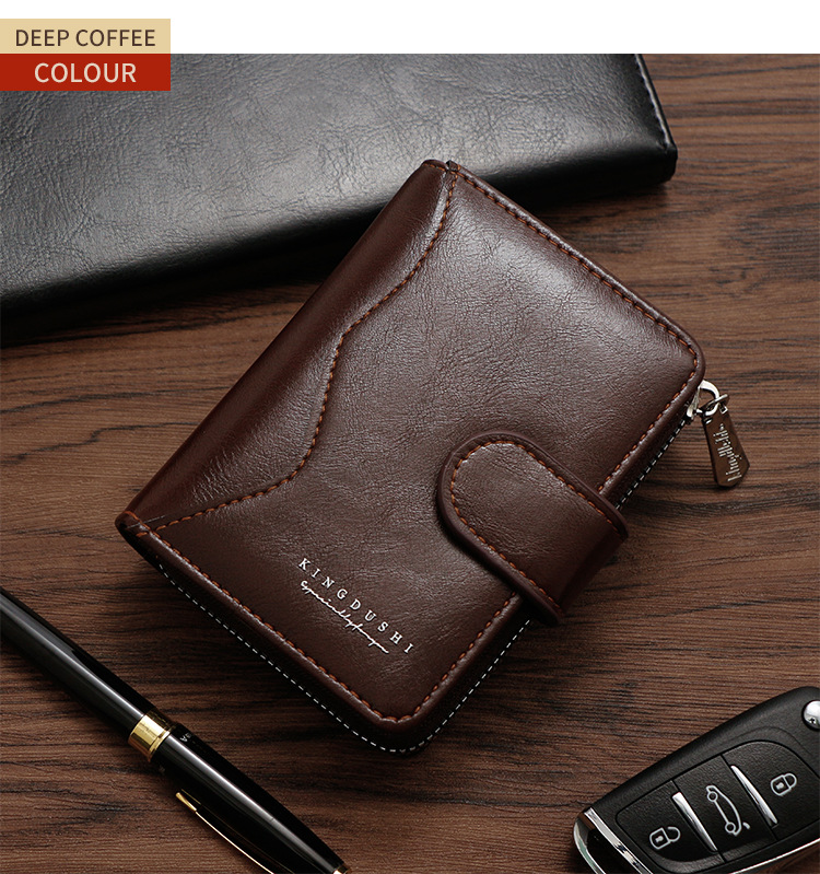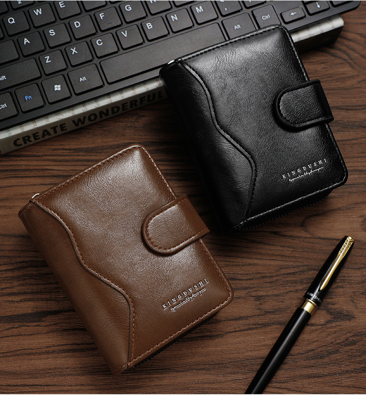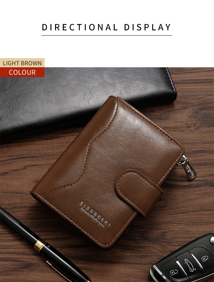 Ventas transfronterizas calientes de piel de cera de aceite para hombres billetera vertical de gran capacidad cremallera bolsa de tarjetas de cremallera bolsa de cambio multi-tarjeta cartera