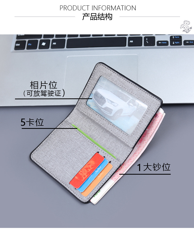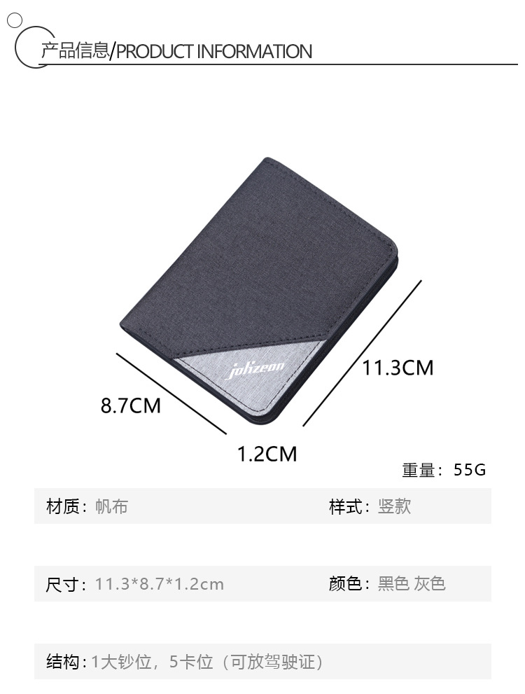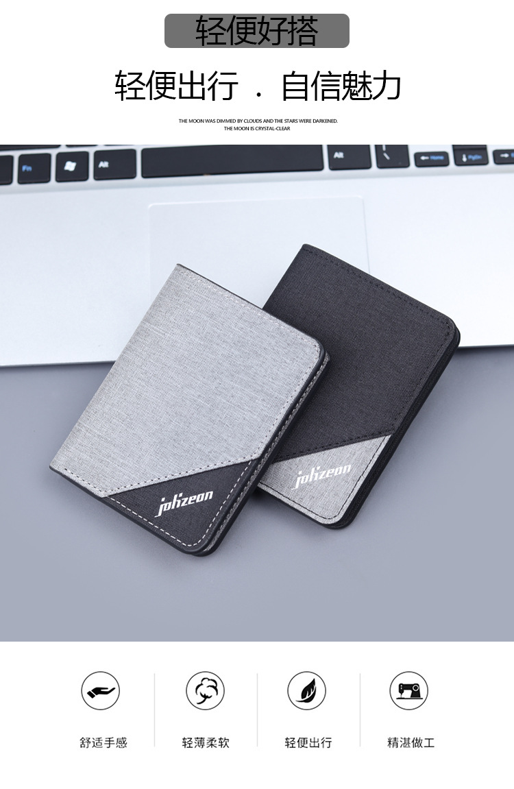Bolso de lona de hombre, bolso de tarjeta corto, bolso vertical de denim, mini bolso plegable para hombres, simple