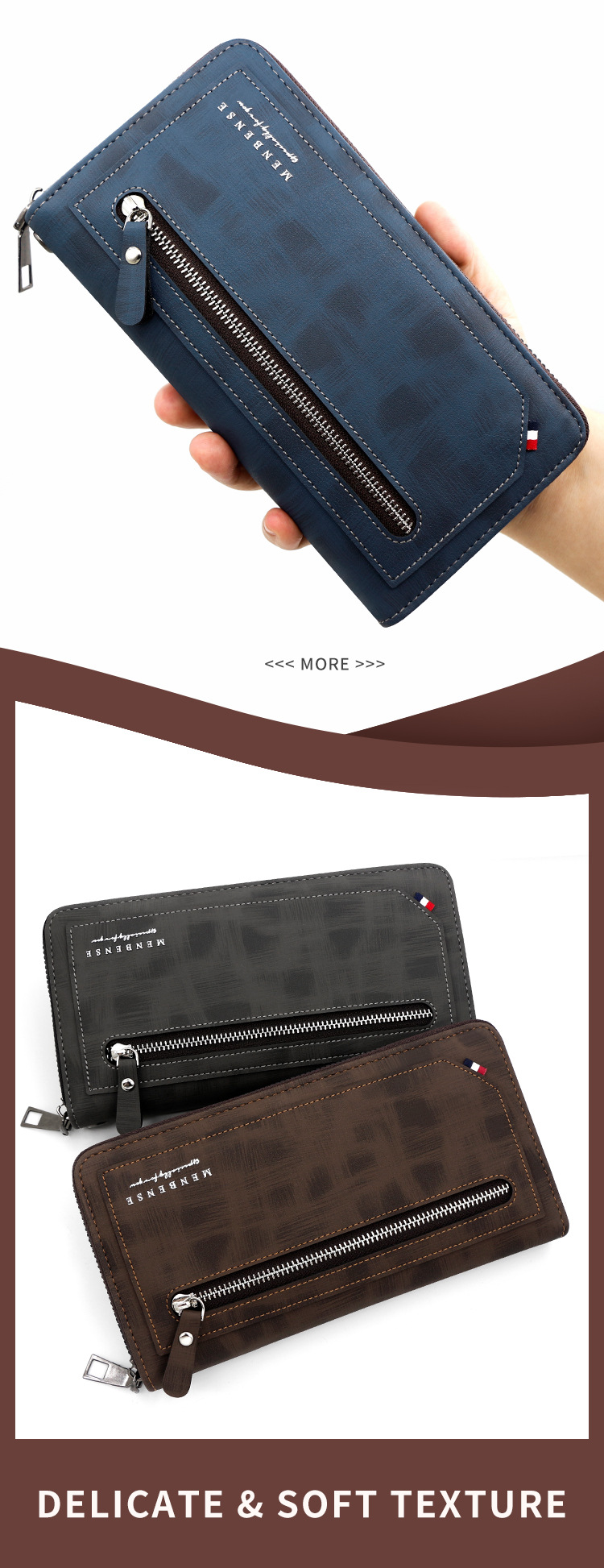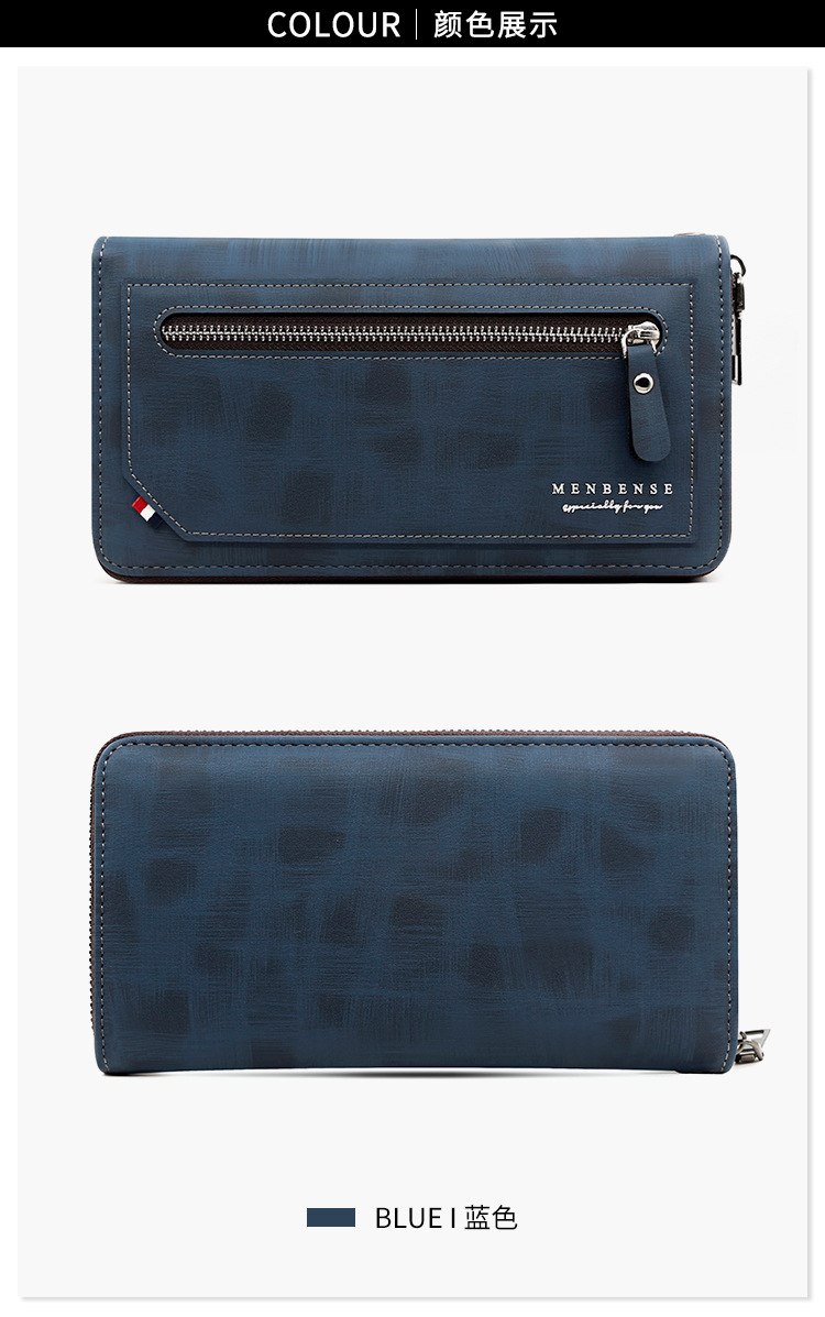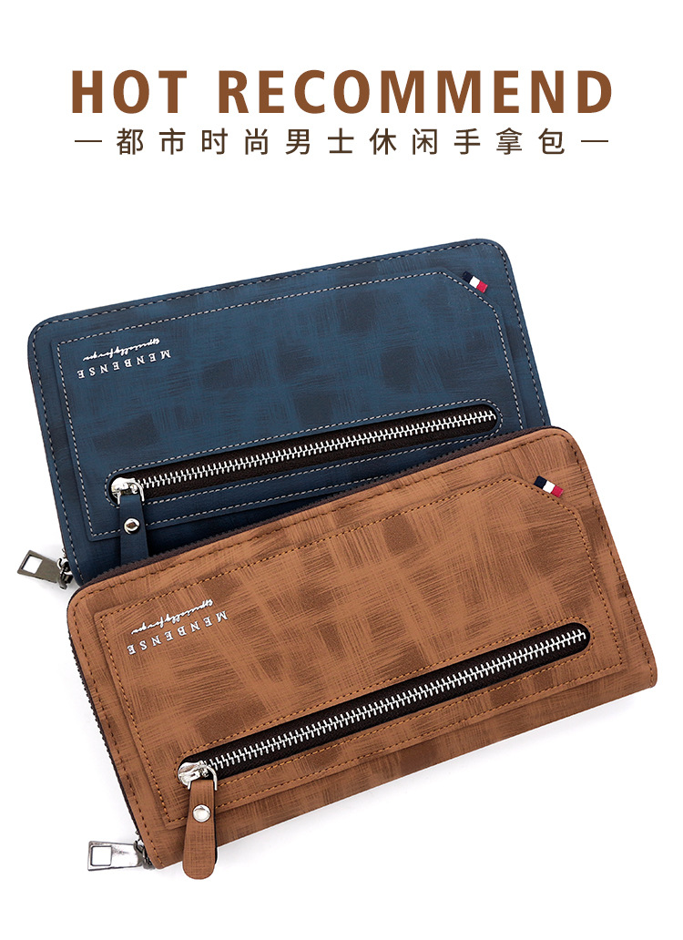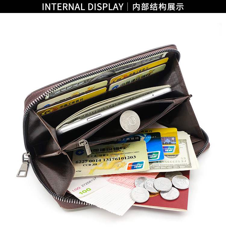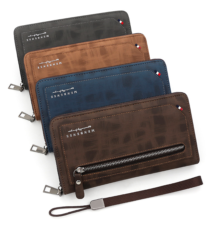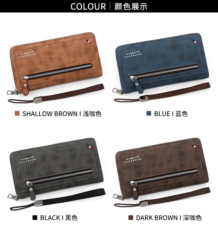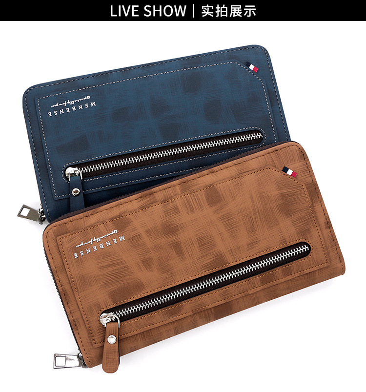 Versión Coreana de cartera larga de los hombres de cuero pelado cremallera moda casual cartera bolso de gran capacidad Multi-tarjeta de teléfono móvil bolsa