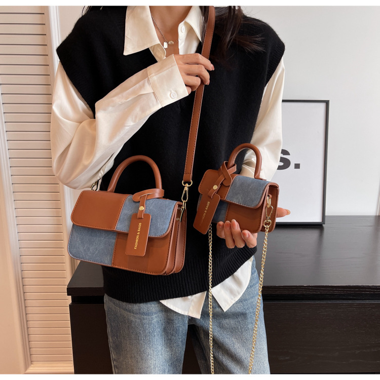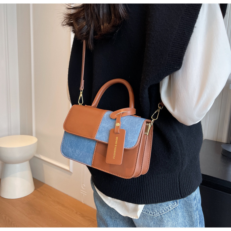 Primavera 2023 nuevo bolso de mujer moda versátil bolso de hombro empalmado bolso de mano de contraste