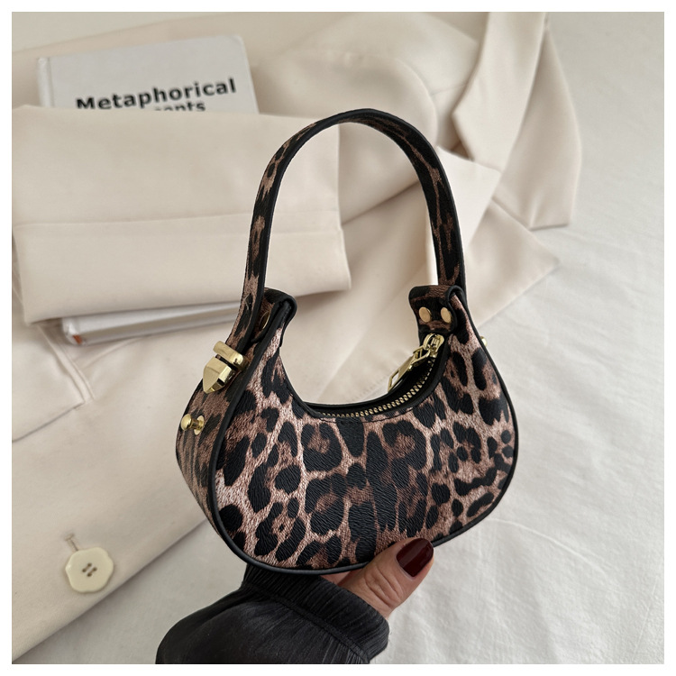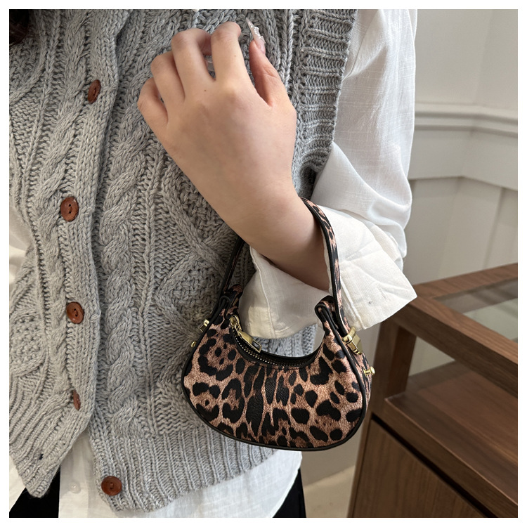 2025 primavera y verano nuevo estilo estampado de leopardo marea bolso de media luna moda estilo occidental textura bolso personalizado estilo ins mini bolso