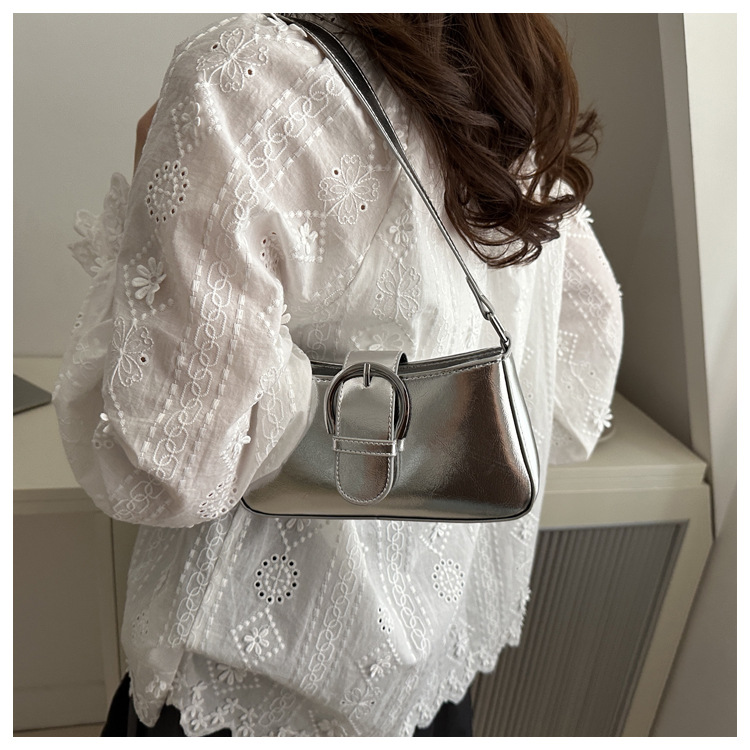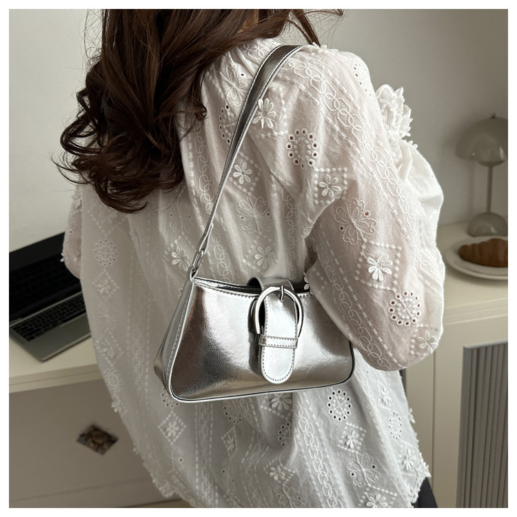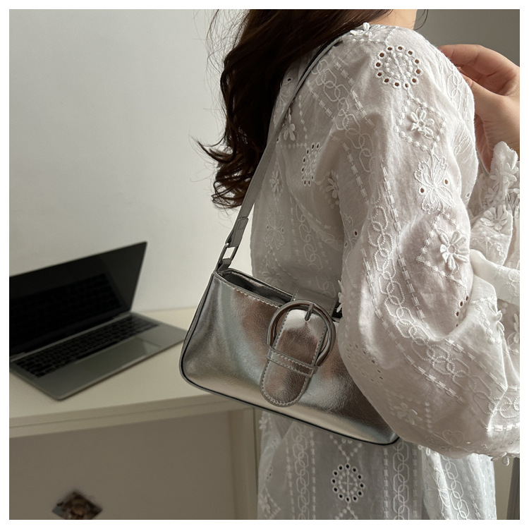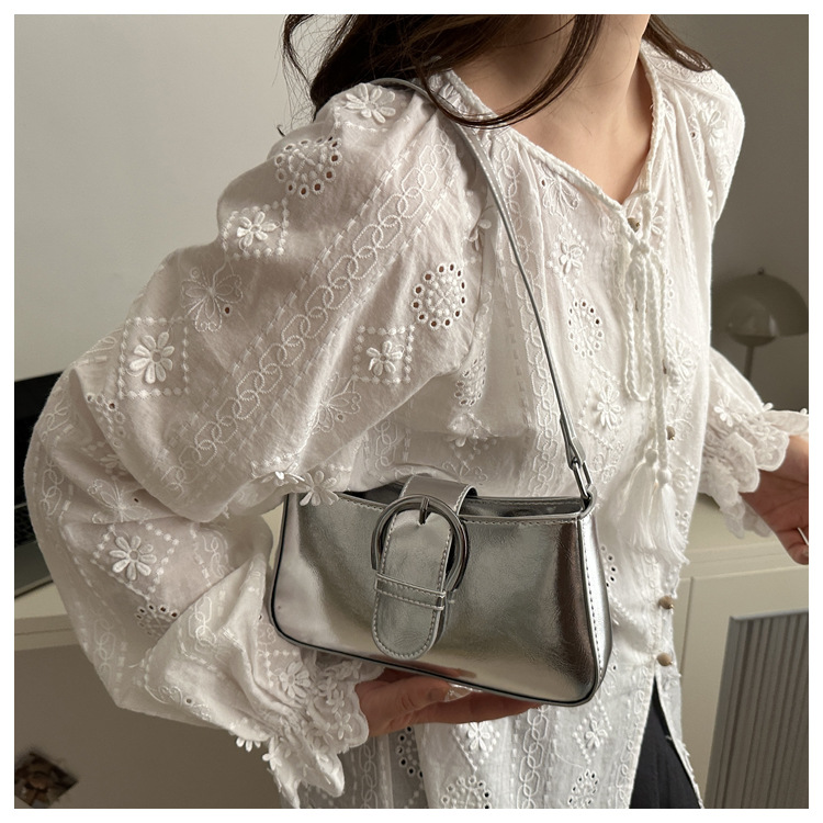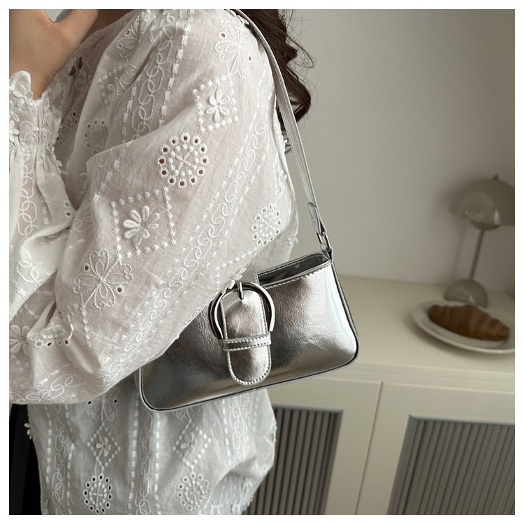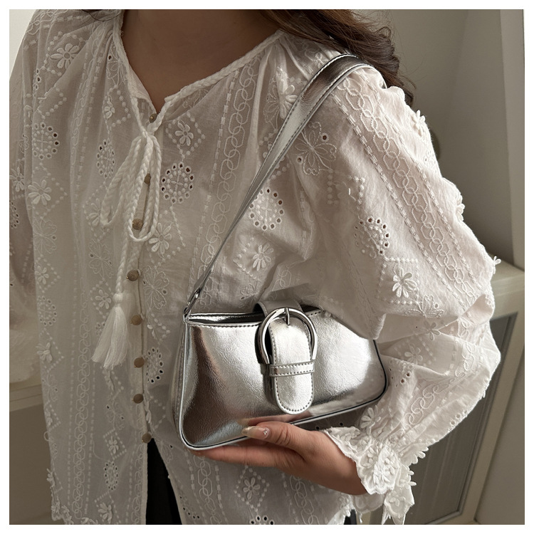 Bolsos de plata de nicho de alto nivel para mujeres 2024, nuevo verano, bolso de brazo de hombro universal, bolso de mochila