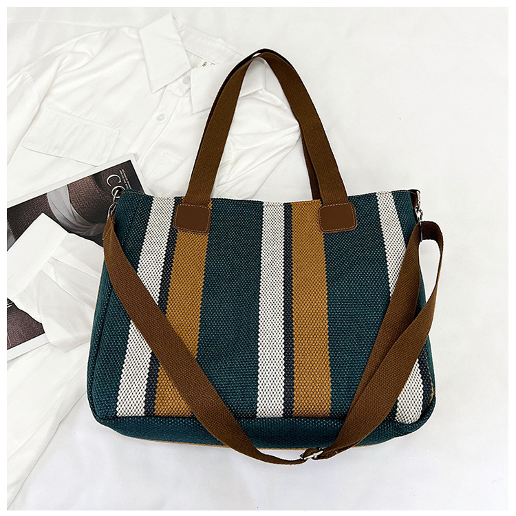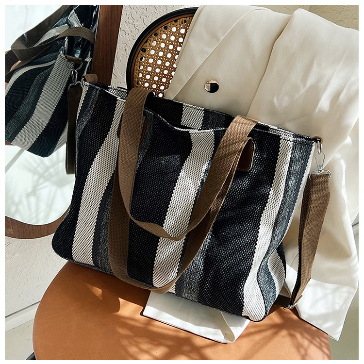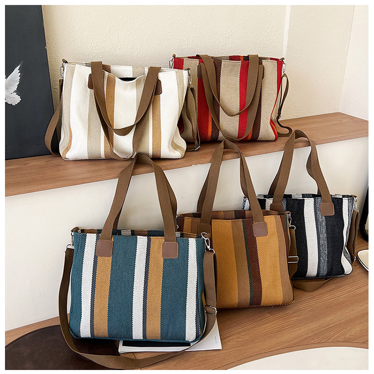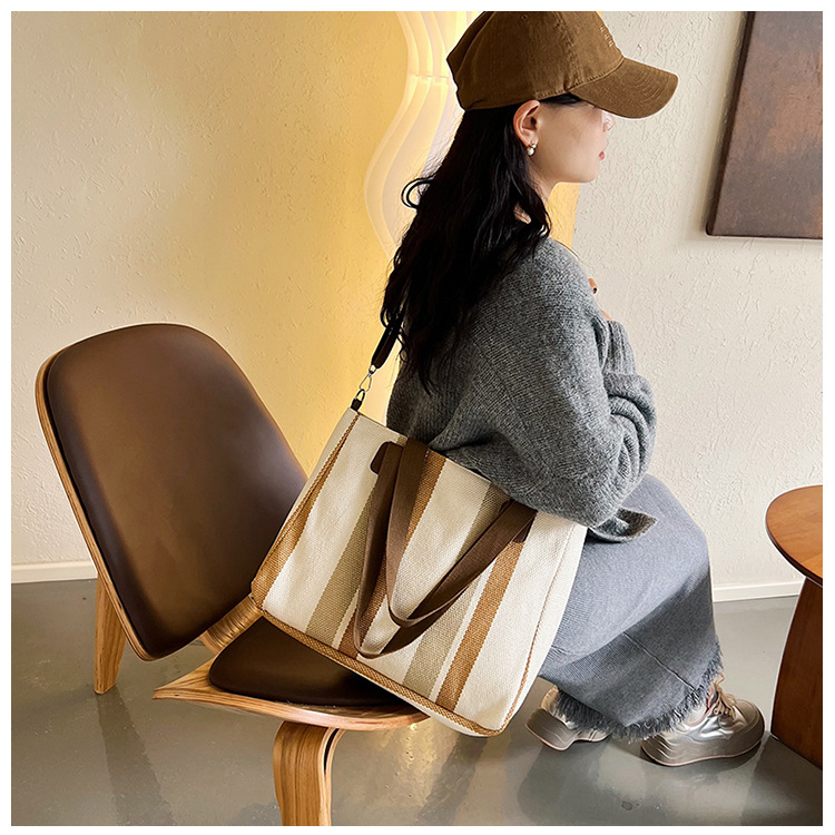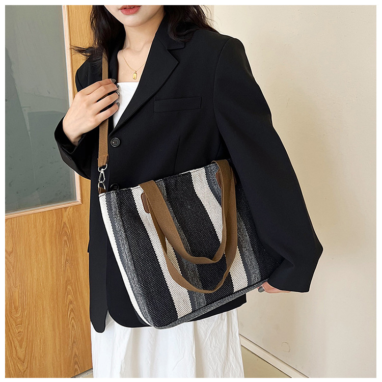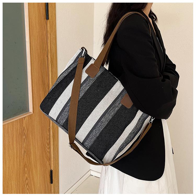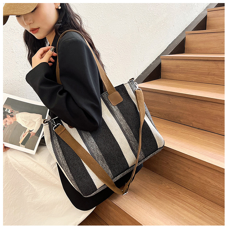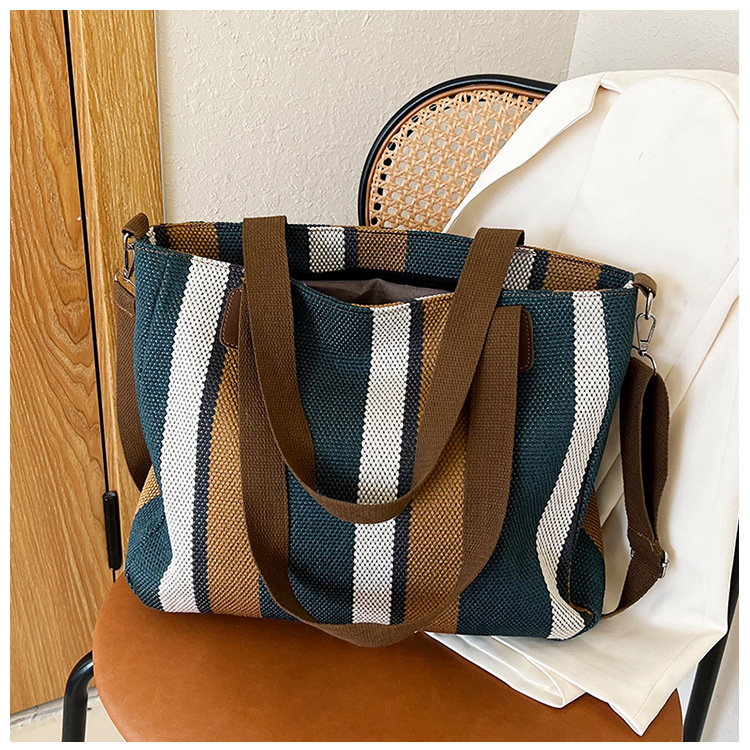 Bolsa grande para mujeres 2023 nueva moda a rayas bolsa de lona de mano de viaje bolsa de mano Topo de hombro de moda bolsa de pecho inclinada
