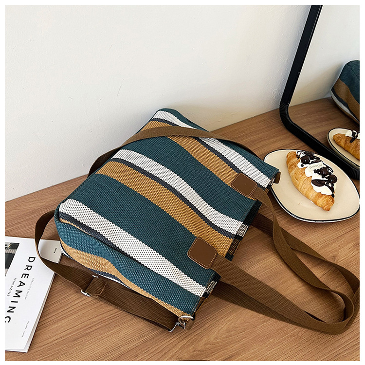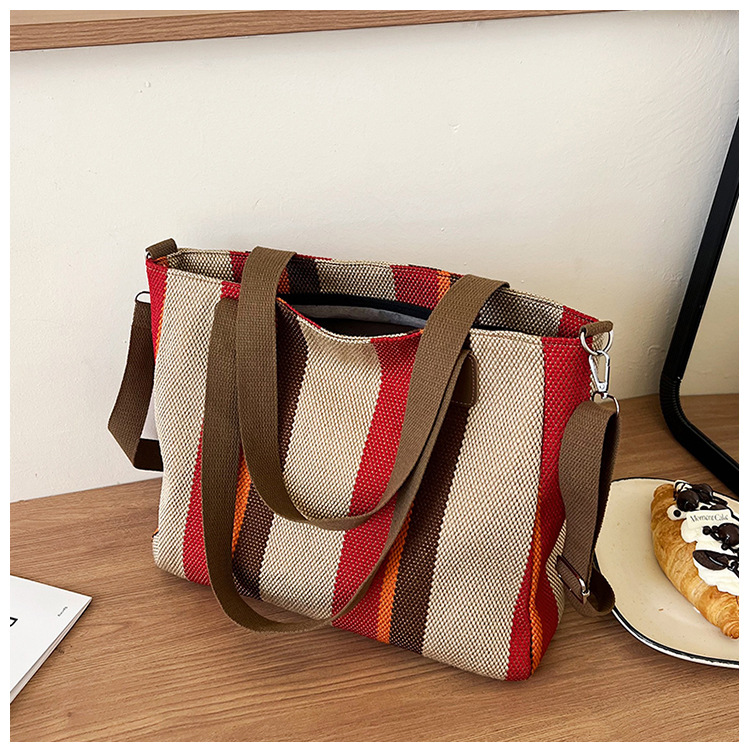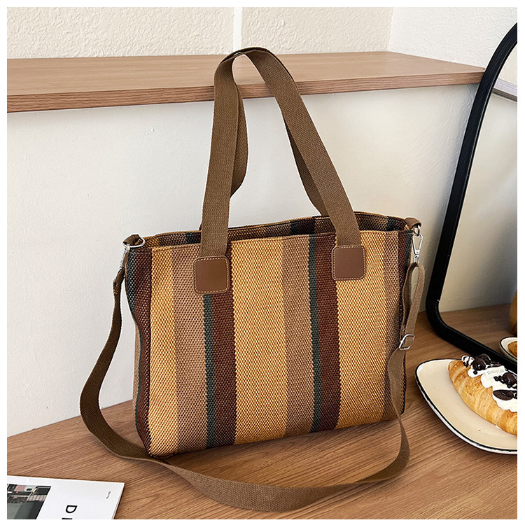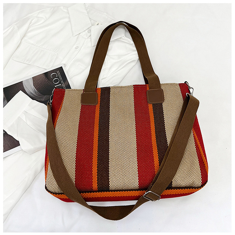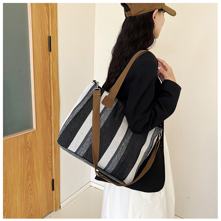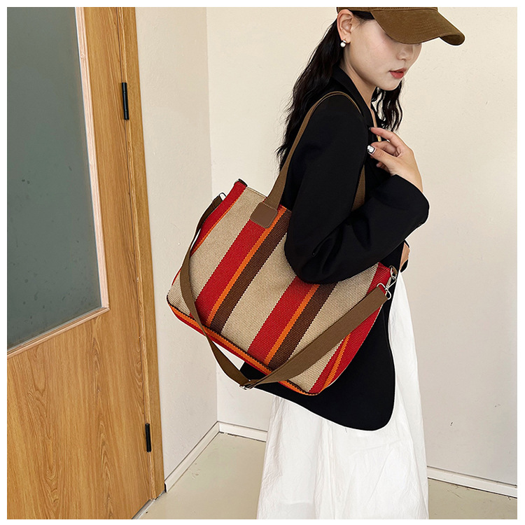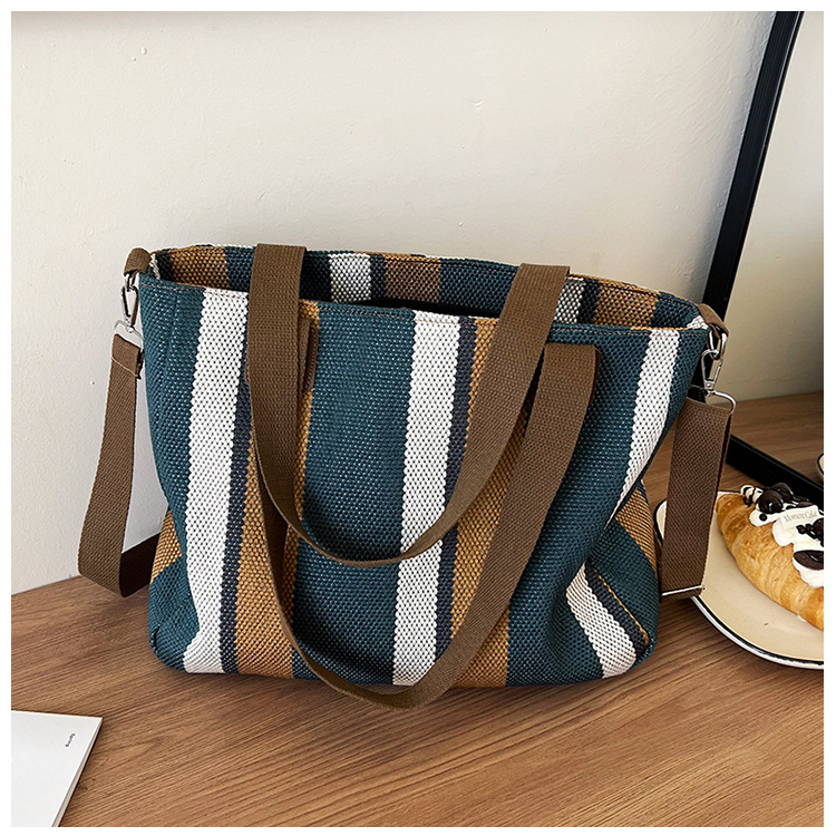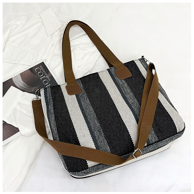 Bolsa grande para mujeres 2023 nueva moda a rayas bolsa de lona de mano de viaje bolsa de mano Topo de hombro de moda bolsa de pecho inclinada