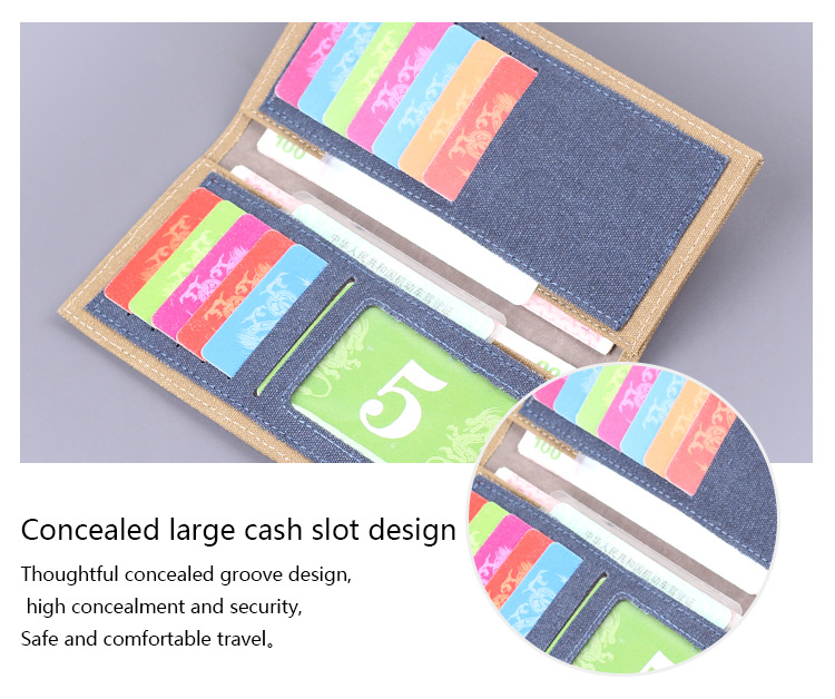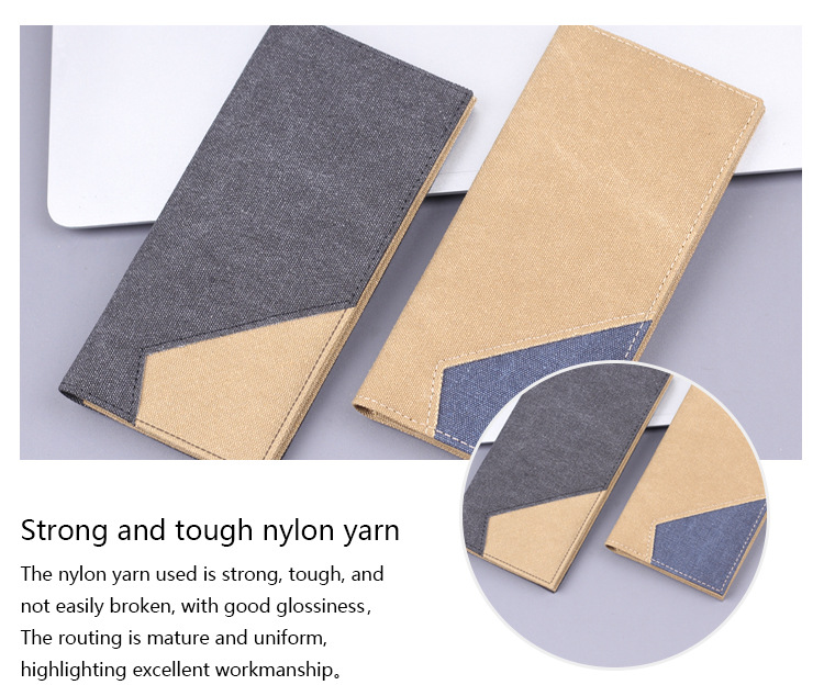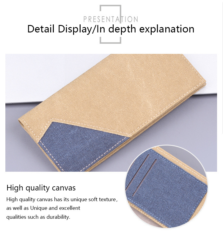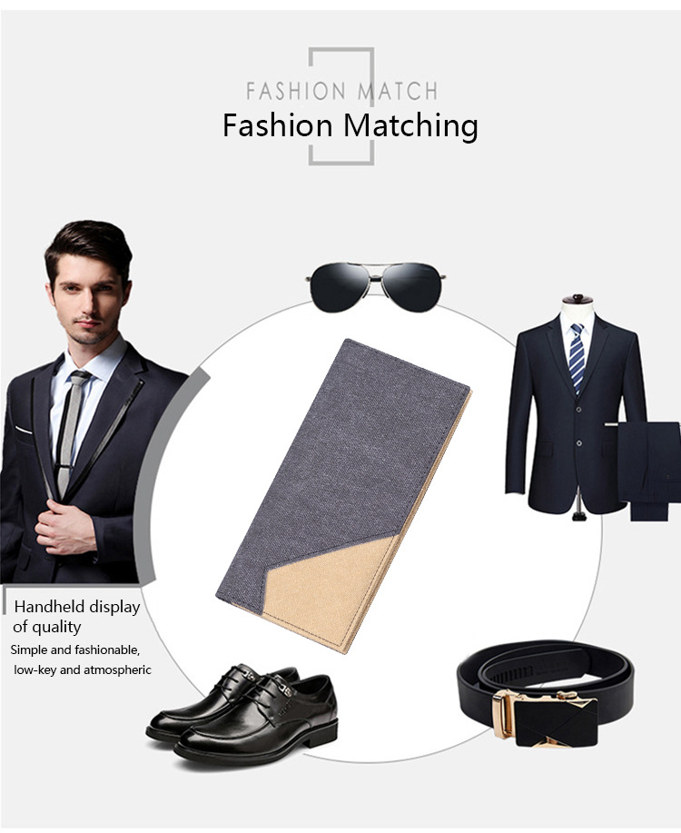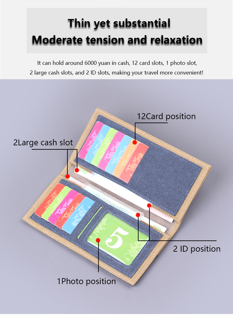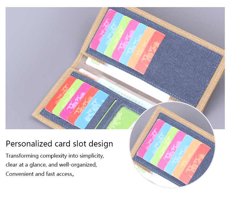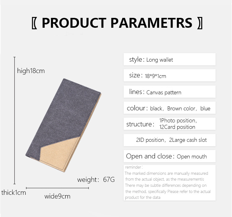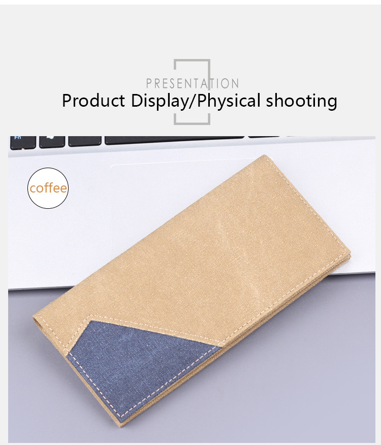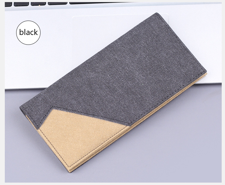 Canvas cartera larga para hombres, cartera delgada para hombres, cartera de cuero para hombres, 12 tarjetas de tela, bolso de traje delgado