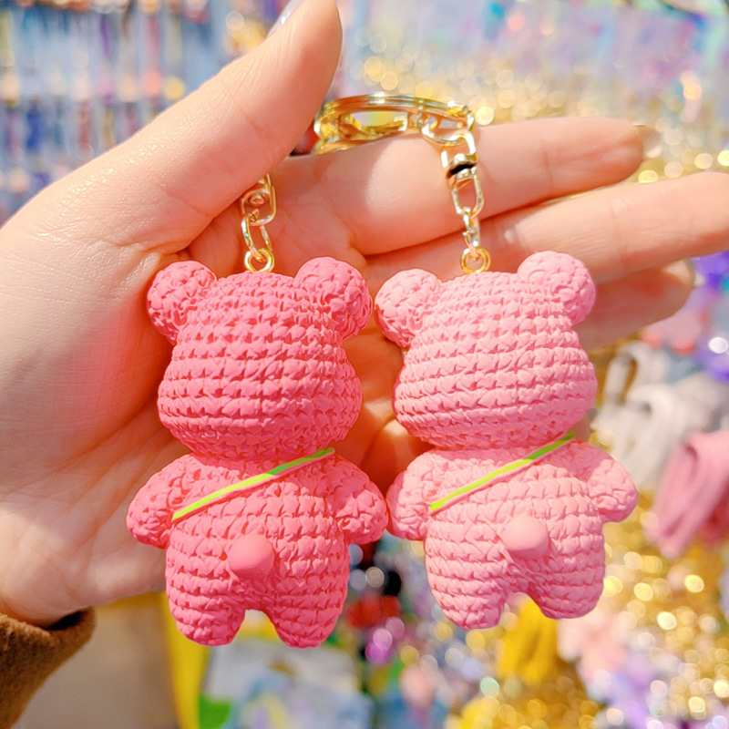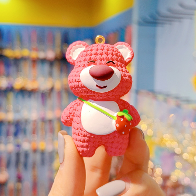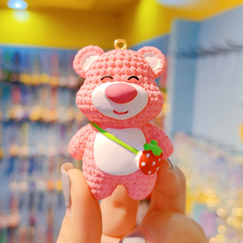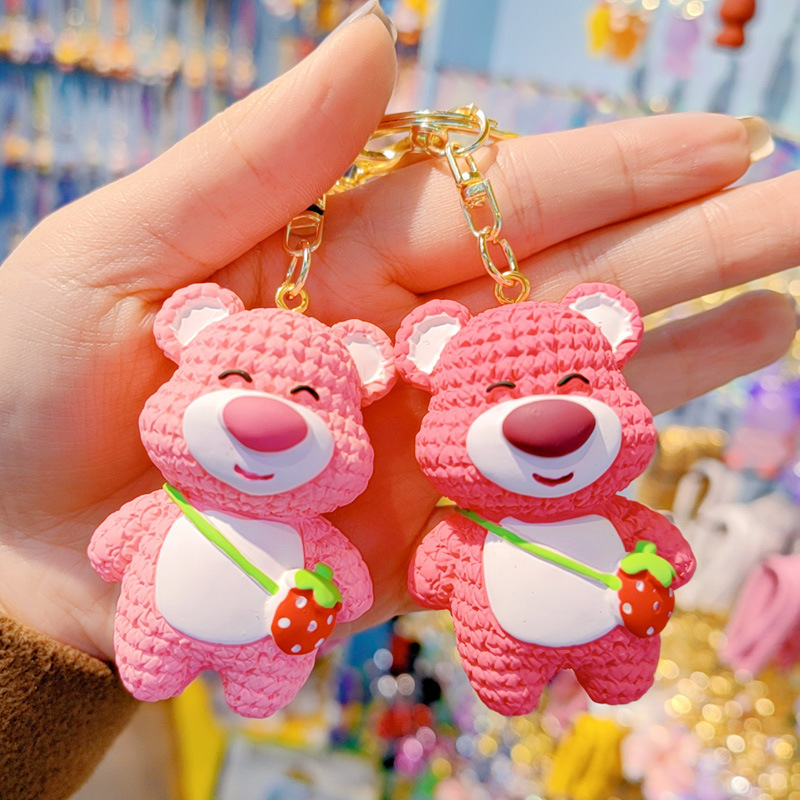 Llavero con Colgante de Oso de Fresa de Dibujos Animados para Mujer, Lindo Llavero de Muñeca Estilo Mejor Amiga, Creativo Colgante para Mochila y Llaves de Coche