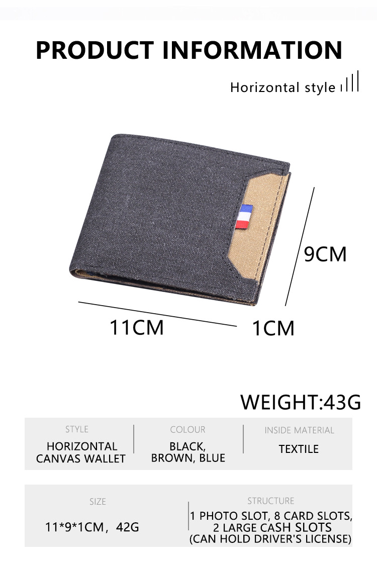 Canvas cartera de hombre cartera corta cartera de tarjetas cartera de hombre cartera de boletos de hombre jeans delgado hombre comercio electrónico transfronterizo