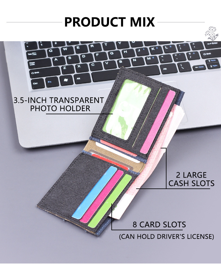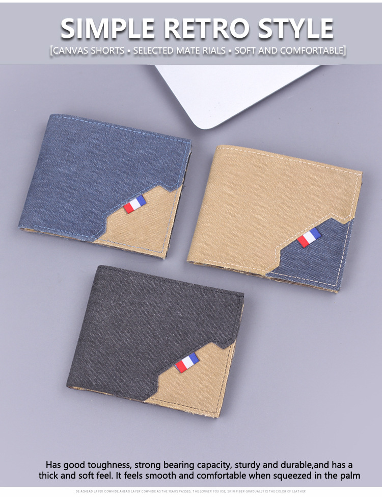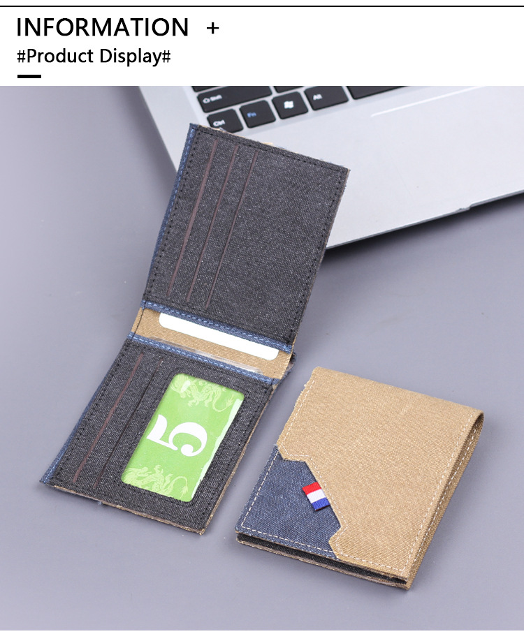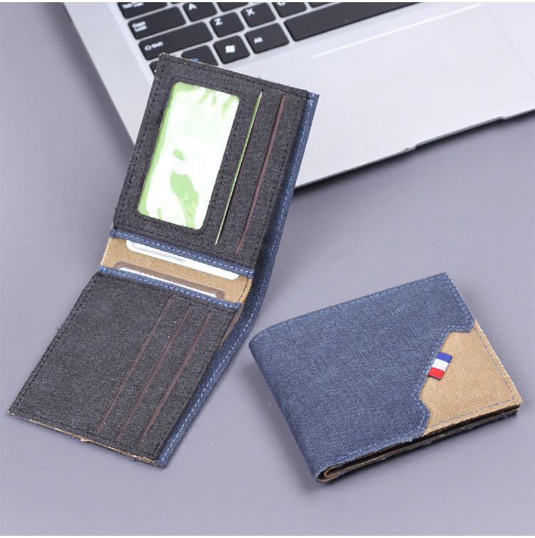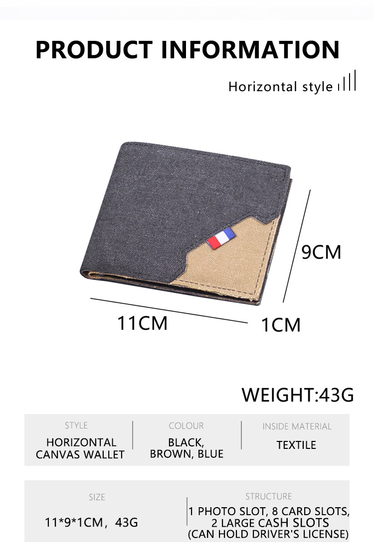Canvas para hombres cartera corta de tela suave cartera de hombre doble para hombres multi-tarjeta nueva bolsa de tarjetas en 9 tarjetas