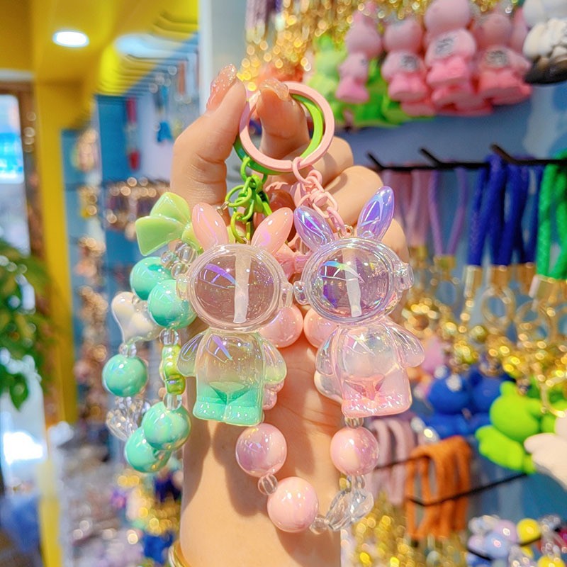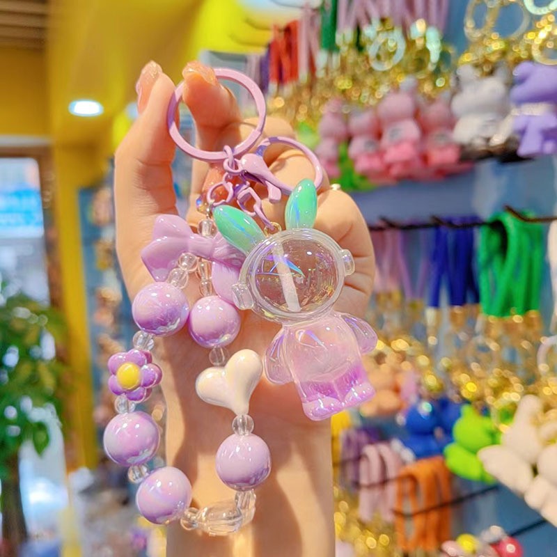 Nuevo colorido cuentas para usar auriculares bolsos de resina de conejo aeroespacial colgante de dibujos animados conejo llavero accesorios para estudiantes