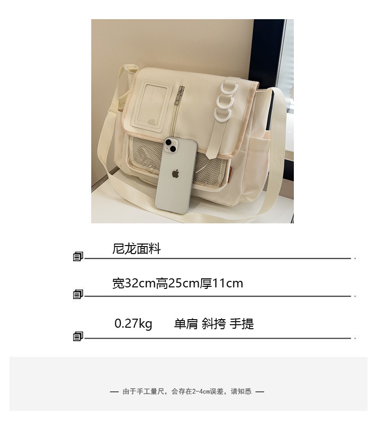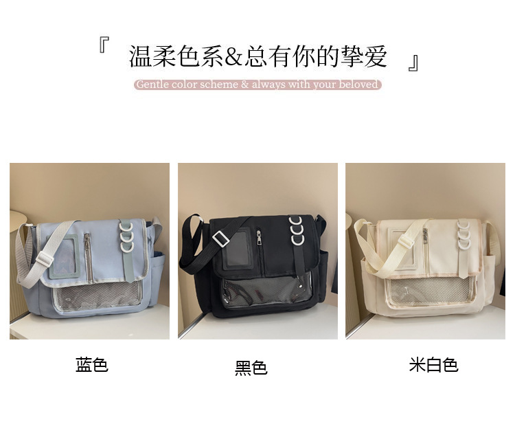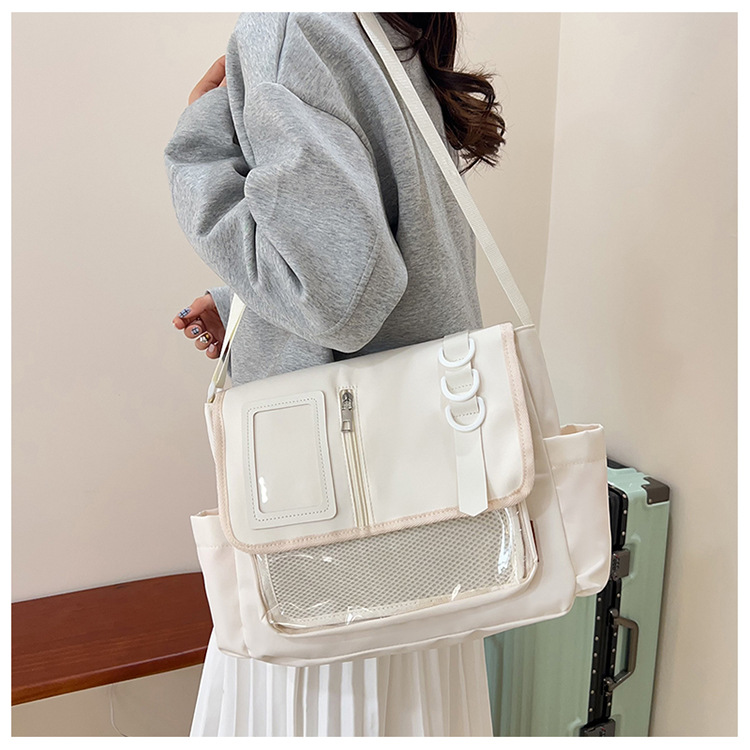 Bolso de tela de nailon japonés, diseño de estilo universitario, bolso de hombro de costura informal, bolso de dolor transparente ligero, bolso de mensajero, marea