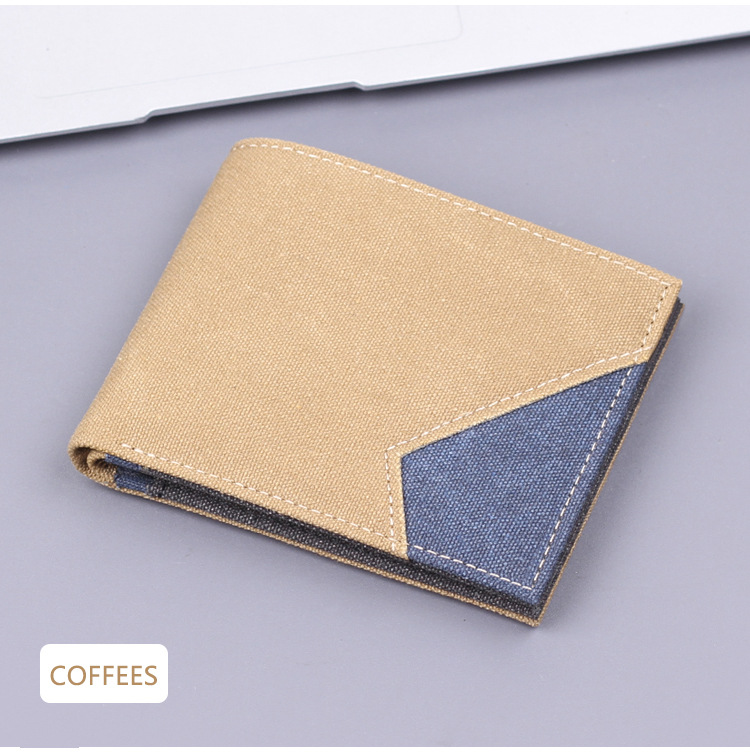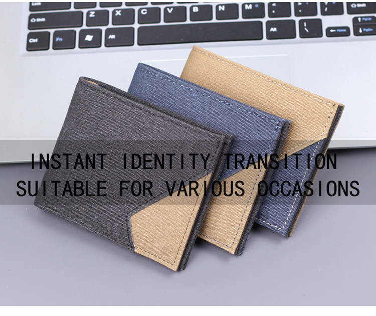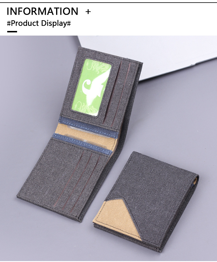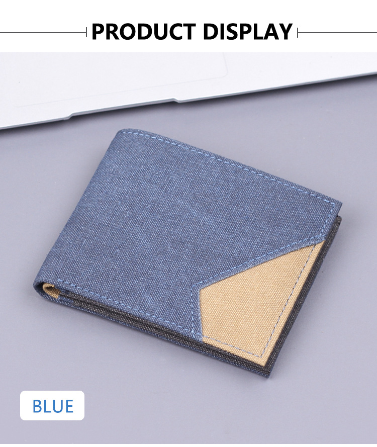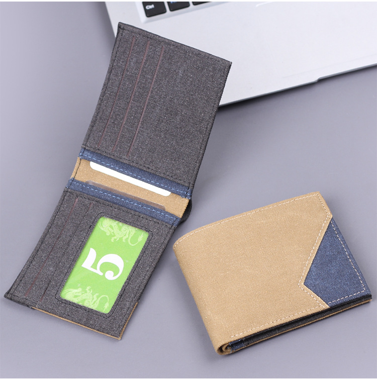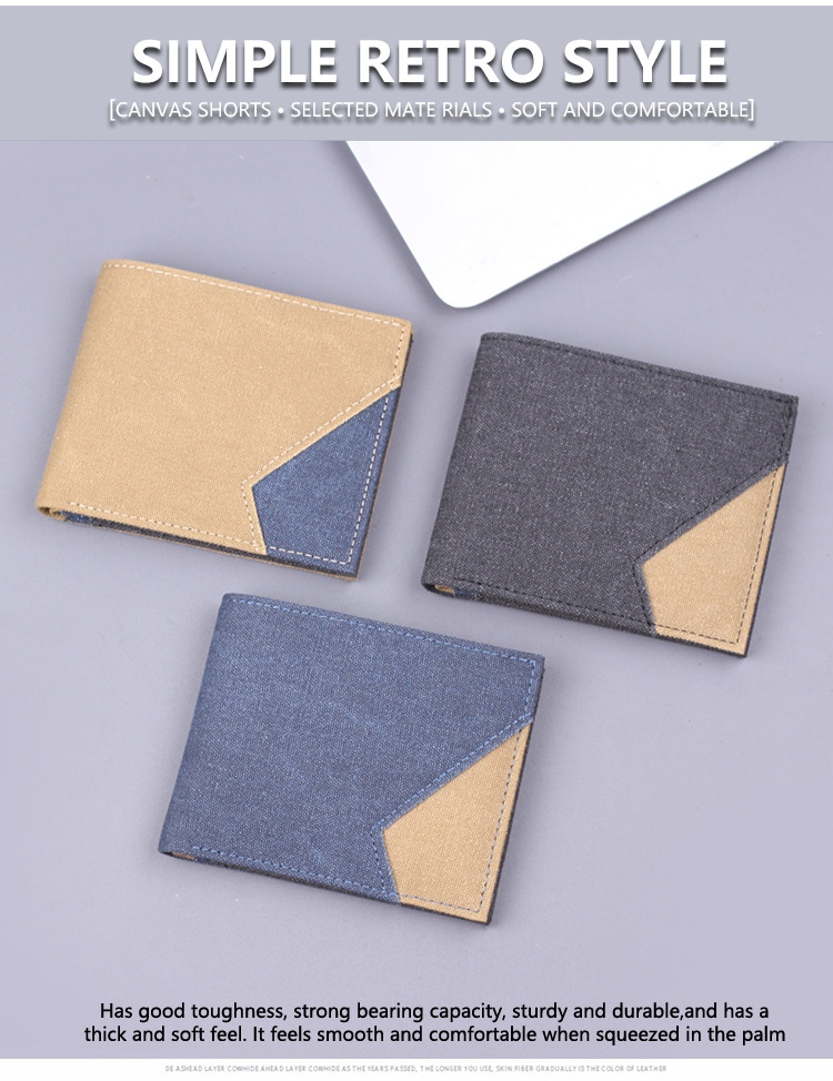 Jean cartera corta de hombre cartera de 9 tarjetas para hombres cartera de lona de tela suave cartera de cuero empalme