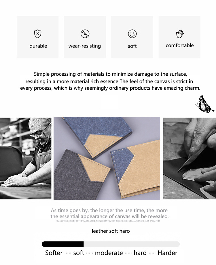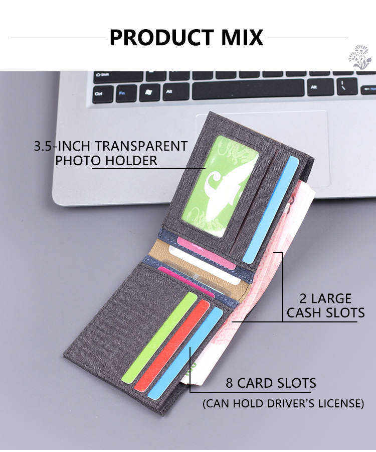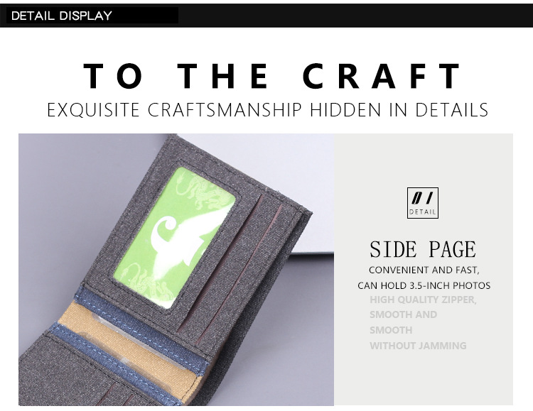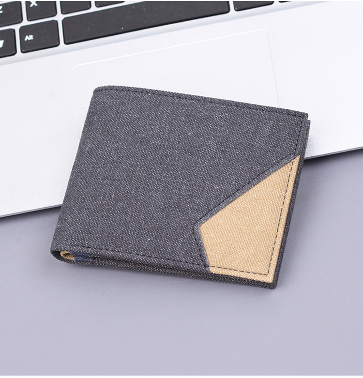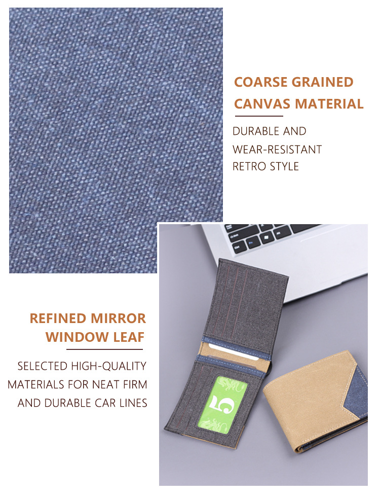 Jean cartera corta de hombre cartera de 9 tarjetas para hombres cartera de lona de tela suave cartera de cuero empalme