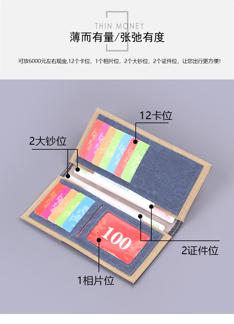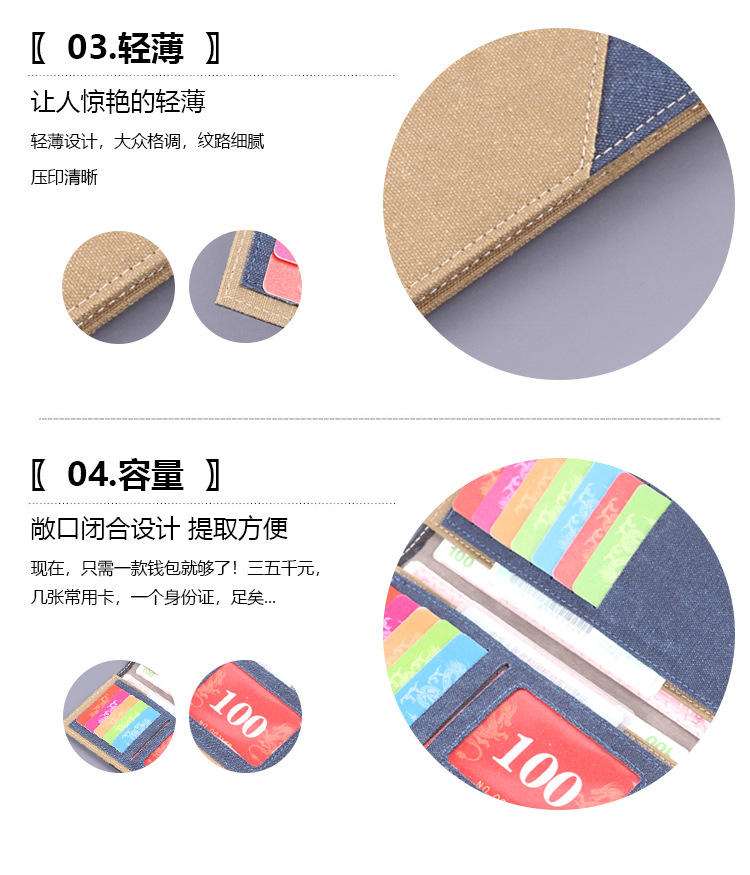 Cartera larga para hombres, lona, denim para hombres, cartera delgada para hombres, bolsa de trajes para hombres, bolsas de tarjetas, bolsas de tarjetas para tarjetas