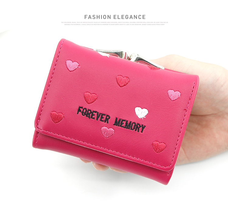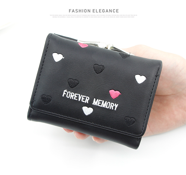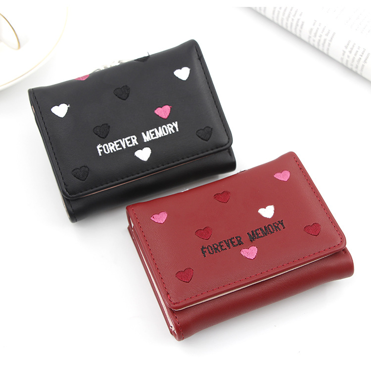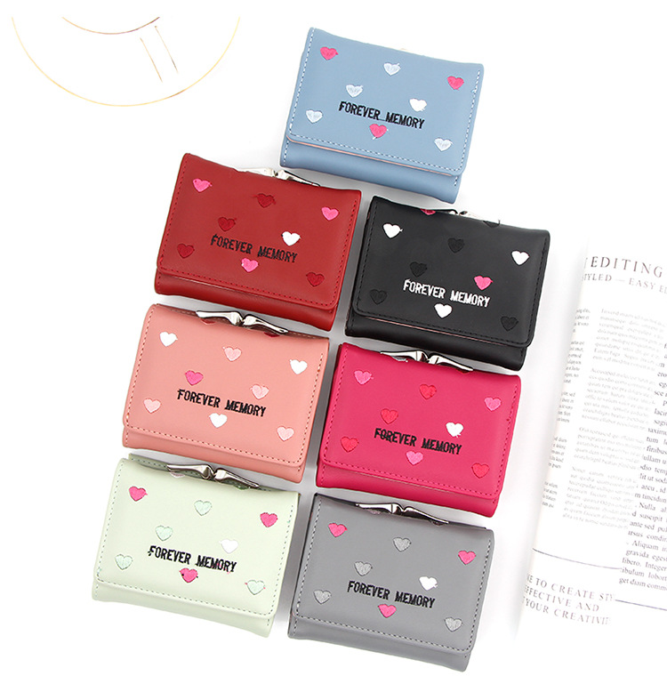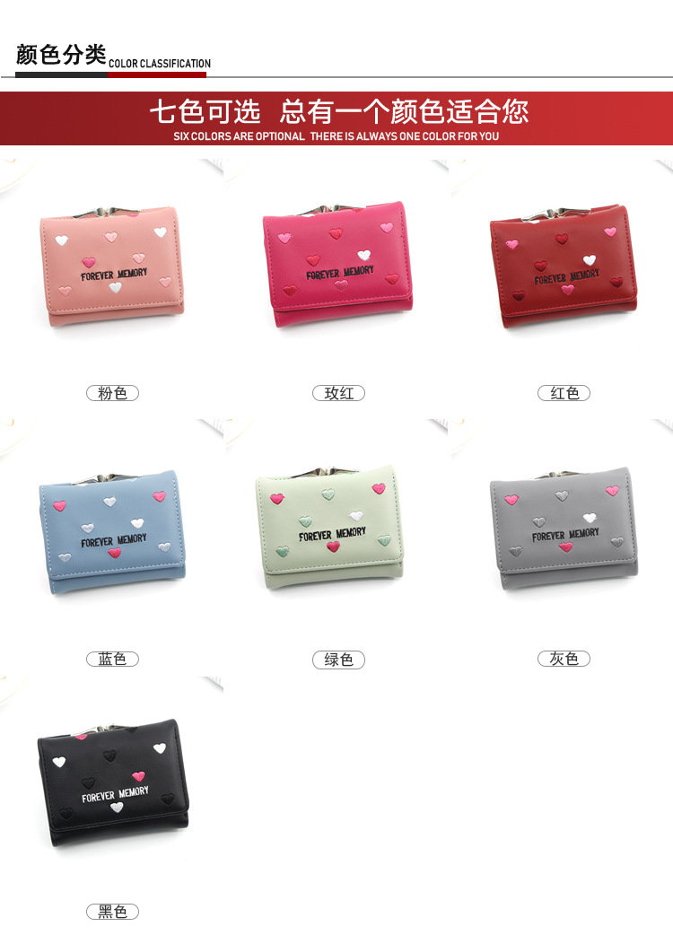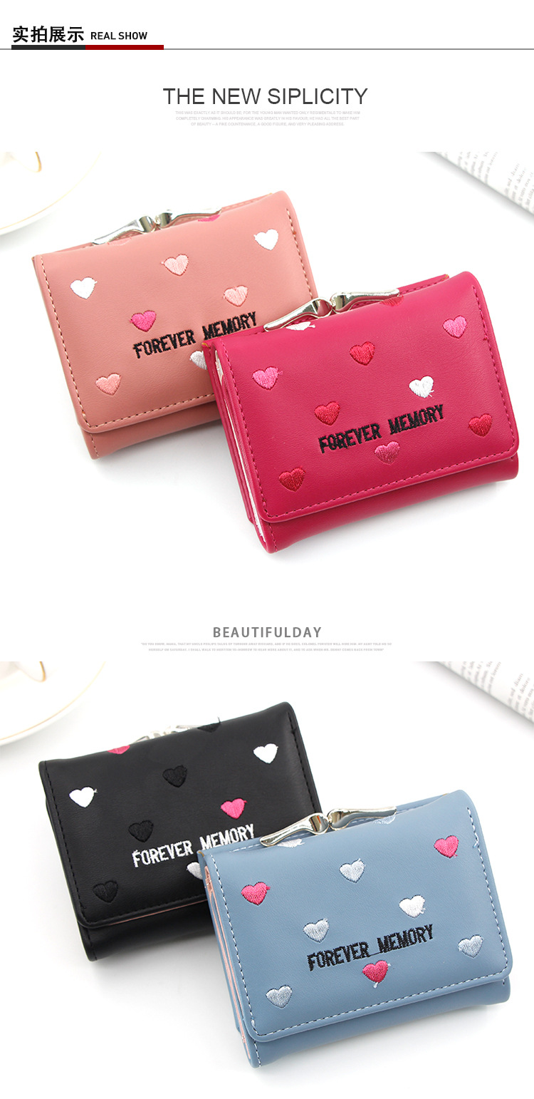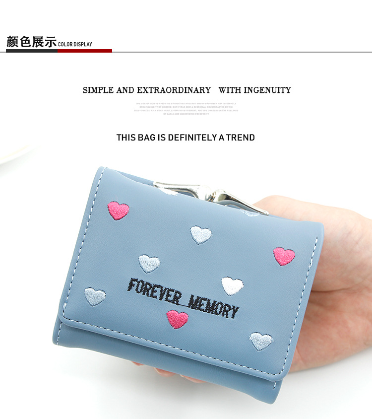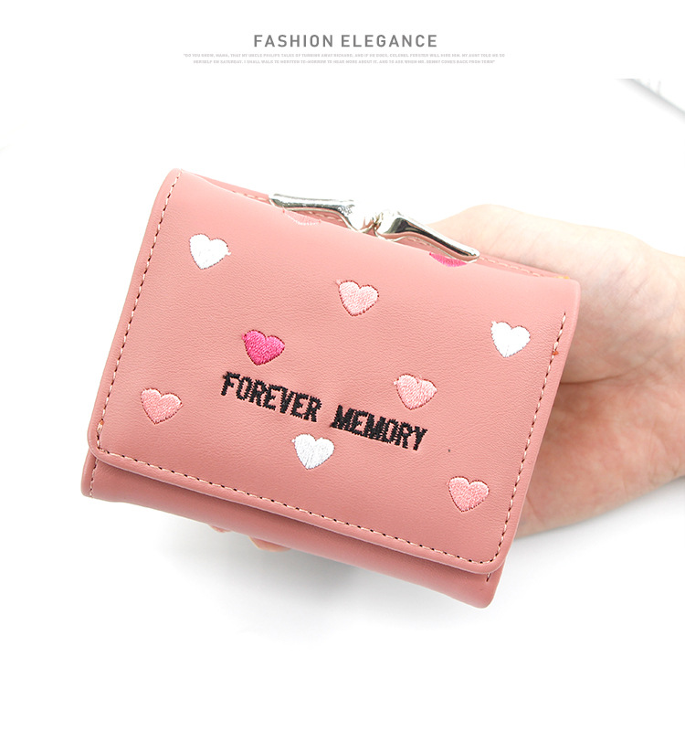 Bordered coreano amor amor damas billetera corta bolsa de cambio de gran capacidad bolsa de monedas de tres plegadas bolsa de dinero de chicas