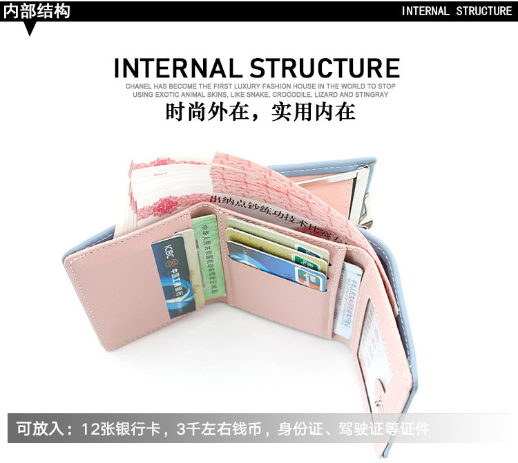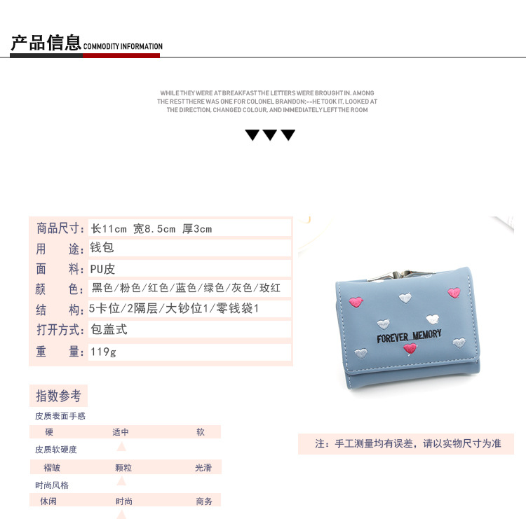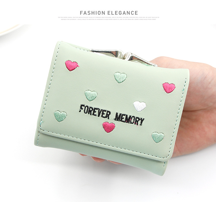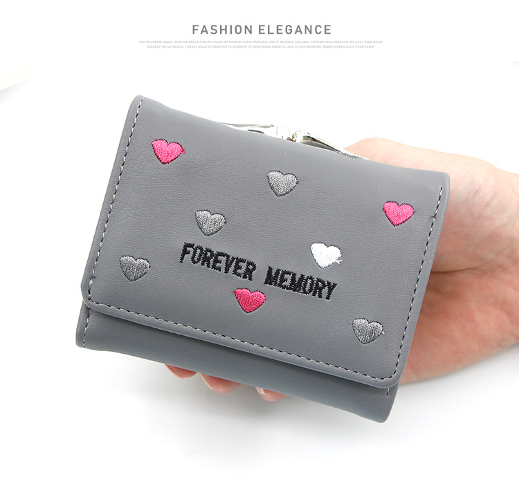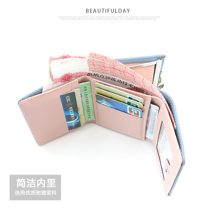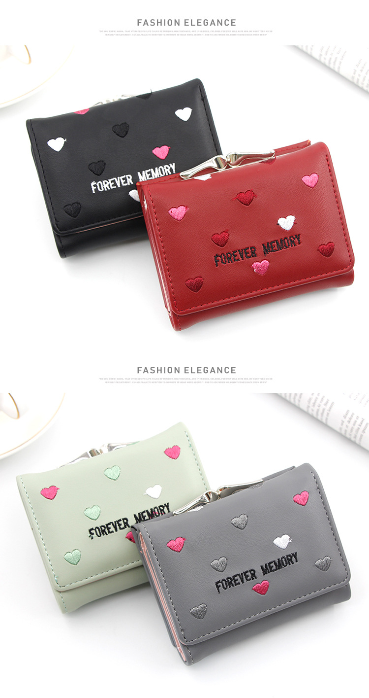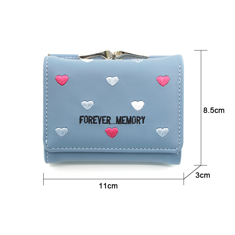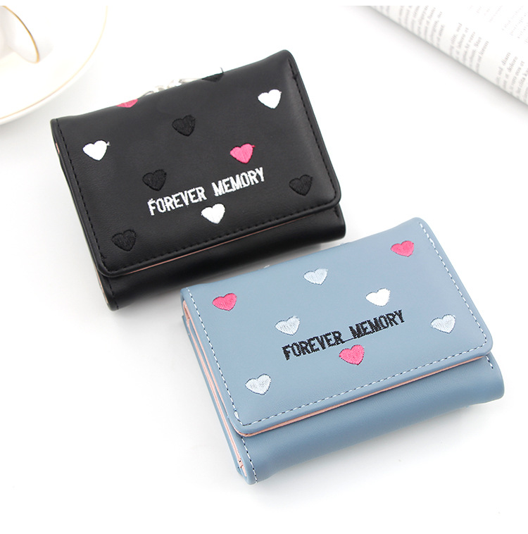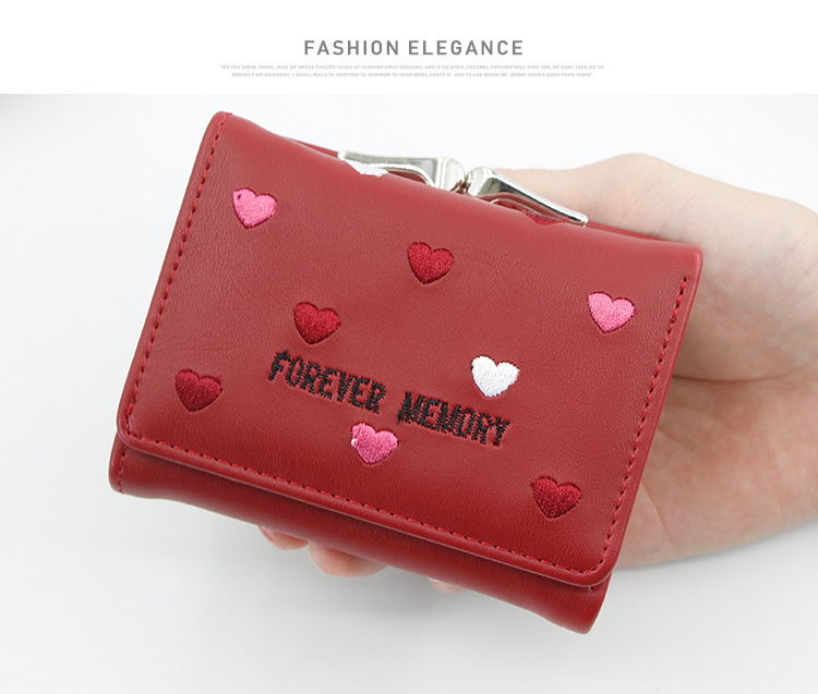 Bordered coreano amor amor damas billetera corta bolsa de cambio de gran capacidad bolsa de monedas de tres plegadas bolsa de dinero de chicas
