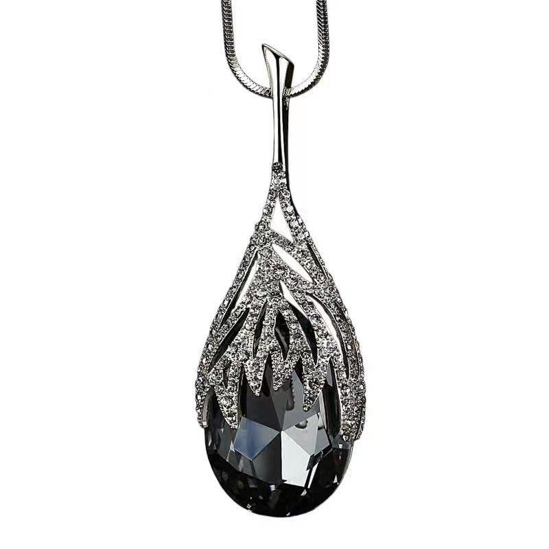 Estilo coreano de moda de gama alta de cristal diamante gota de agua suéter cadena de las mujeres transfronteriza popular personalizada geométrica todo fósforo ropa collar