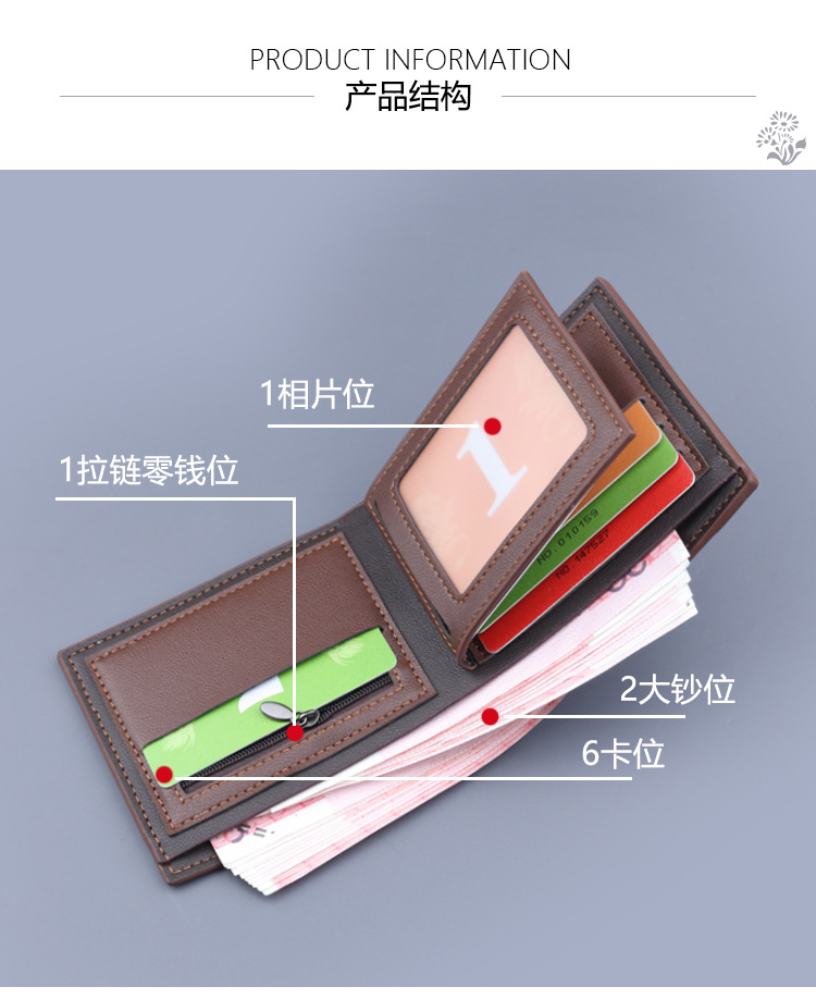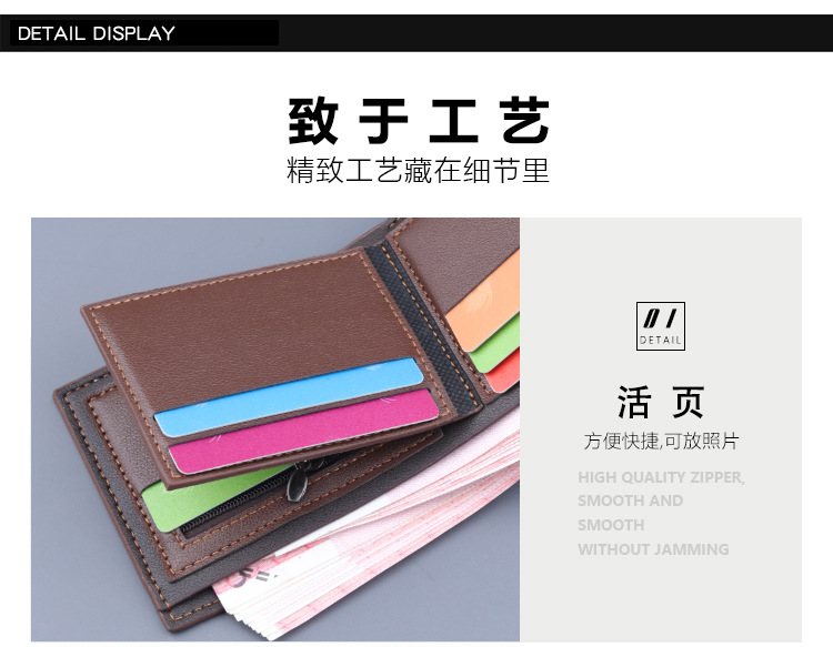 Cartera corta titular de la tarjeta de los hombres cartera corta integrada titular de la tarjeta de los hombres con cremallera cartera corta monedero de los hombres