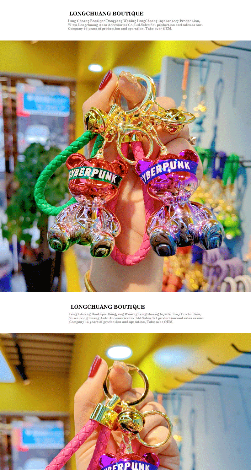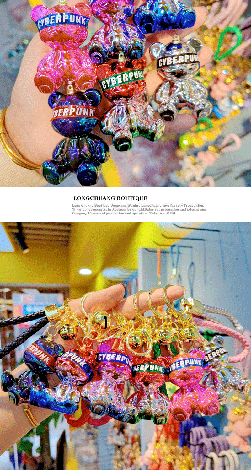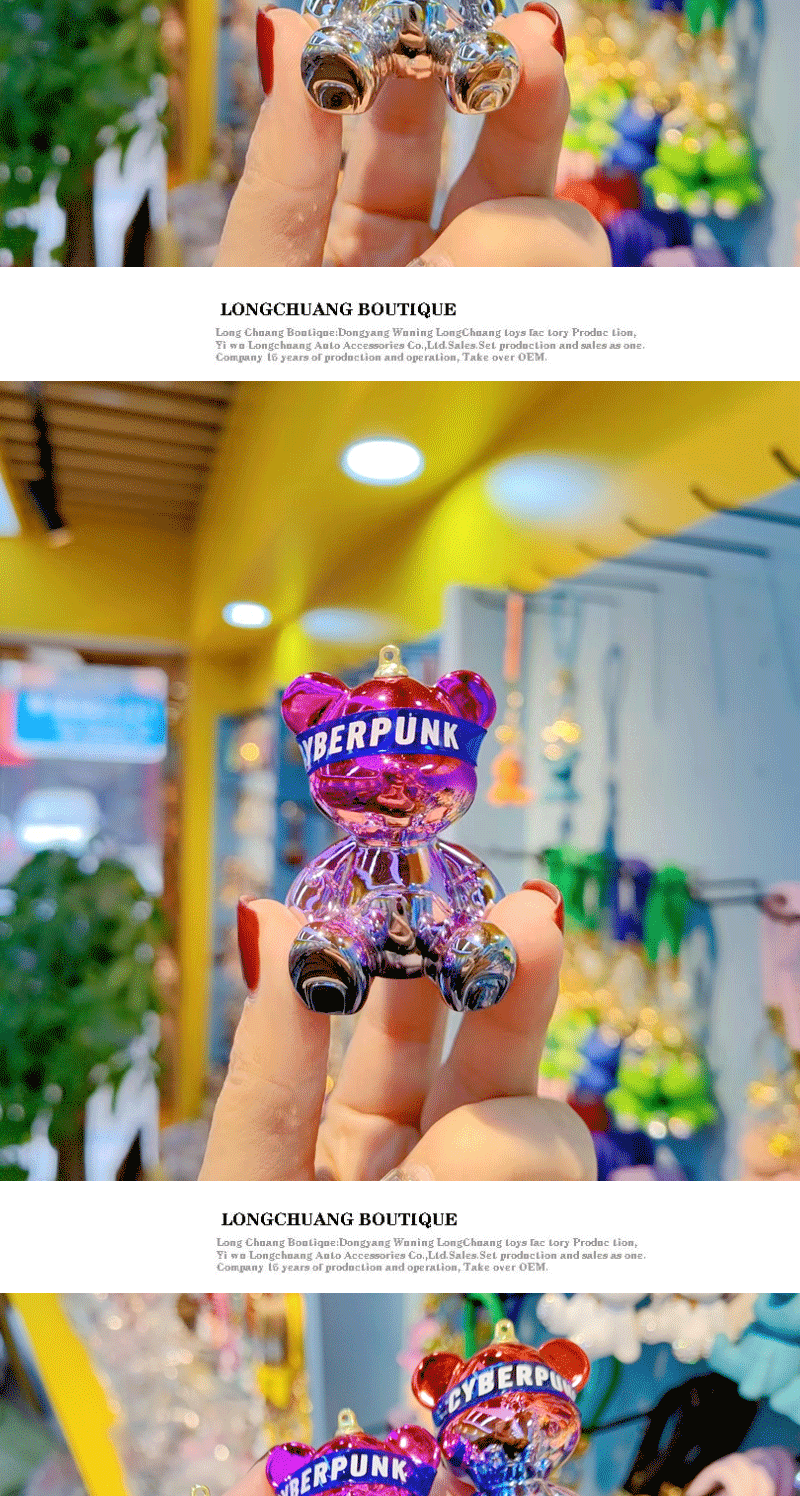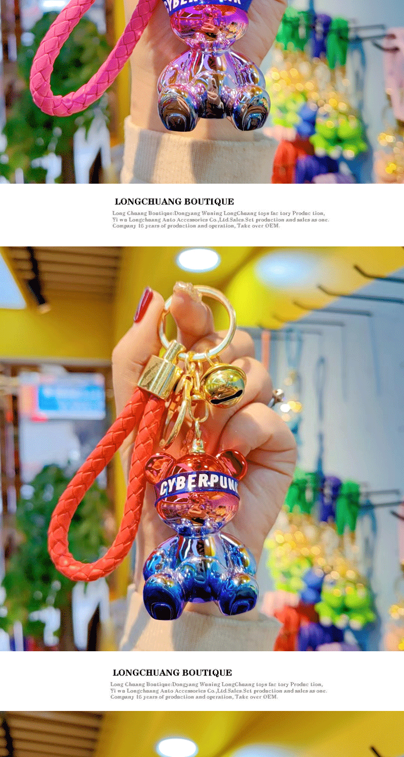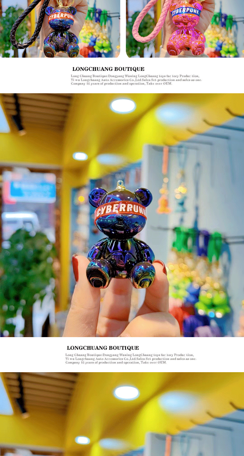 Resina de dibujos animados colorido gradiente oso llavero creativo postura sentada red oso llavero de moda colgante de llave de automóvil