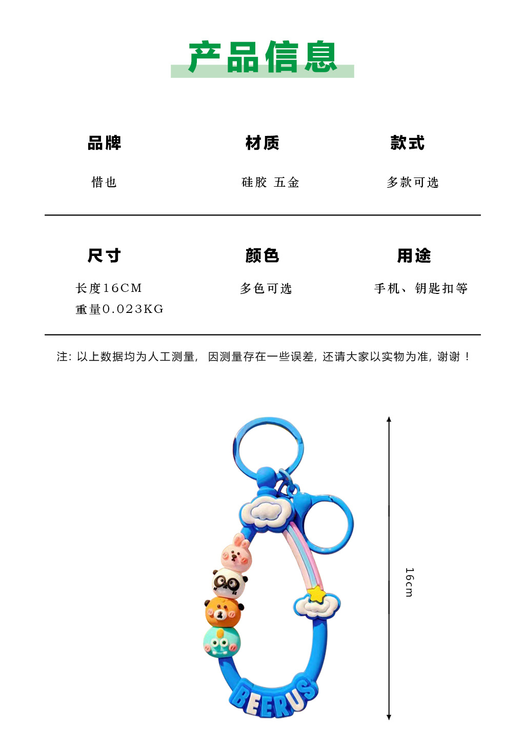 Colorido Berus dibujos animados cuerda Rana conejo llavero colgante Cadena de teléfono móvil fresco color sólido conjunto auriculares