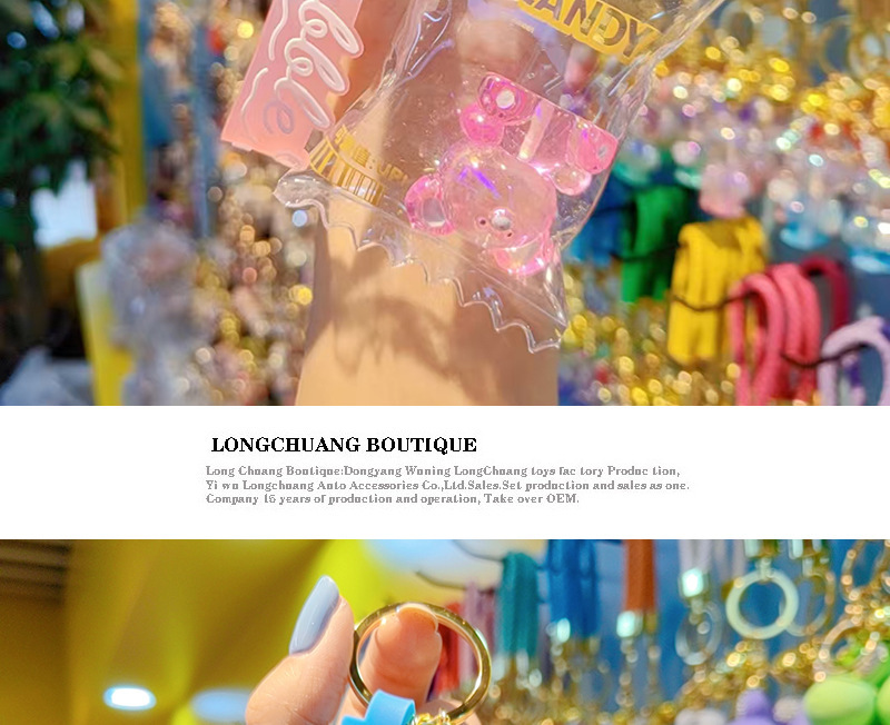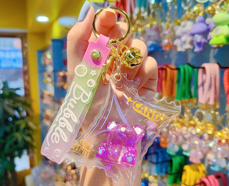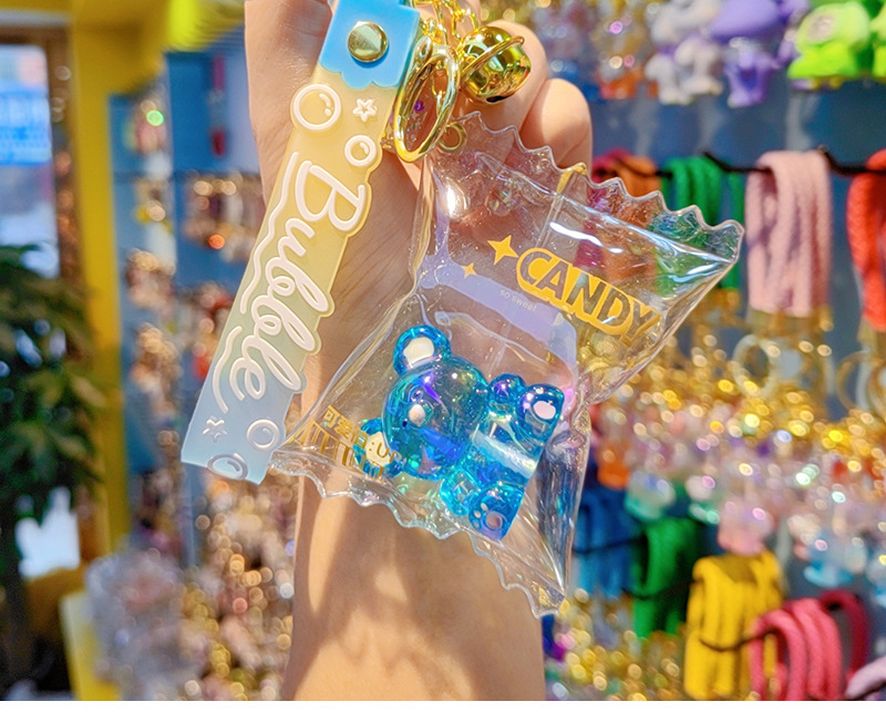 Caramelos inflados de color permeable osos llaveros bolsos de automóviles colgantes llaveros adorable osos accesorios colgantes al por mayor