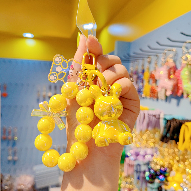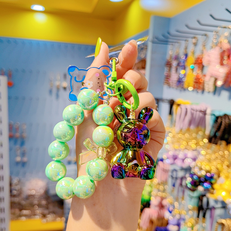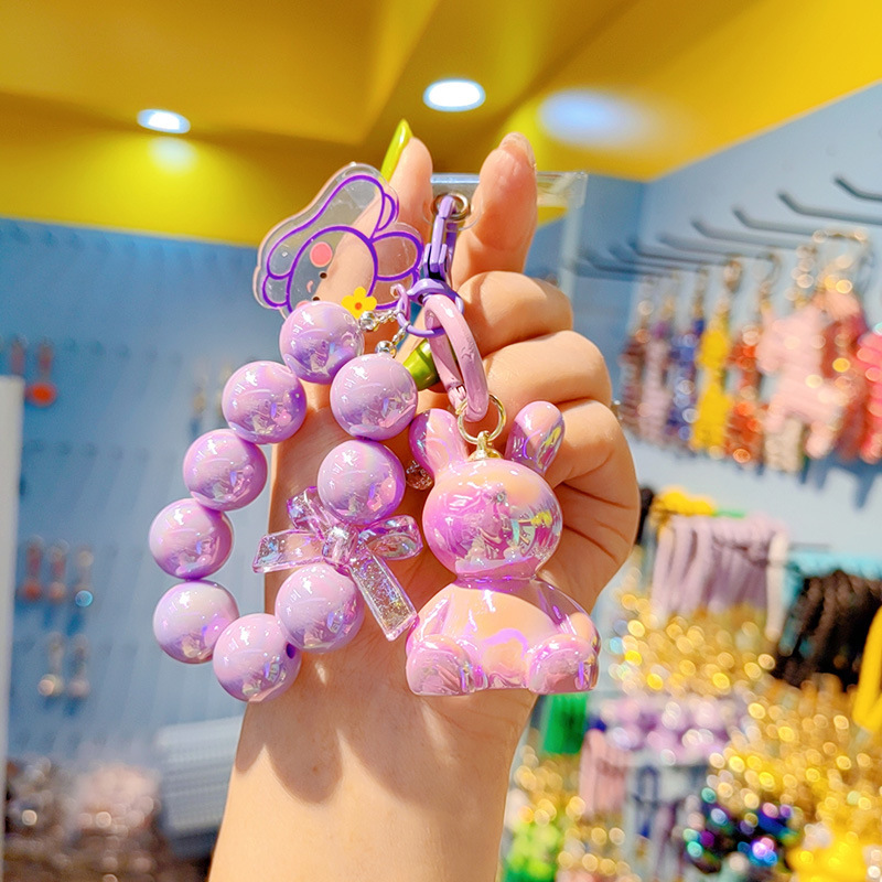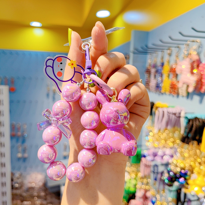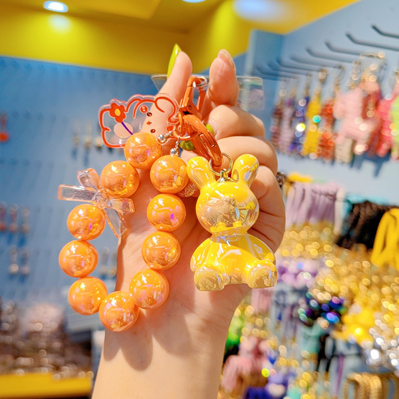 Cuentas electrochapado jalea color conejito llavero mujer moda Linda exquisita resina muñeca llavero teléfono móvil colgante