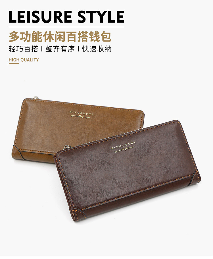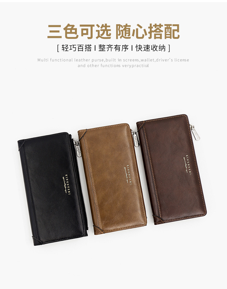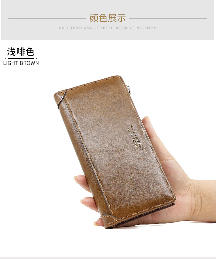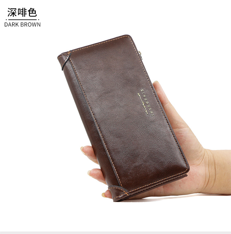 Europa y América transfronterizos retro piel de aceite cartera larga para hombres bolso de mano bolso de tarjeta multi-positio cartera de bisagra para hombres