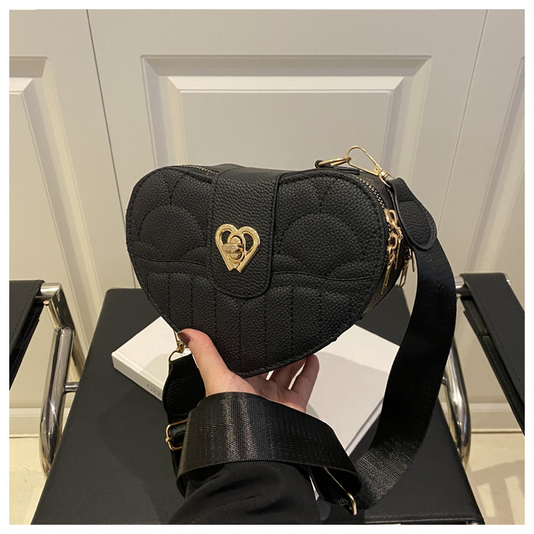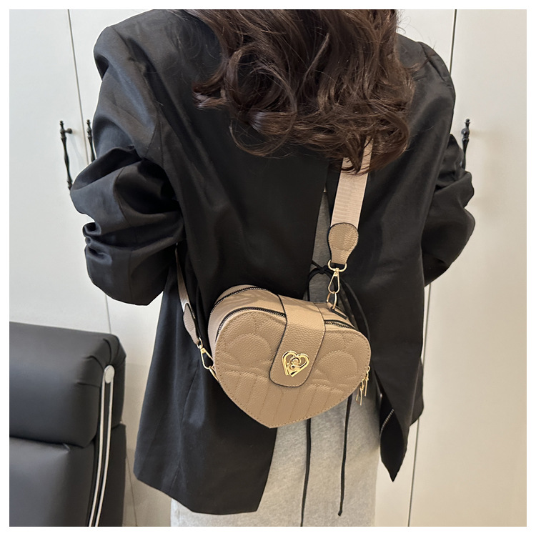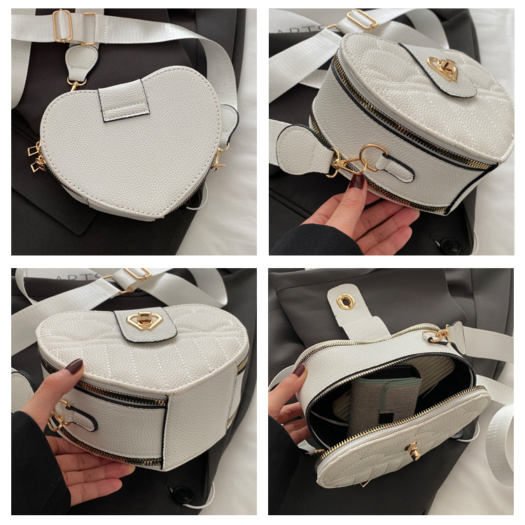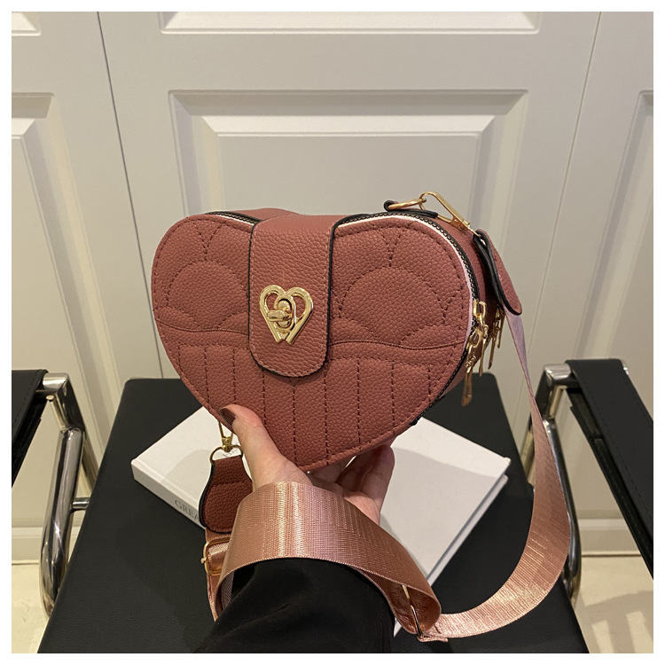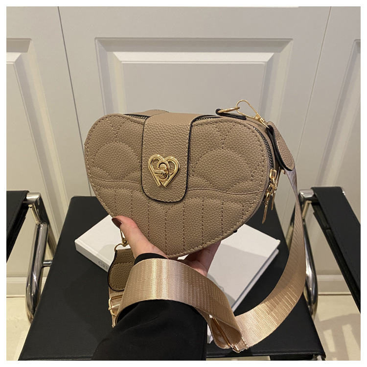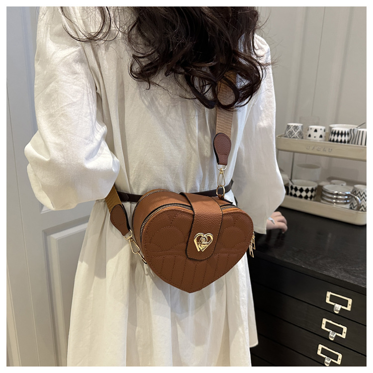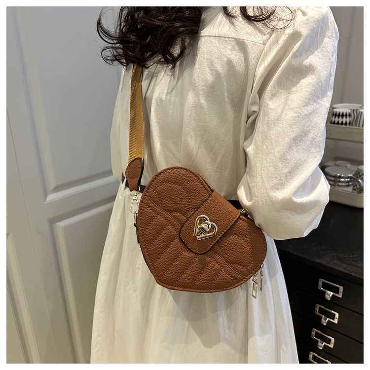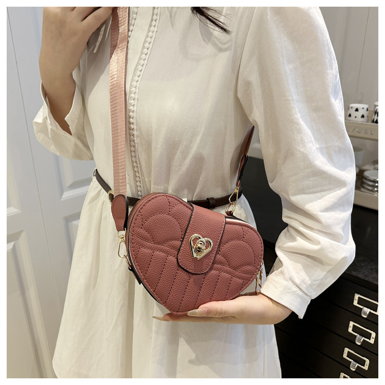 Bolso de mujer con bloqueo nuevo bolso de teléfono móvil de estilo extranjero, bolso de amor de un solo hombro retro estampado de litchi.