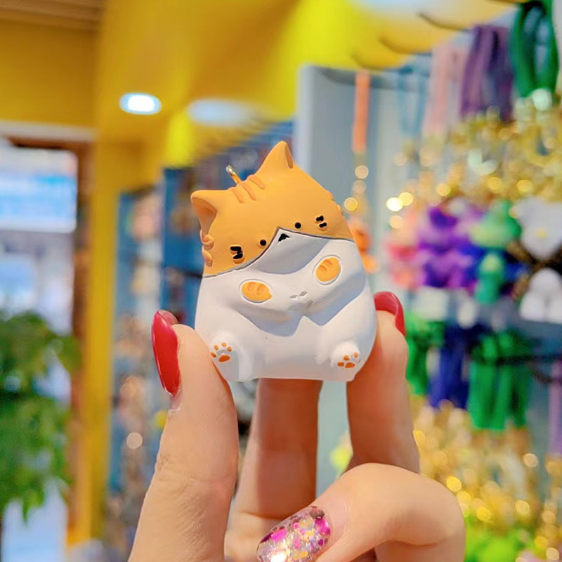 Resina de dibujos animados grasa gato llavero hembra lindo exquisito teléfono móvil cadena pulsera muñeca lindo llavero bolsa colgante