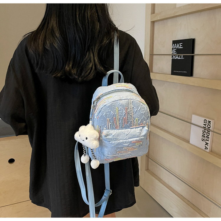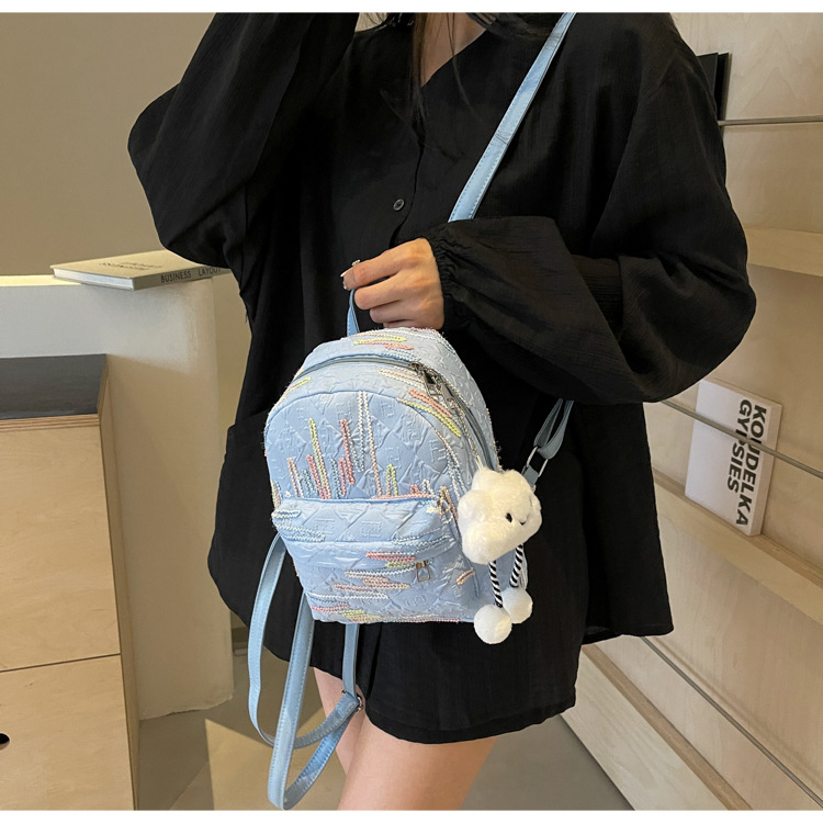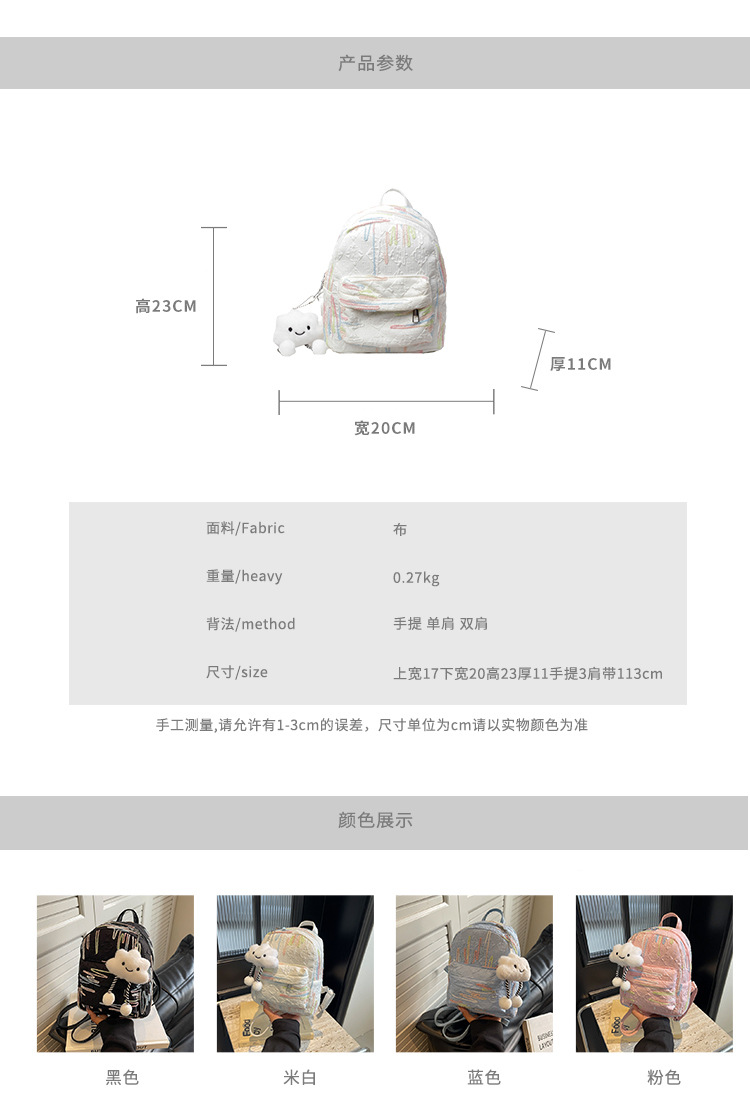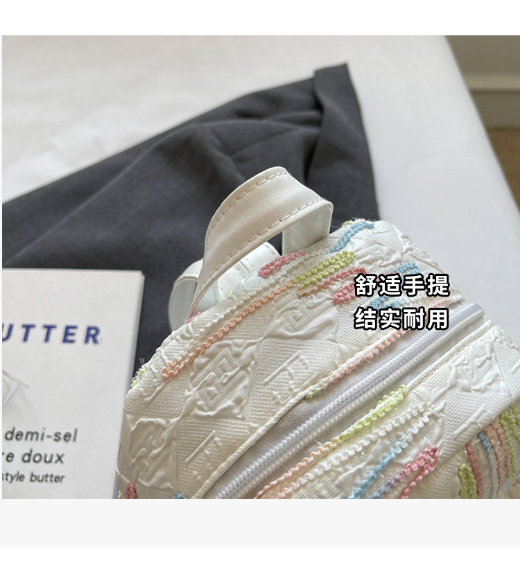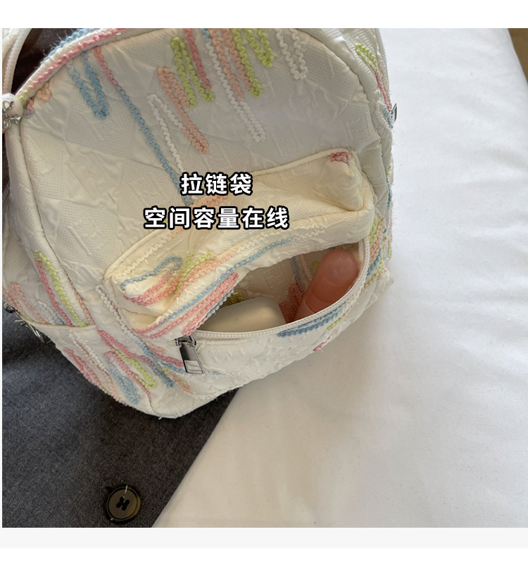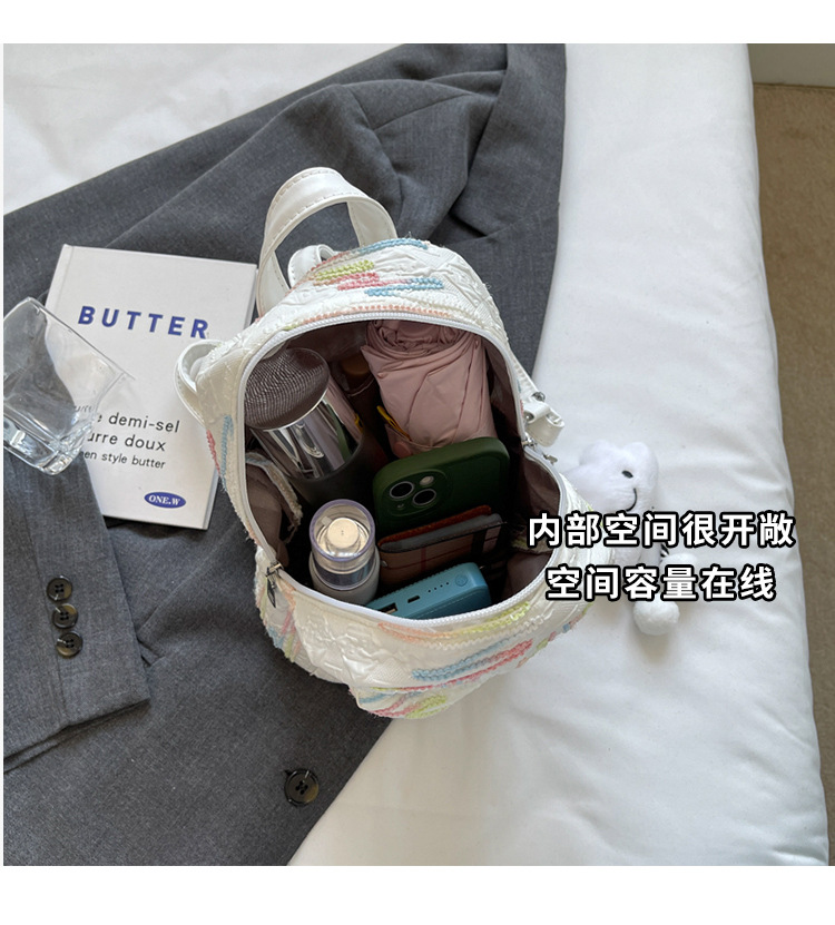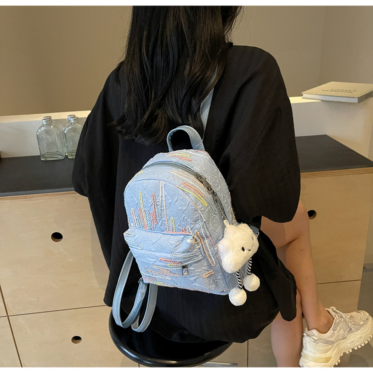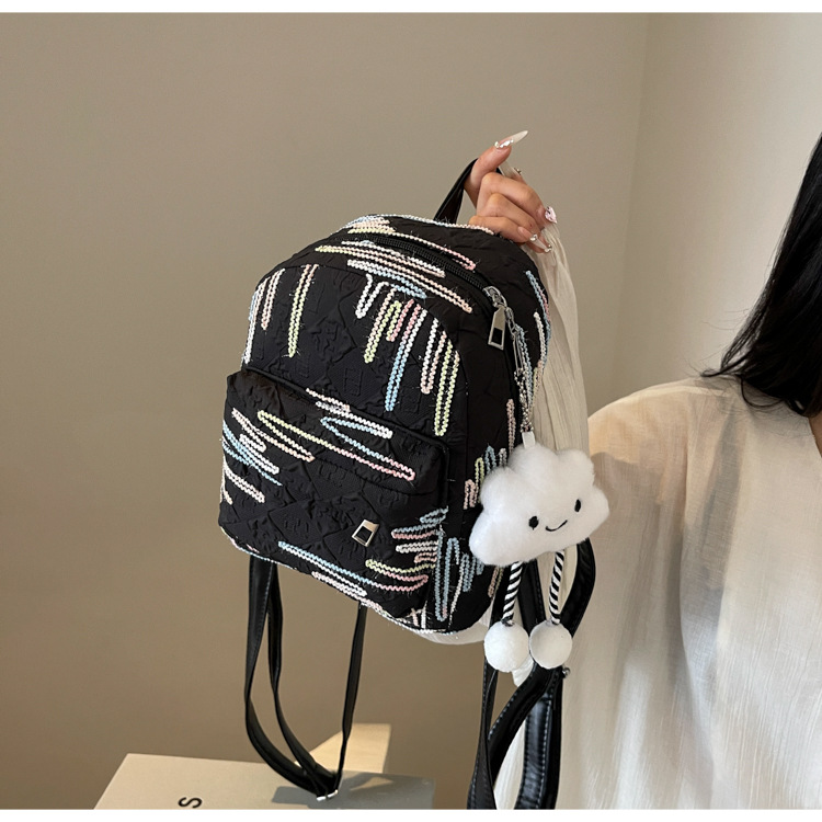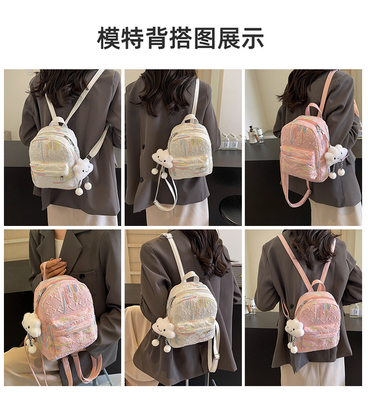 Mochila para viajes de niñas, hermosa mujer universitaria minimalista, rayas de color, mochila de moda de primavera.