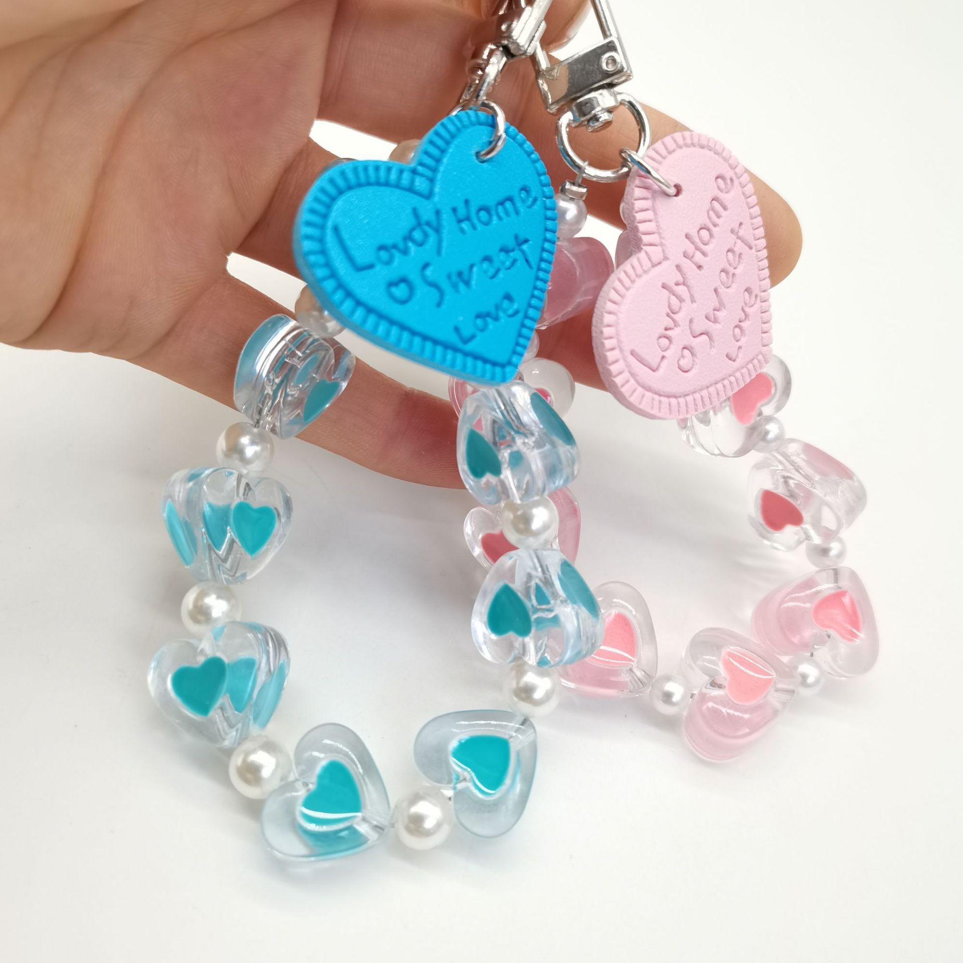 Amor creativo pulsera llavero colgante moda melocotón corazón carta cuero transparente accesorios lindo mochila Accesorios