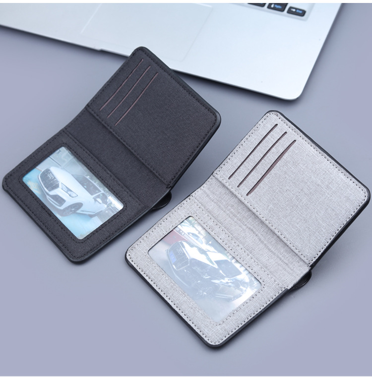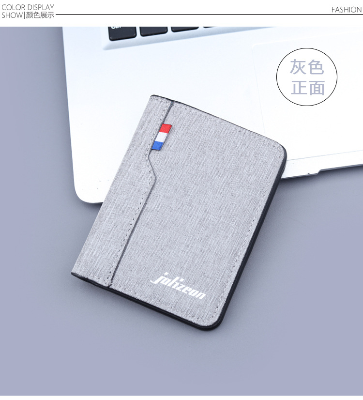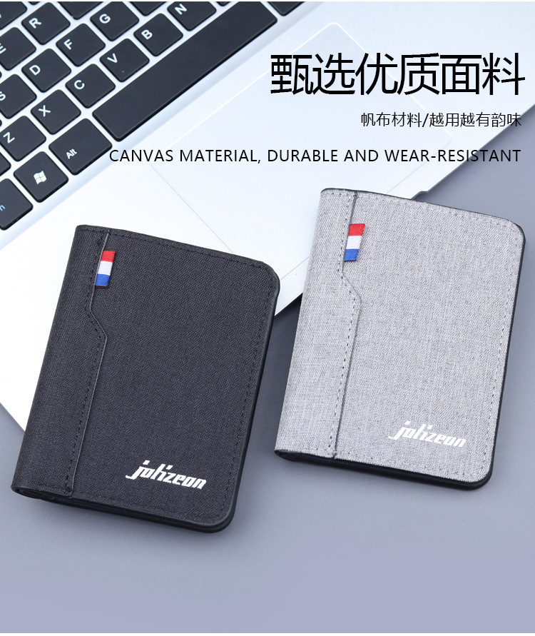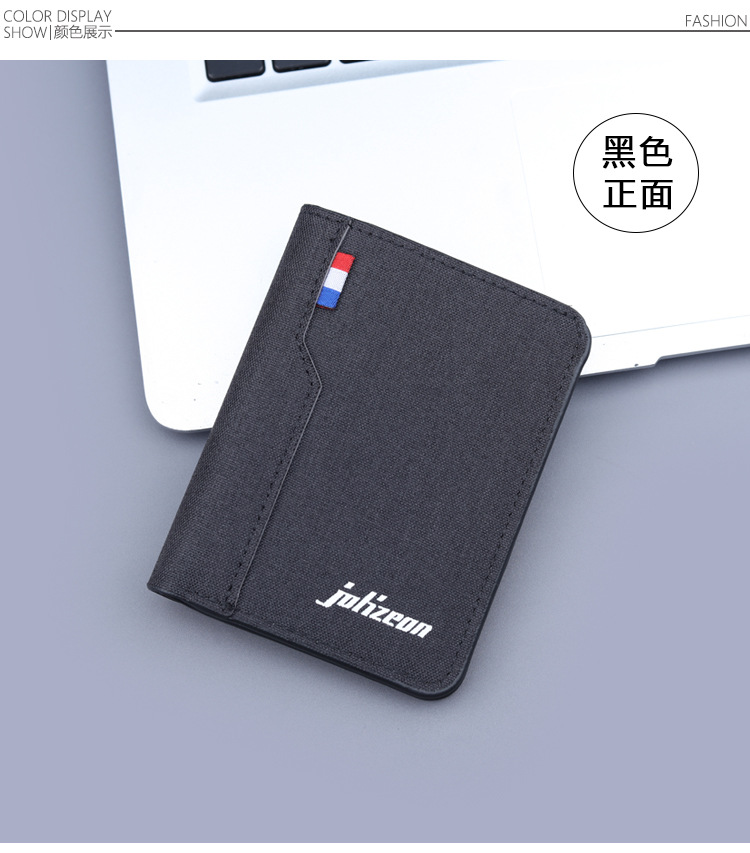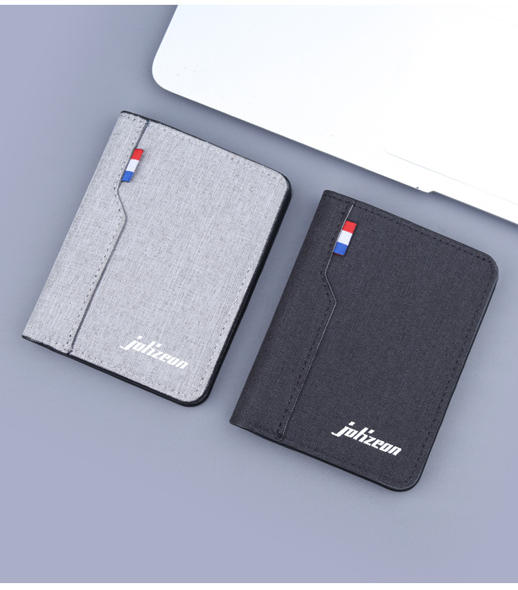 Cartera vertical de tela suave, cartera de lona, cartera plegable de cuero para hombres, mini vaqueros, cartera pequeña, cartera de tarjetas para hombres.