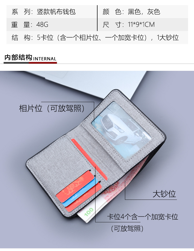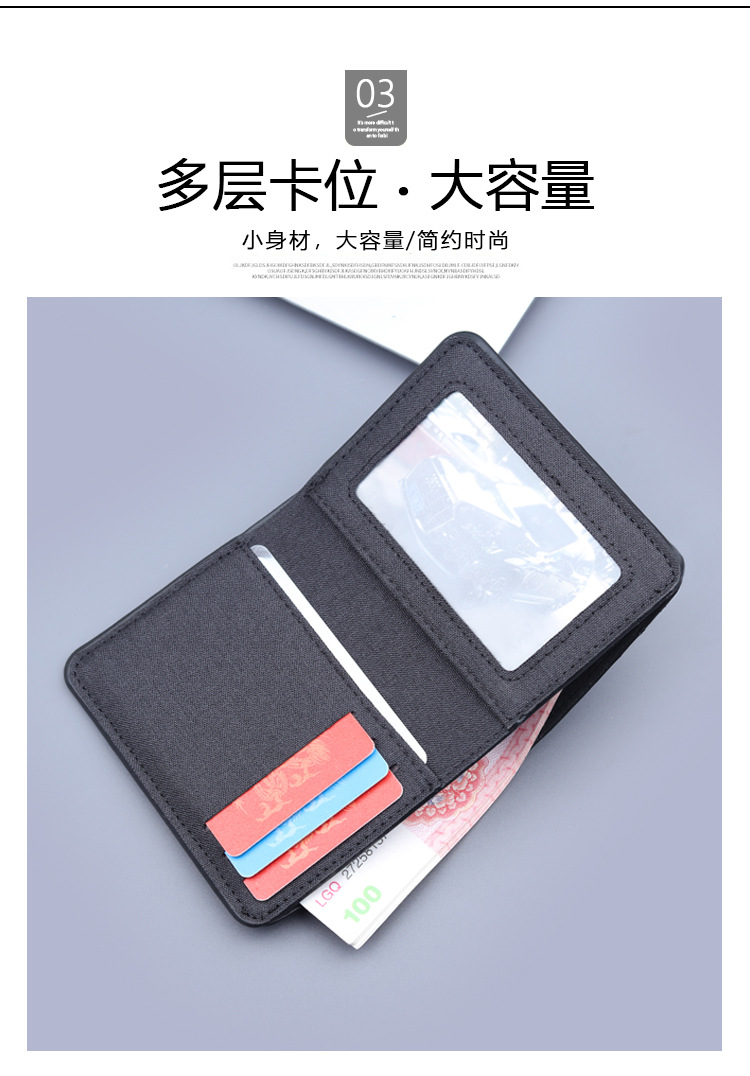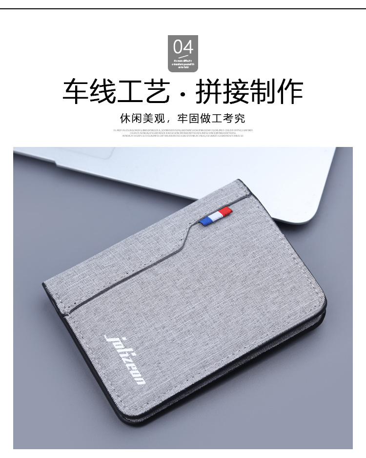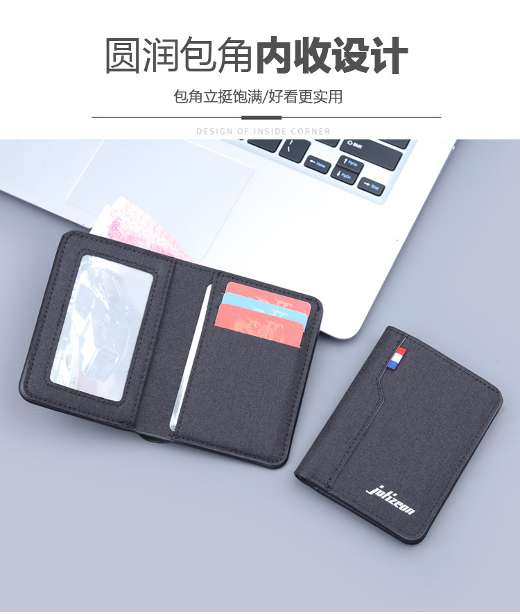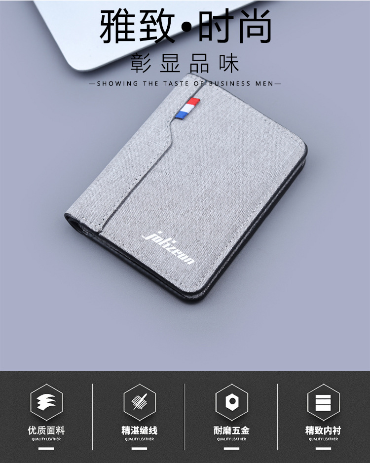 Cartera vertical de tela suave, cartera de lona, cartera plegable de cuero para hombres, mini vaqueros, cartera pequeña, cartera de tarjetas para hombres.