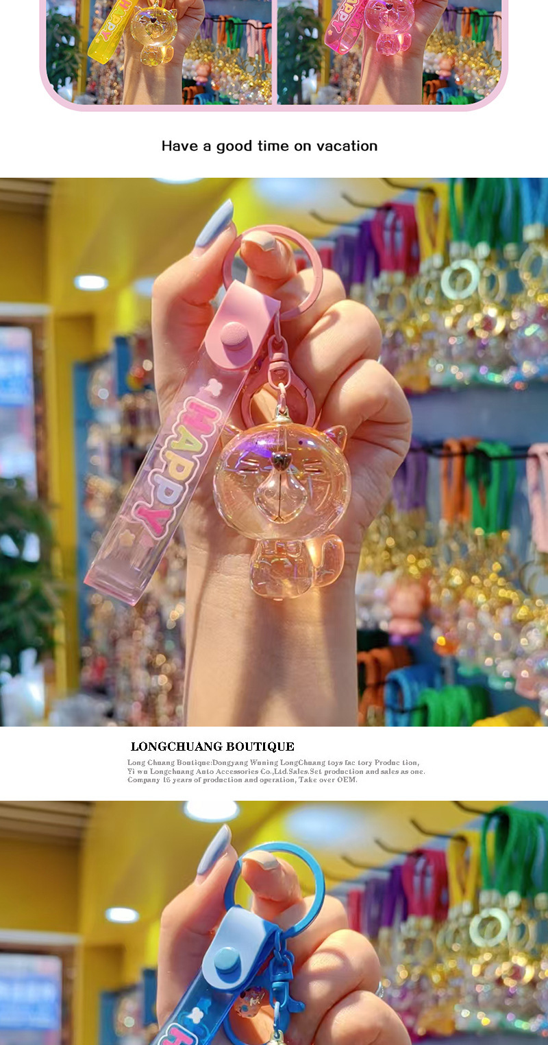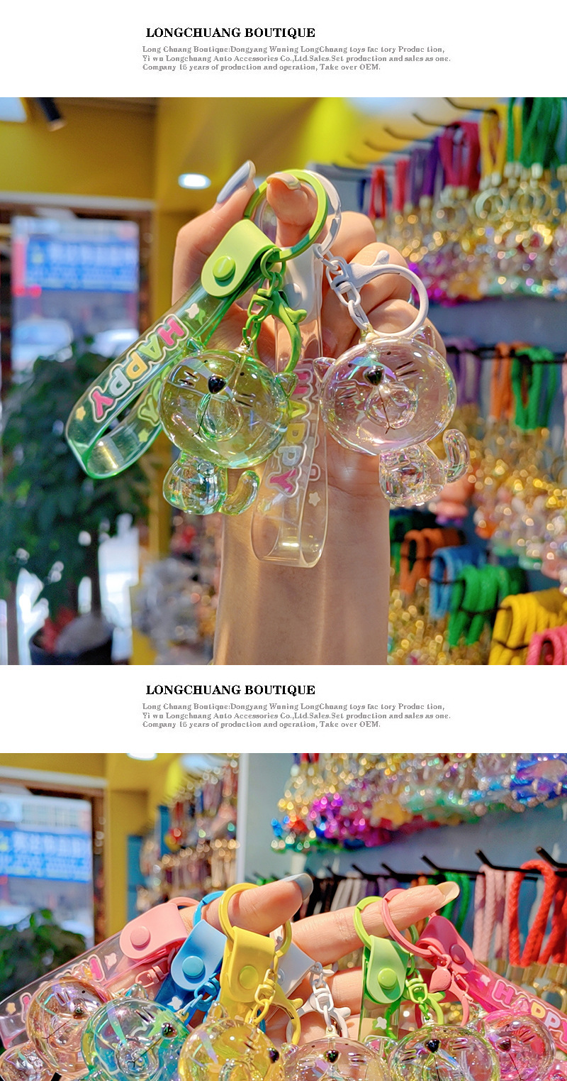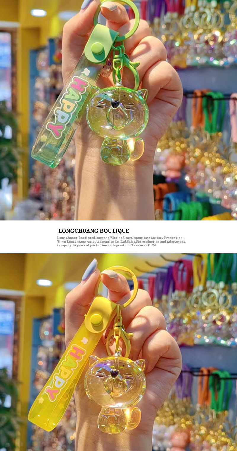 Acrílico cara grande gatos llaveros chapado transparente pareja de color llaveros caricatura bolsa feia colgante
