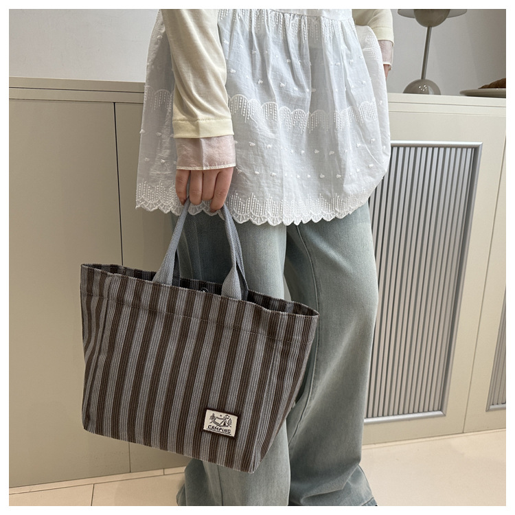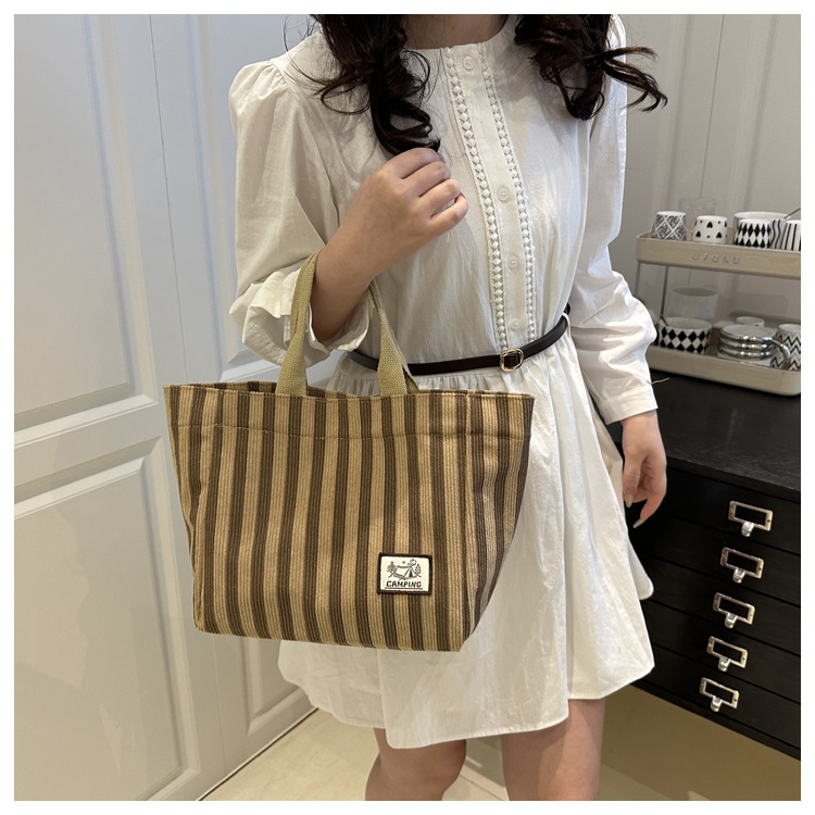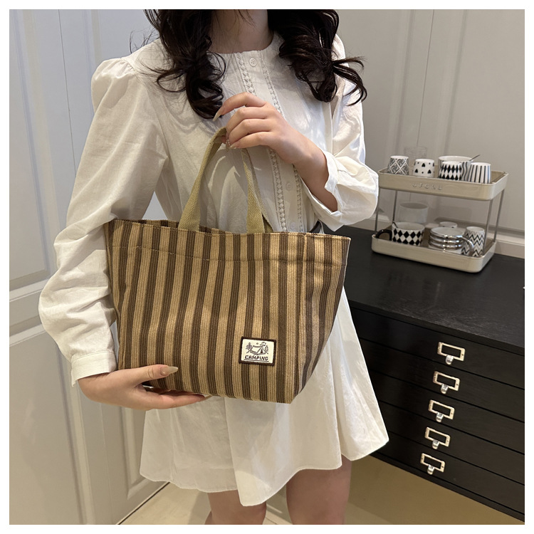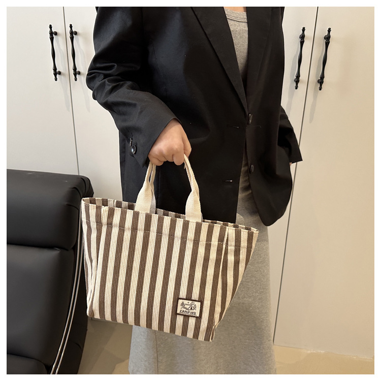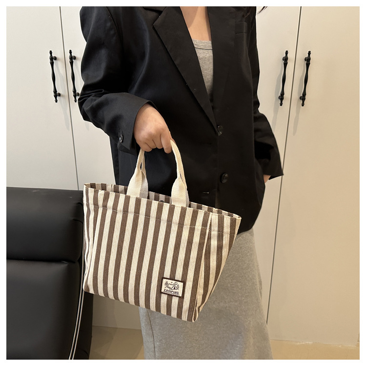 Bolso tote de tela a rayas de estilo europeo y americano, nuevo bolso pequeño de moda, bolso femenino portátil, bolso de almuerzo de mano, bolso de bocadillos