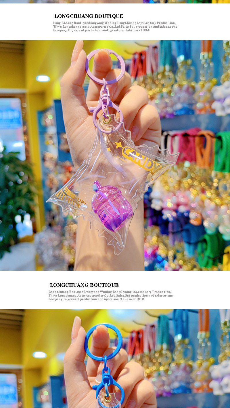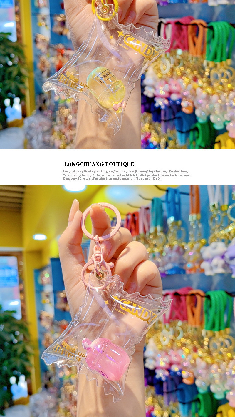 Color transparente botella de té llavero lindo viento bolso de automóvil llavero de resina colgante delicado botella colgante al por mayor