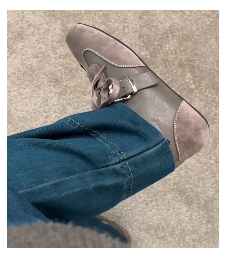 Versión de piel de vaca ~ Calzado deportivo retro empalme con cordones zapatos de entrenamiento alemán hebilla de cinturón de mujer zapatos Forrest Gump planos zapatos casuales de todo fósforo