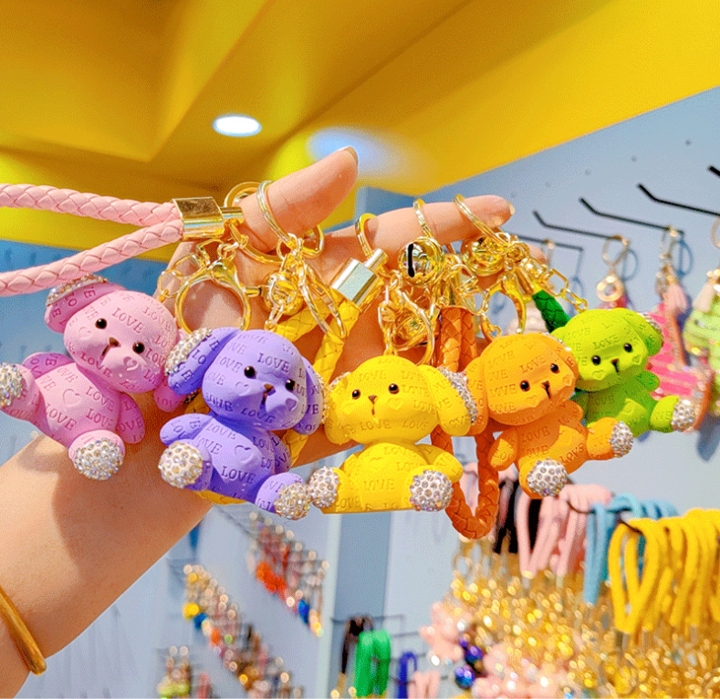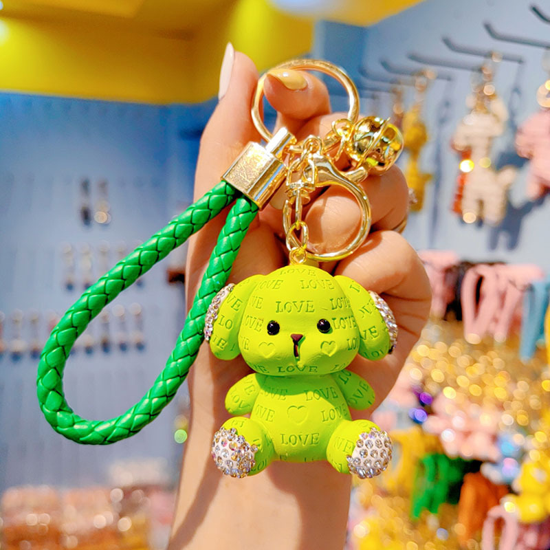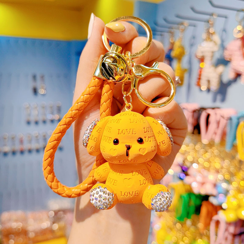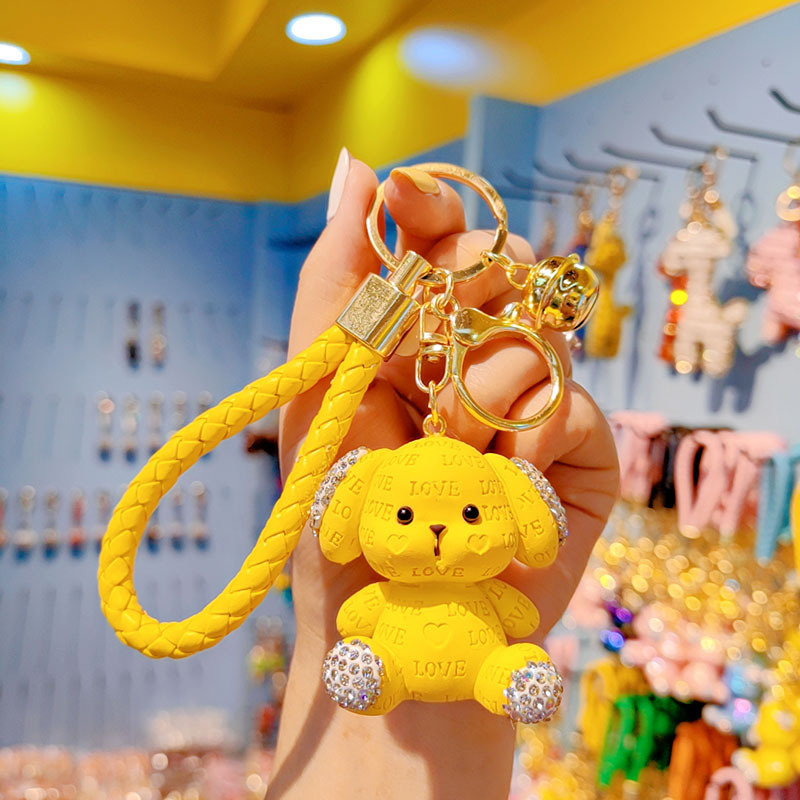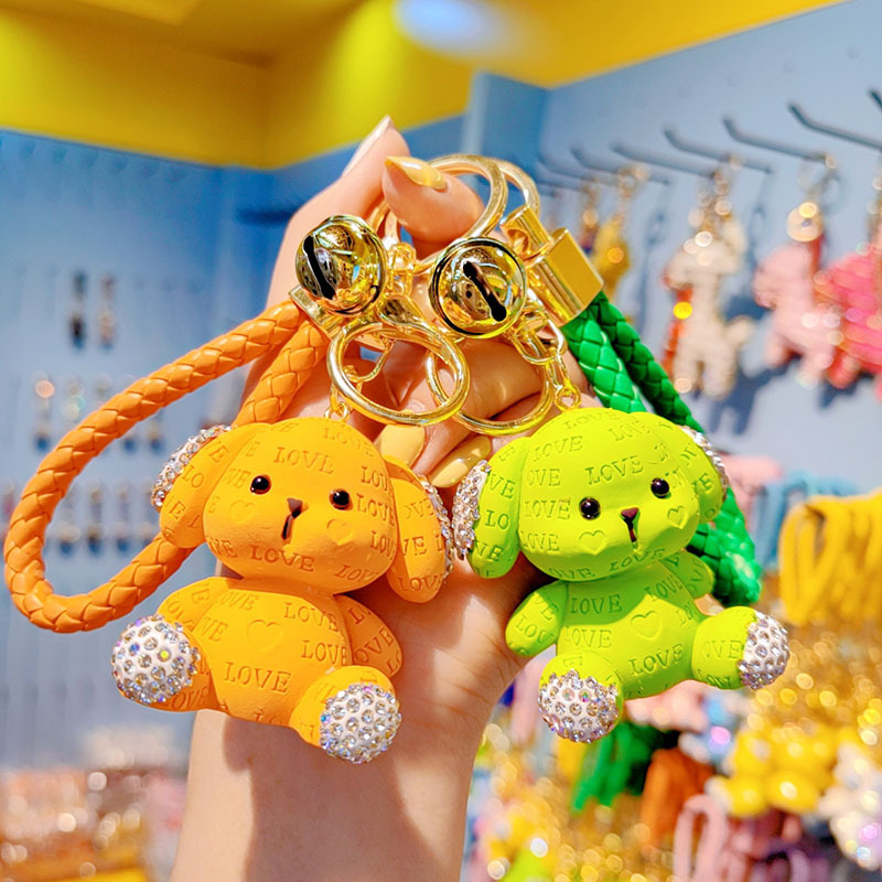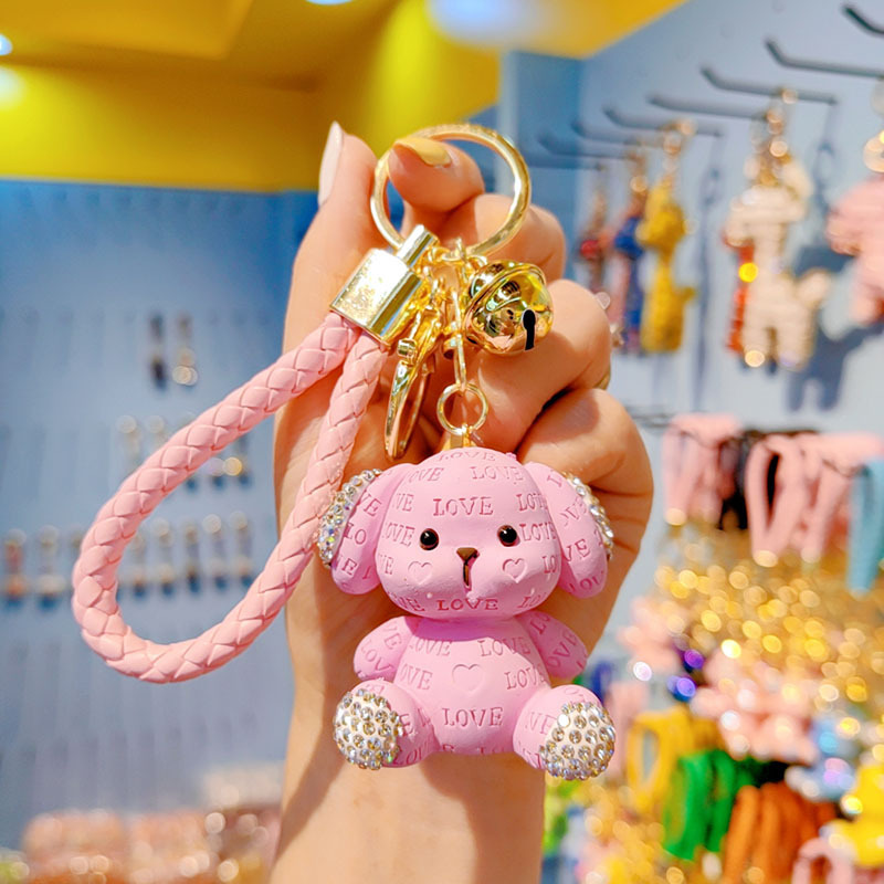 Cute llavero de dibujos animados mujeres diamantes letras perros automóviles colgantes pareja llavero bolsos de estudiantes colgantes al por mayor