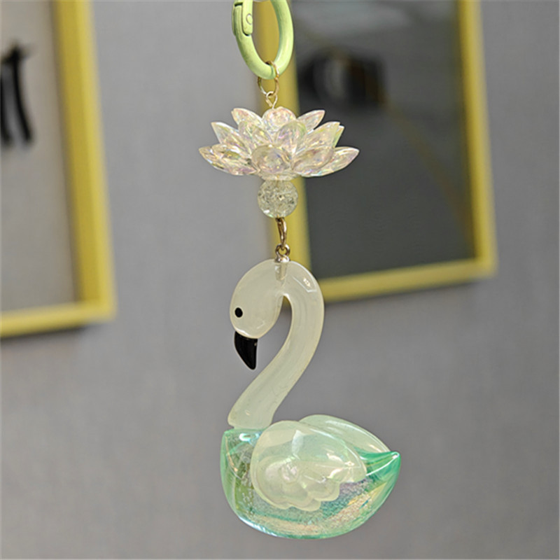 Nuevo acrílico cisne con cuentas llavero bolsos creativos colgantes pequeños regalos con cuentas frescas de color al por mayor