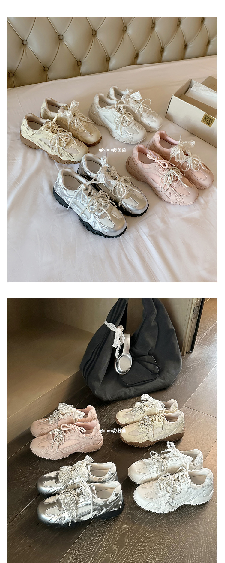 Inventario de cuero de vaca, Su Yan original de cresta inferior encaje cinturón de perlas aumentó la altura de los zapatos casuales de entrenamiento de mujeres