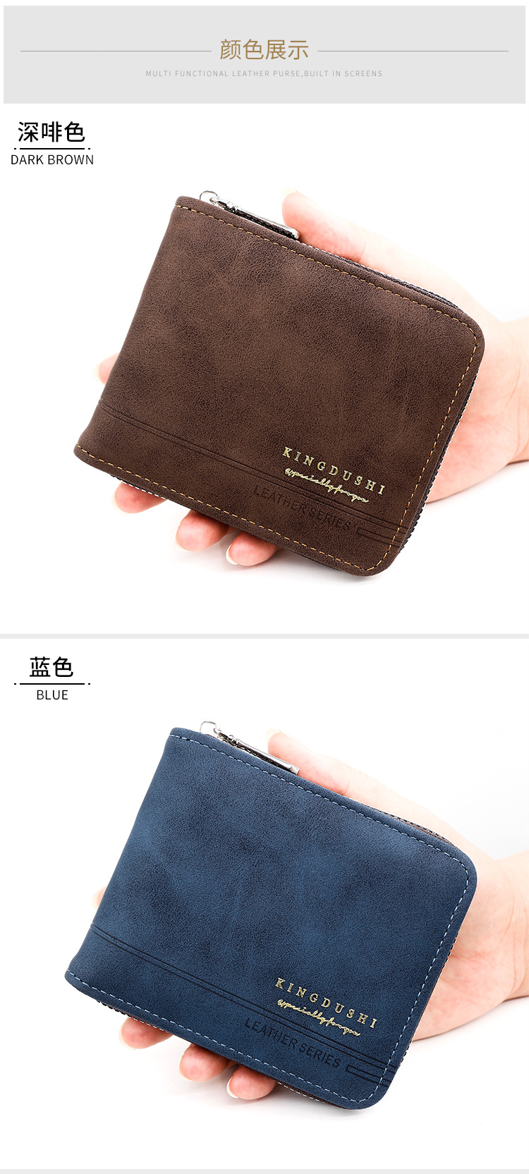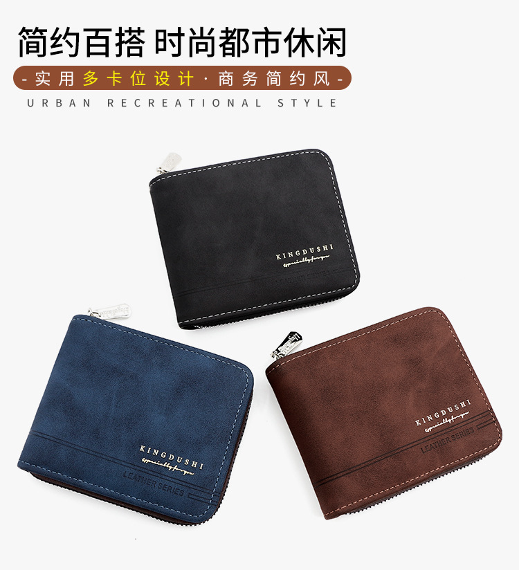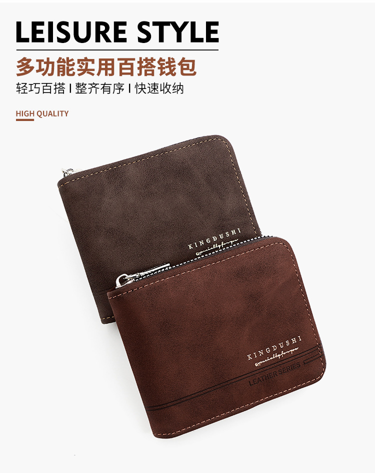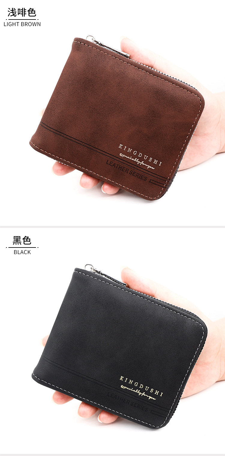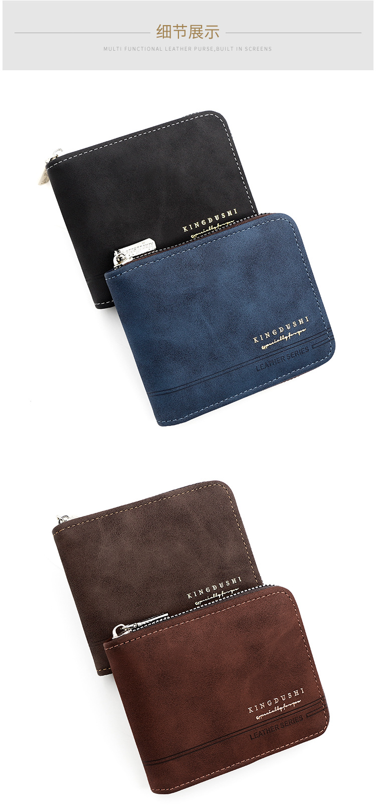 Cartera corta para hombre esmerilada retro europea y americana, bisagra de cadena, monedero triple, posición de tarjeta múltiple, billetera para hombre al por mayor