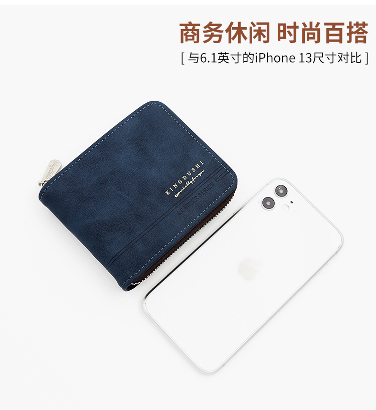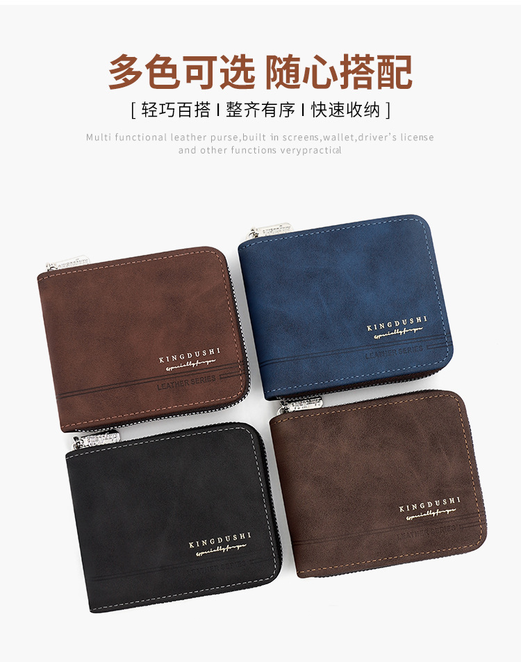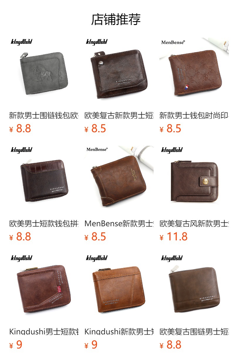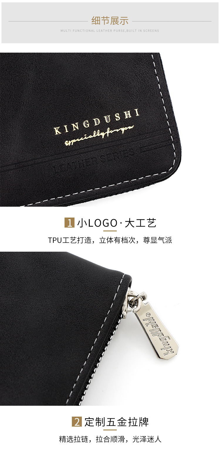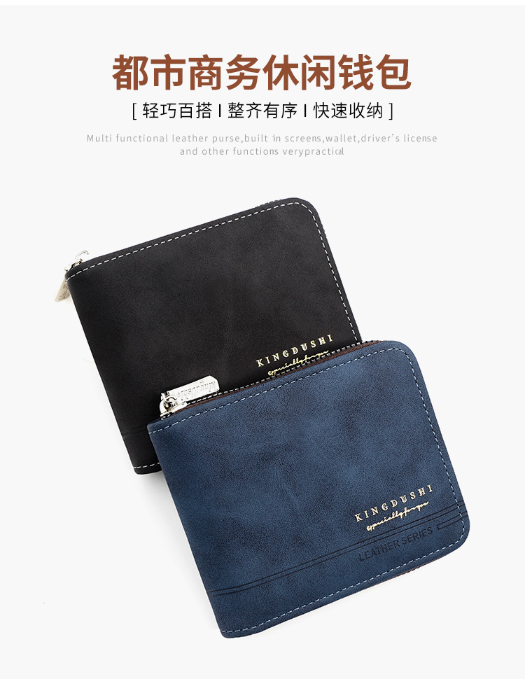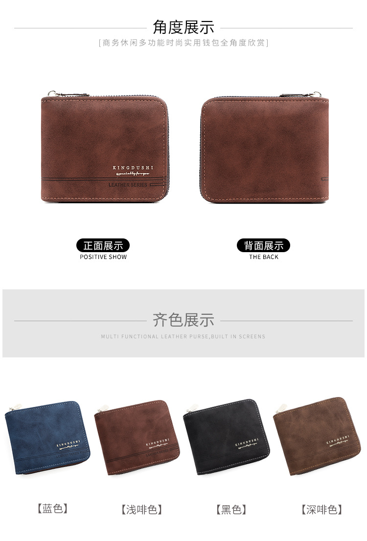 Cartera corta para hombre esmerilada retro europea y americana, bisagra de cadena, monedero triple, posición de tarjeta múltiple, billetera para hombre al por mayor
