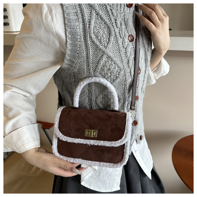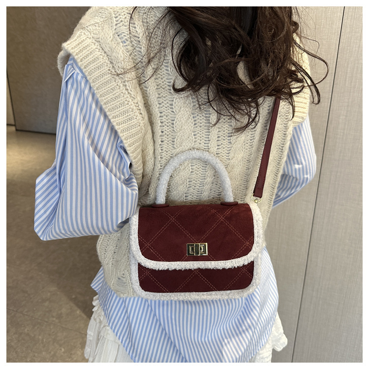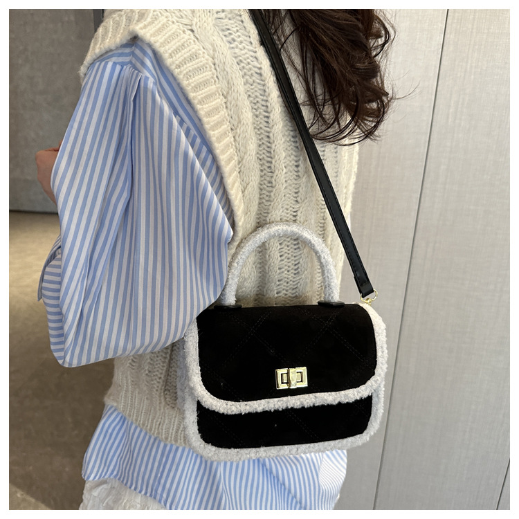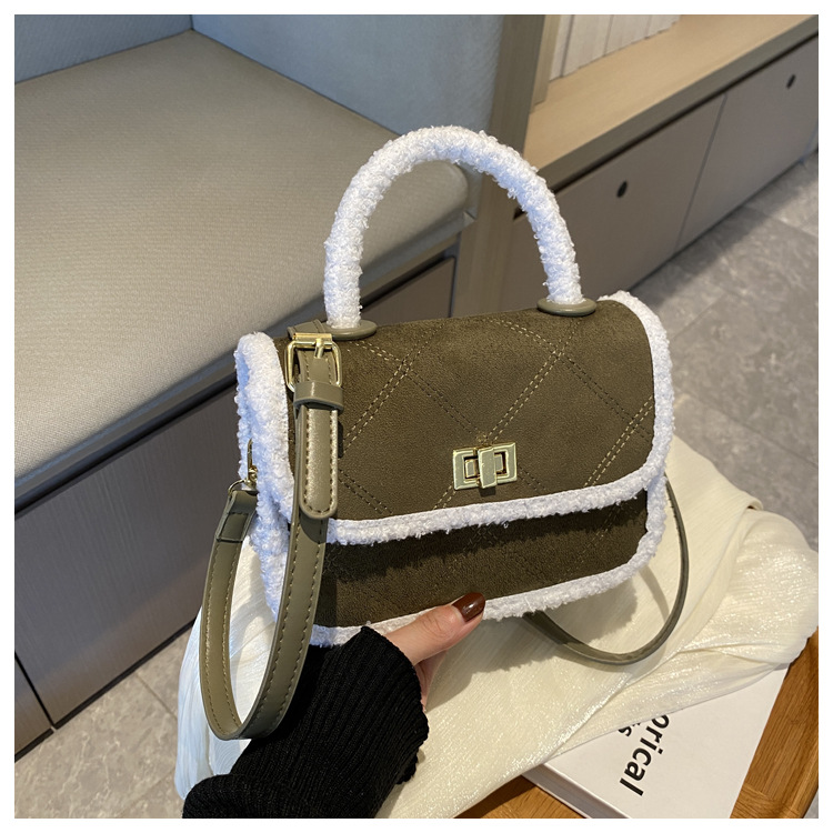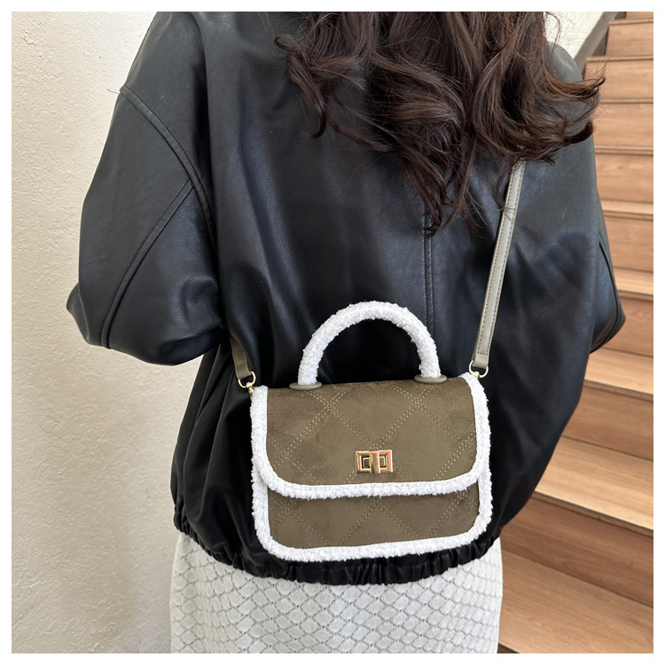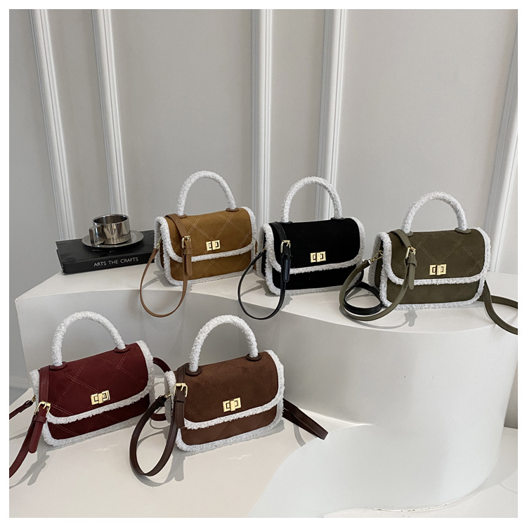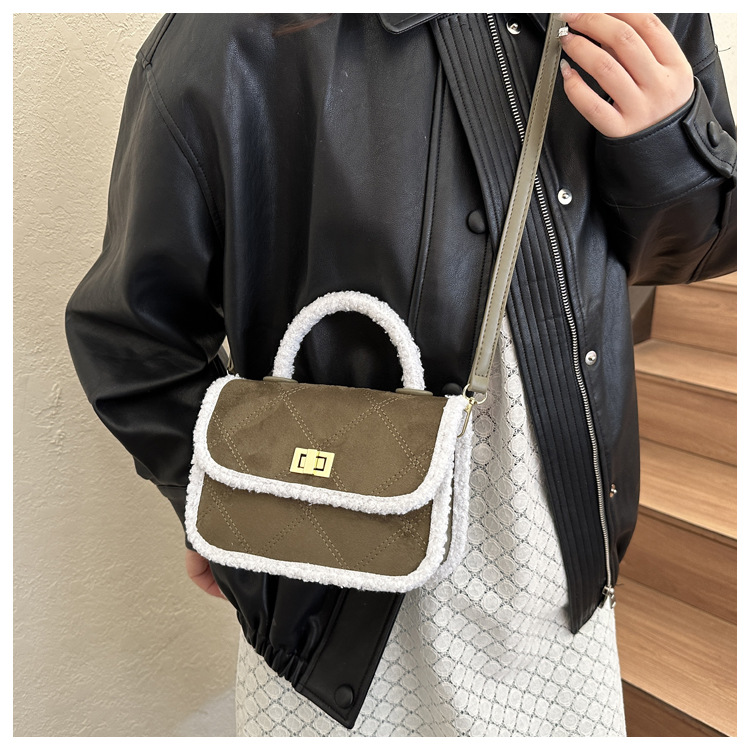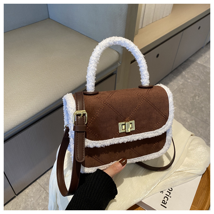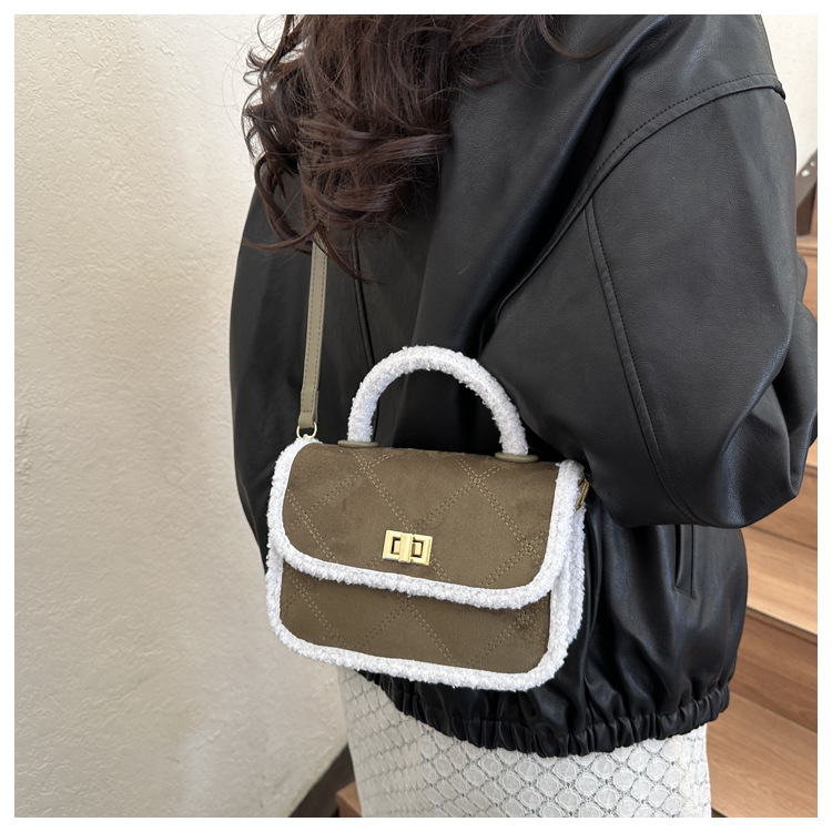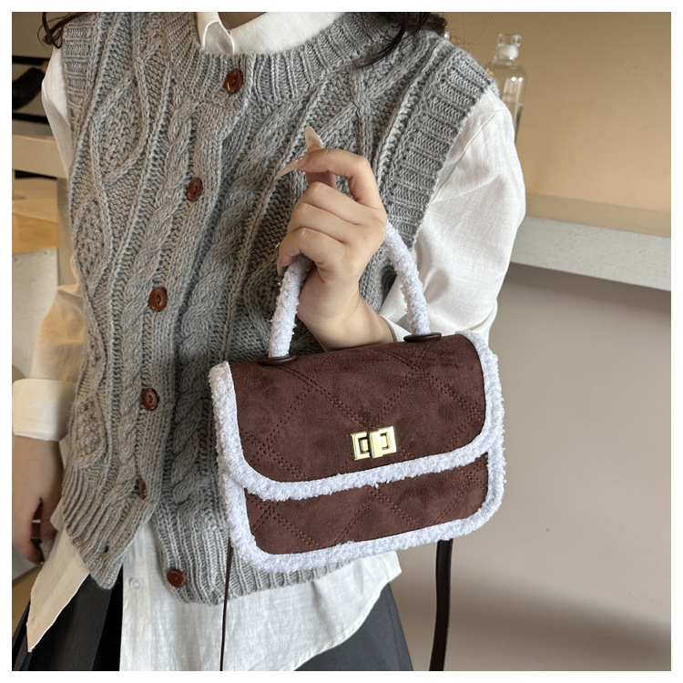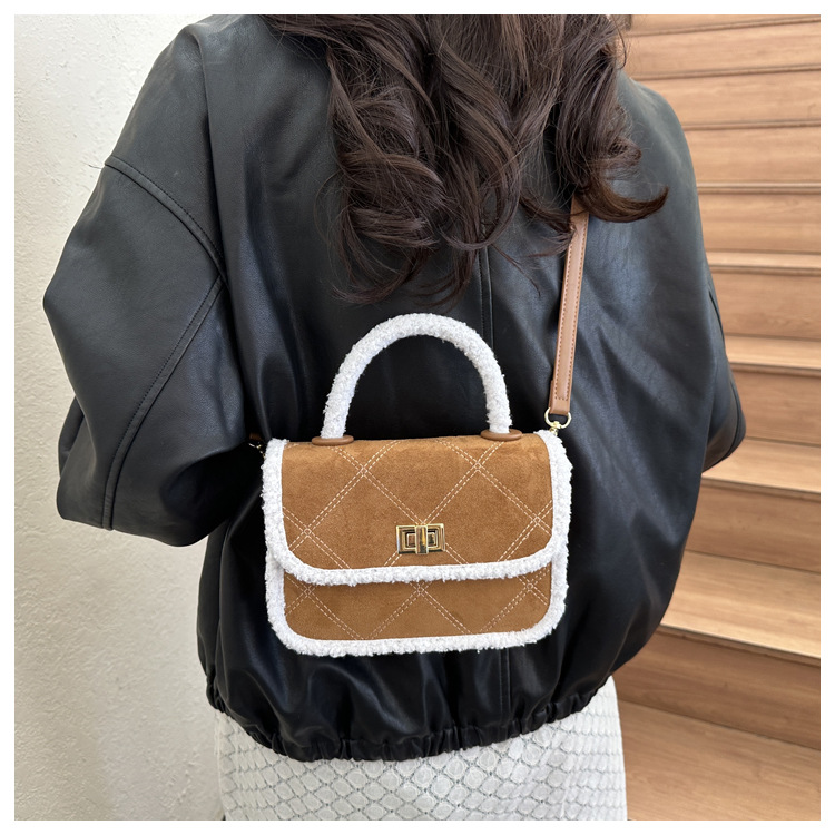 Bolso pequeño bolso de mano mujer 2025 nuevo estilo de primavera de hombro de moda bolso casual de piel de venado simple borde de peluche
