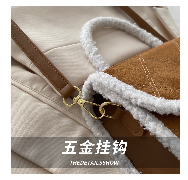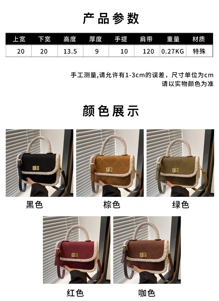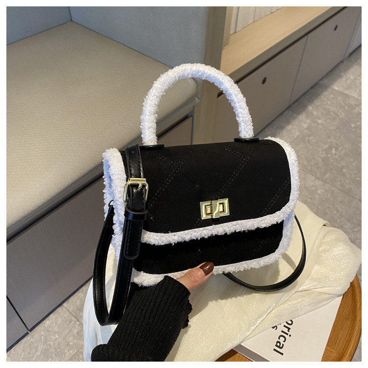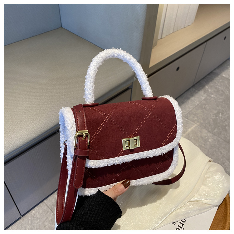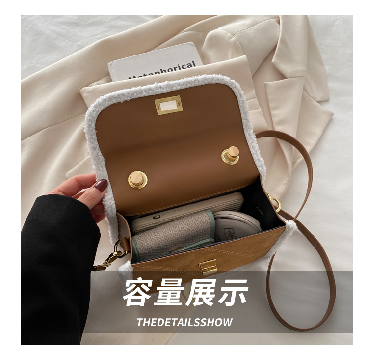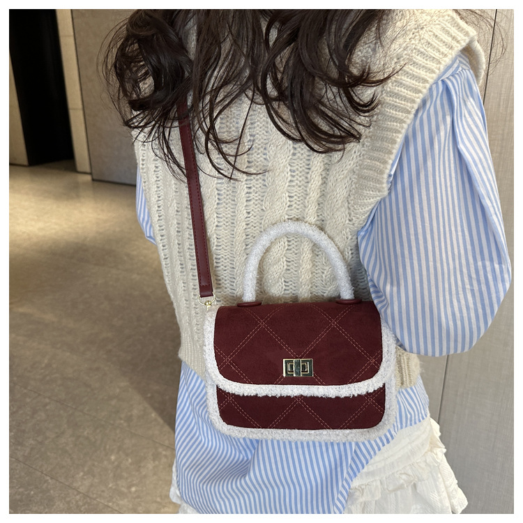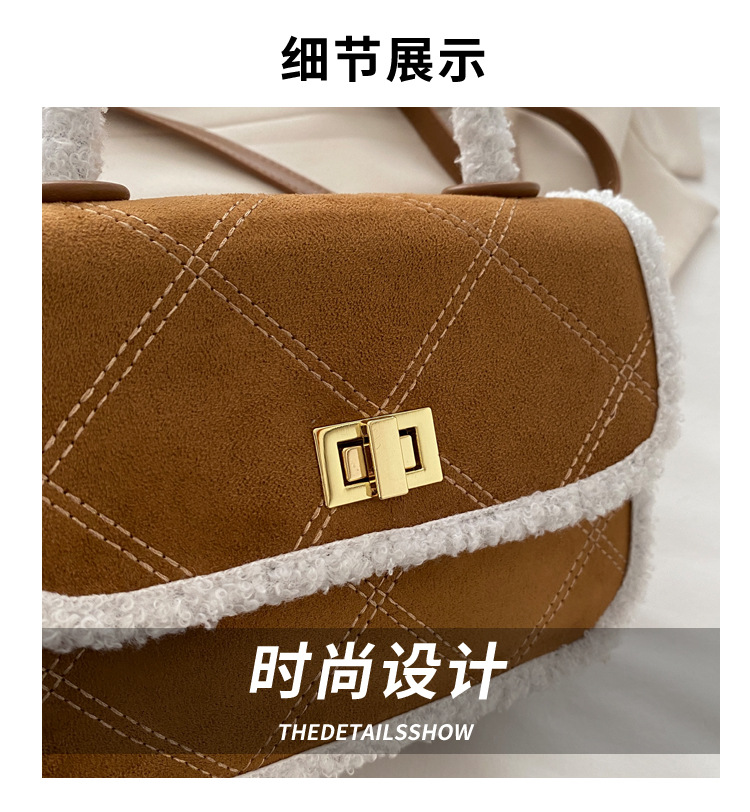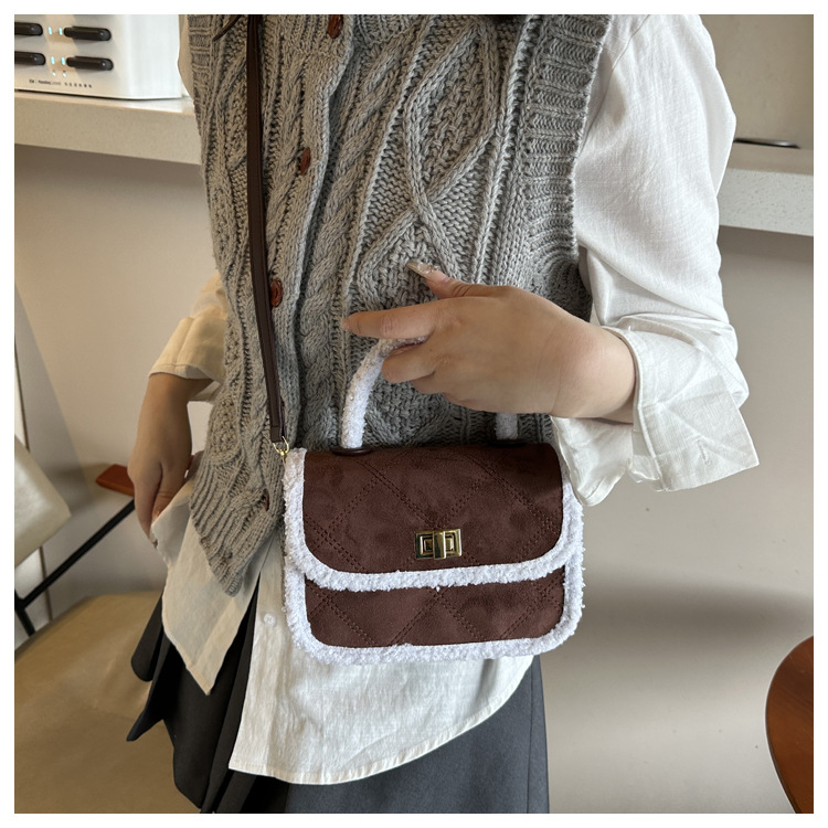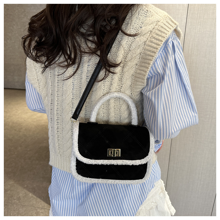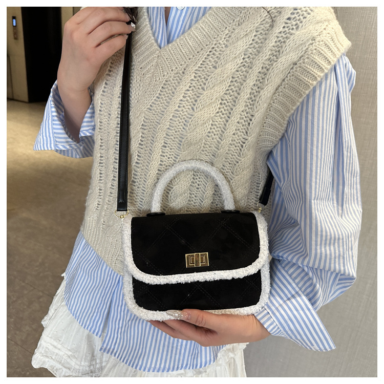 Bolso pequeño bolso de mano mujer 2025 nuevo estilo de primavera de hombro de moda bolso casual de piel de venado simple borde de peluche
