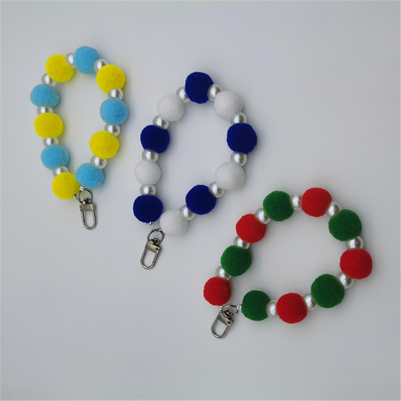 Nueva Bola de piel de cadena de perlas colgante Cadena de teléfono móvil ins Internet celebridad mismo estilo muñeca de invierno pulsera peluda cadena portátil