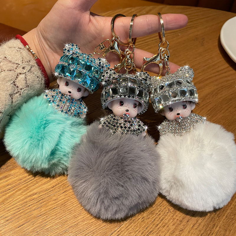 Corea del Sur creativo lindo diamante incrustado lindo Qiqi Bola de piel muñeca llavero mujer de dibujos animados par coche bolsa colgante