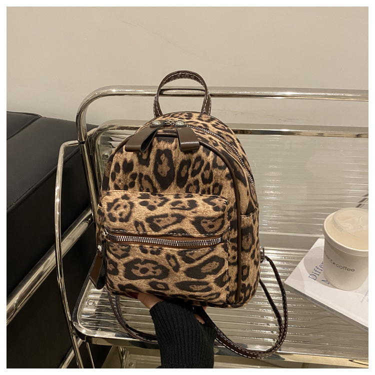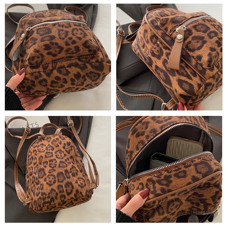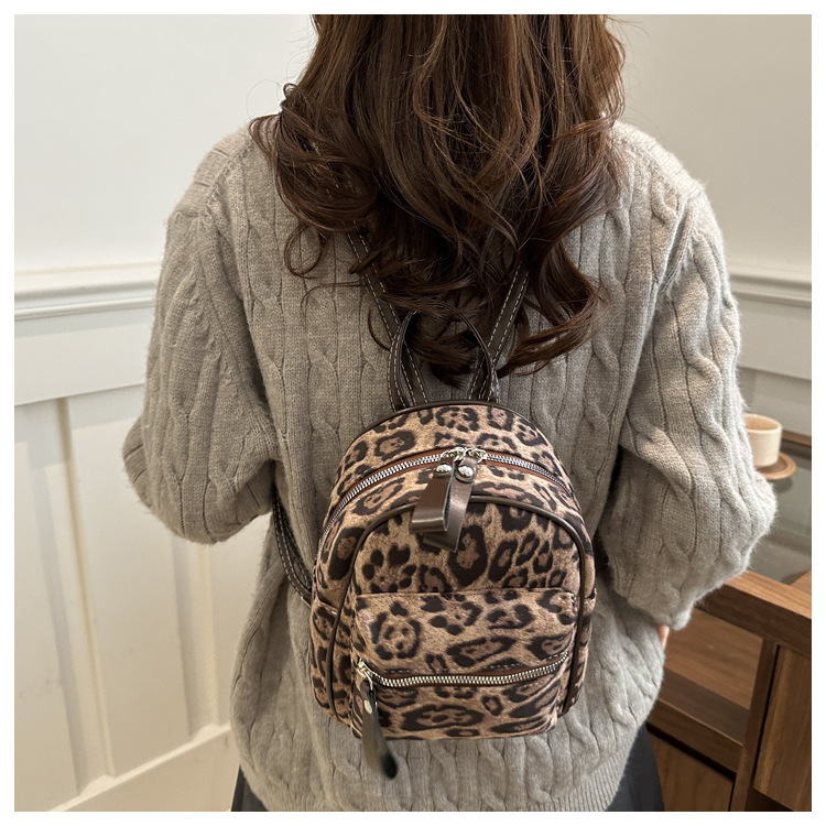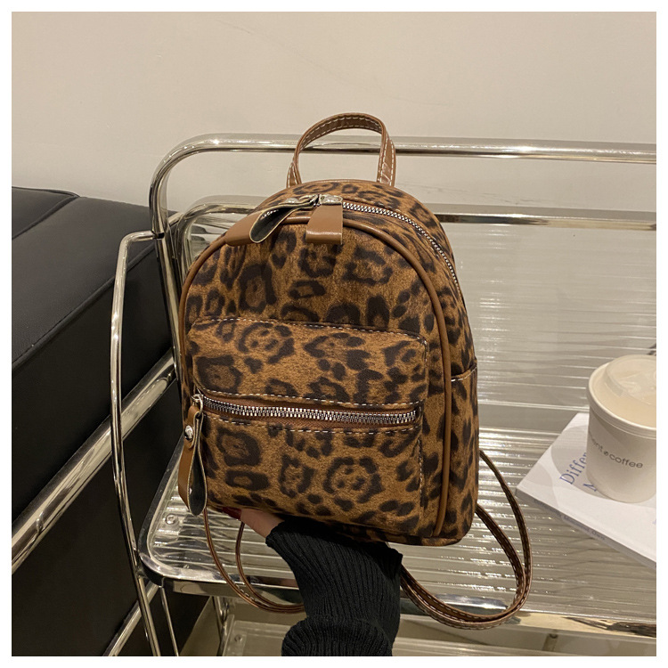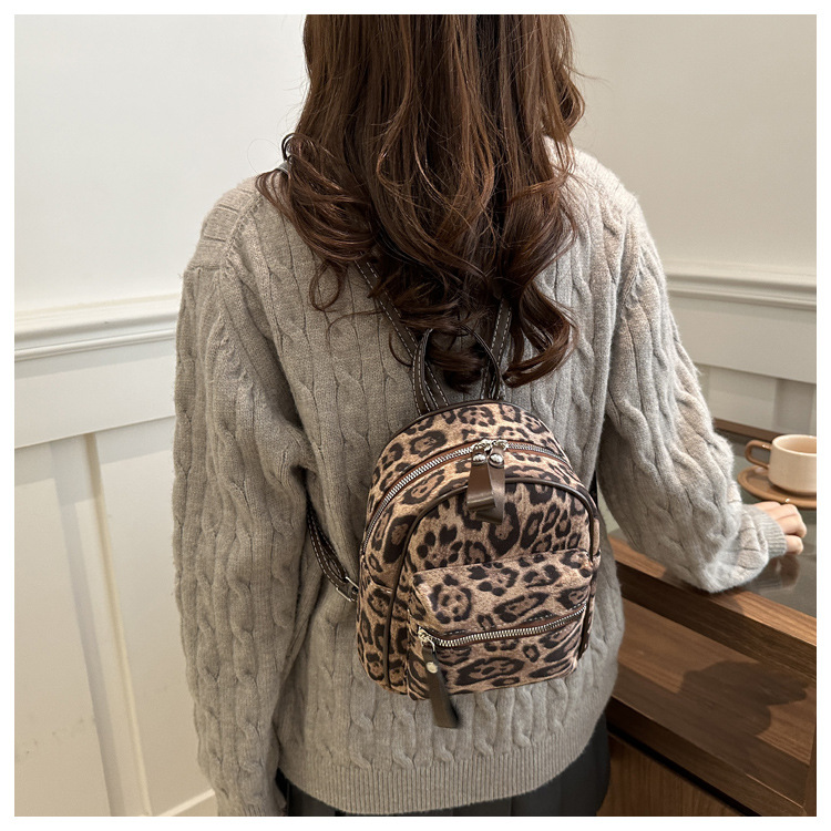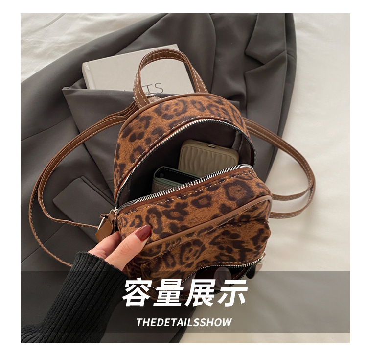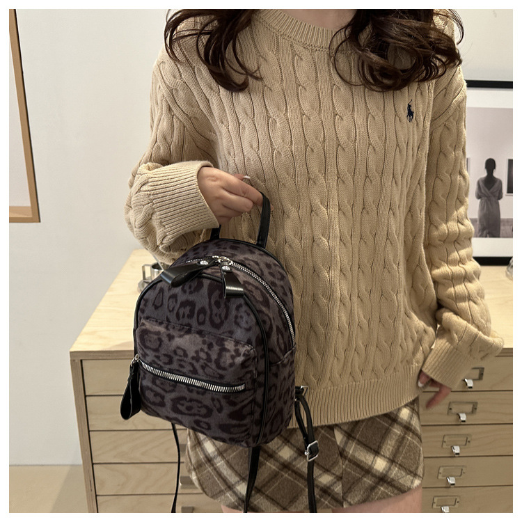 Mochila de leopardo retro para mujeres 2024 nueva moda versátil mochila de estudiantes otoño y invierno sensación de alto nivel bolso de mano transfronterizo
