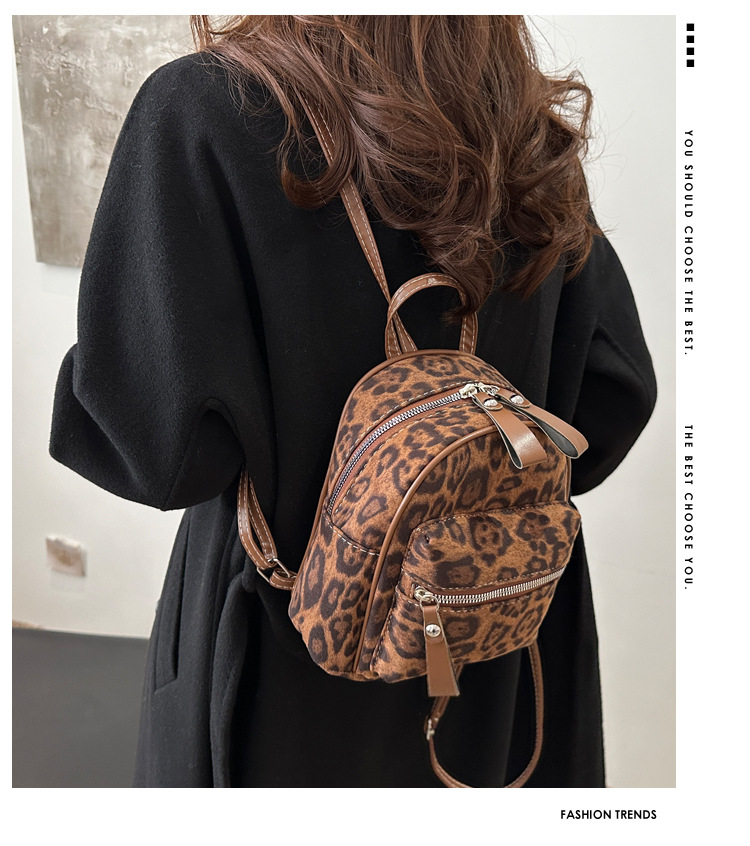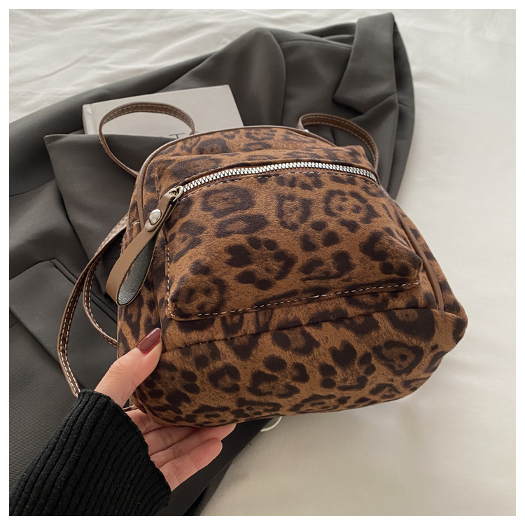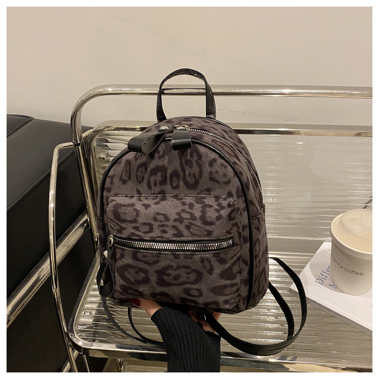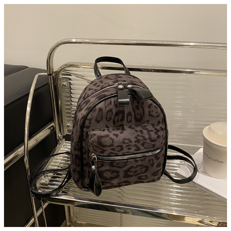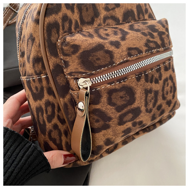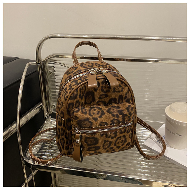 Mochila de leopardo retro para mujeres 2024 nueva moda versátil mochila de estudiantes otoño y invierno sensación de alto nivel bolso de mano transfronterizo